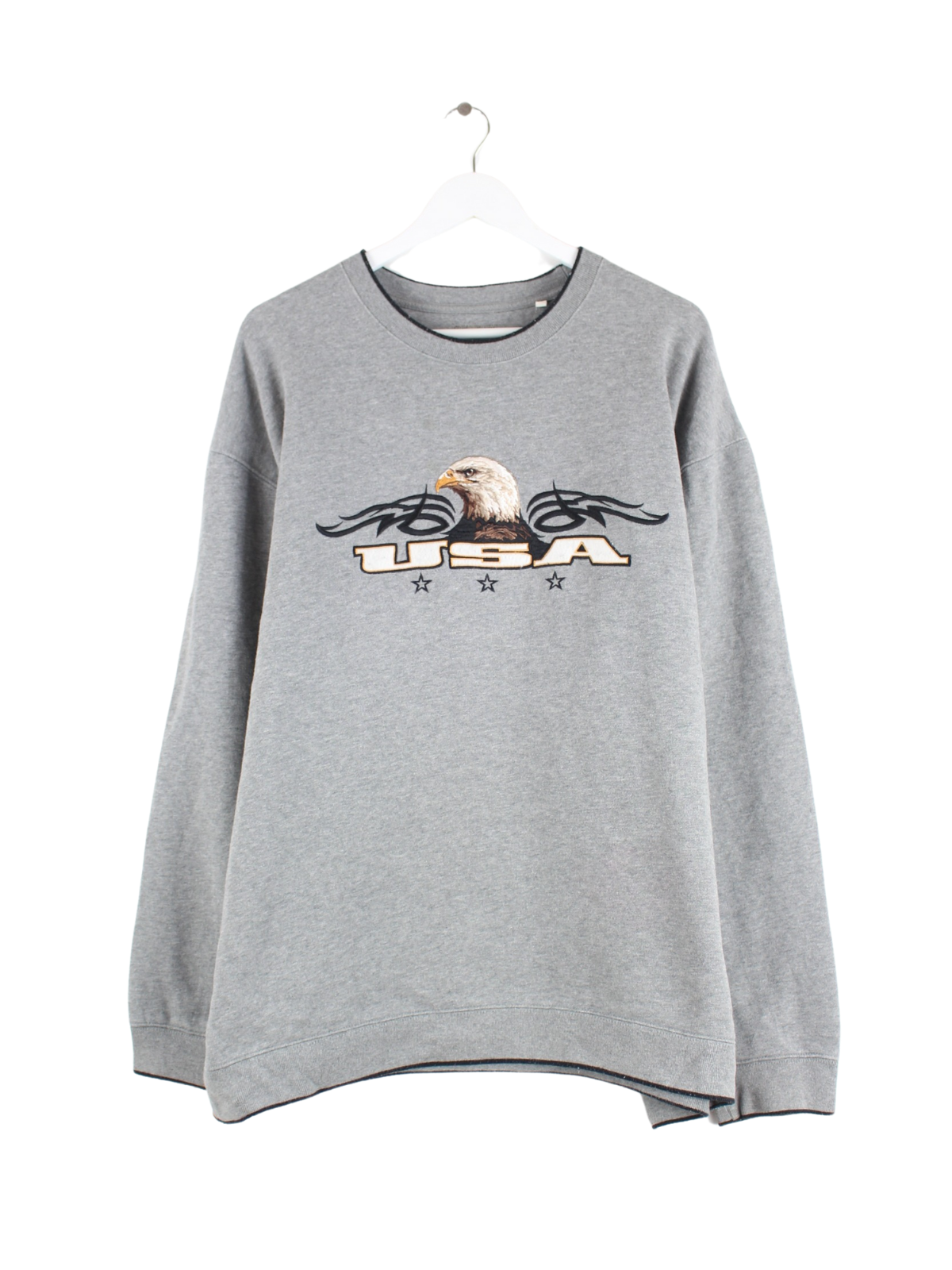 Vintage 00s U.S.A Embroidered Sweater Grau XXL