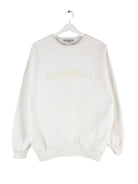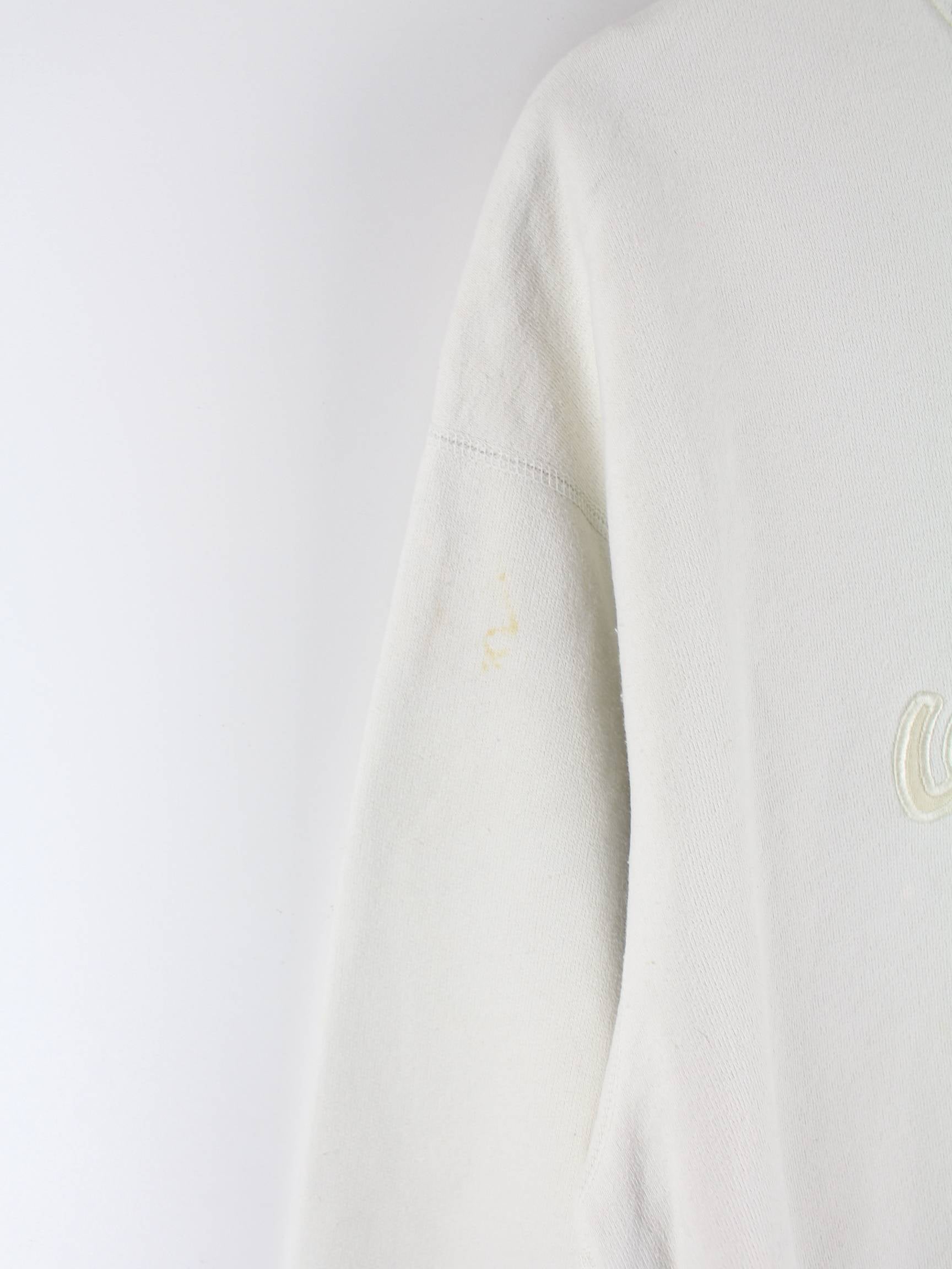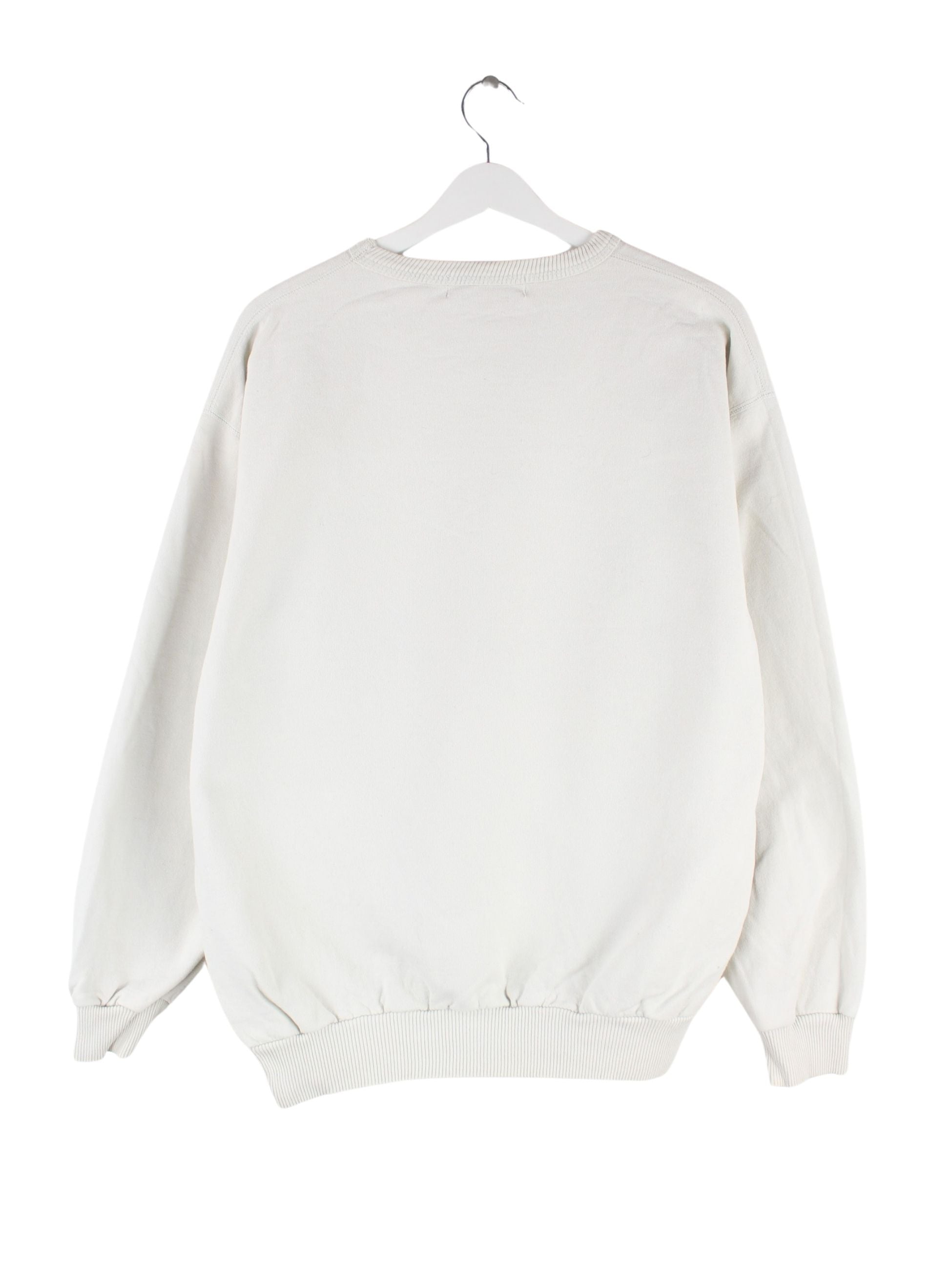Beigefarbener Vintage Sweater mit gesticktem Logo in Größe M. Er ist aus einer Baumwollmischung gemacht und in gutem Zustand auf Lager.