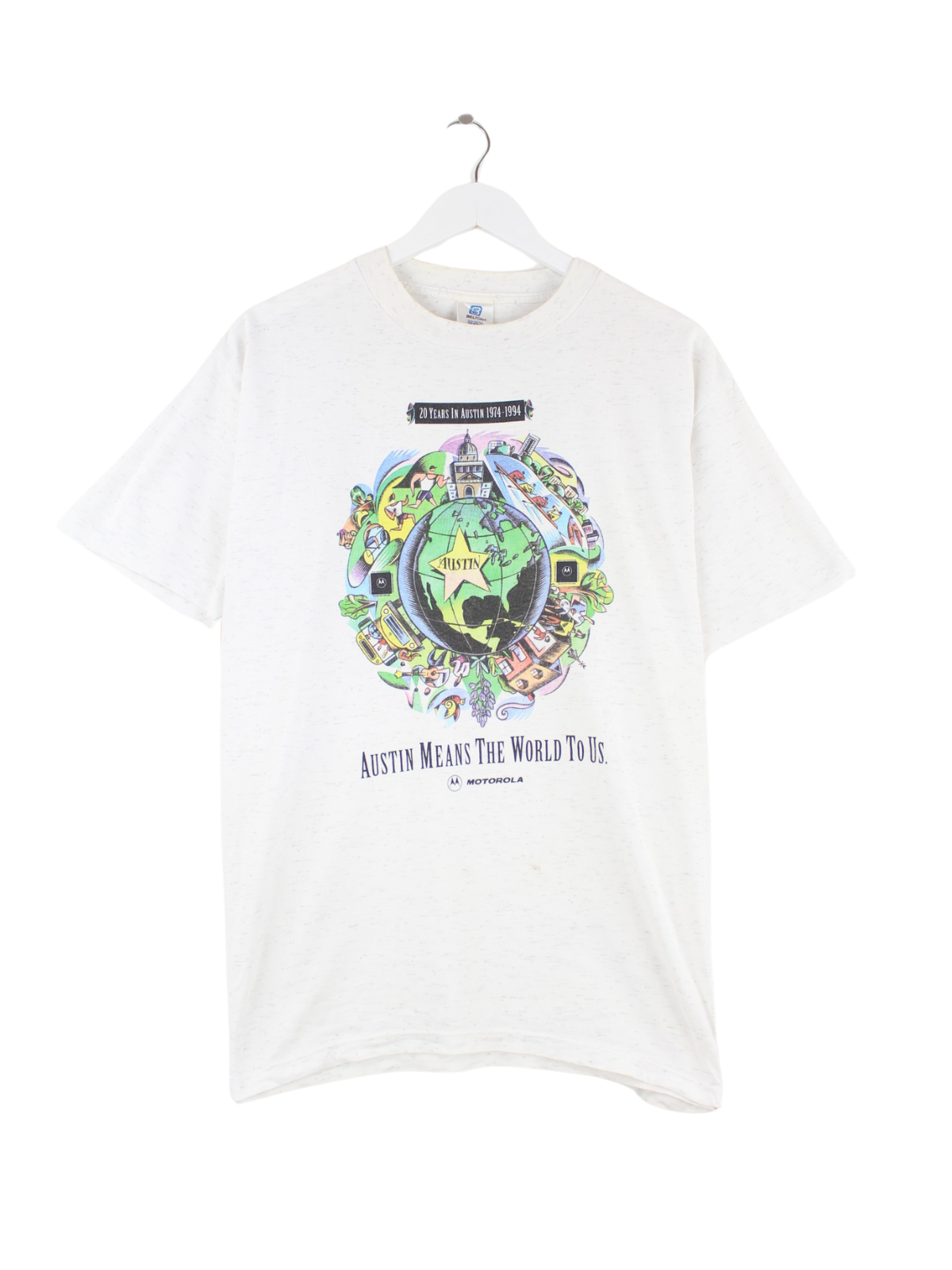 Vintage 1994 Austin Print Single Stitch T-Shirt Beige L
