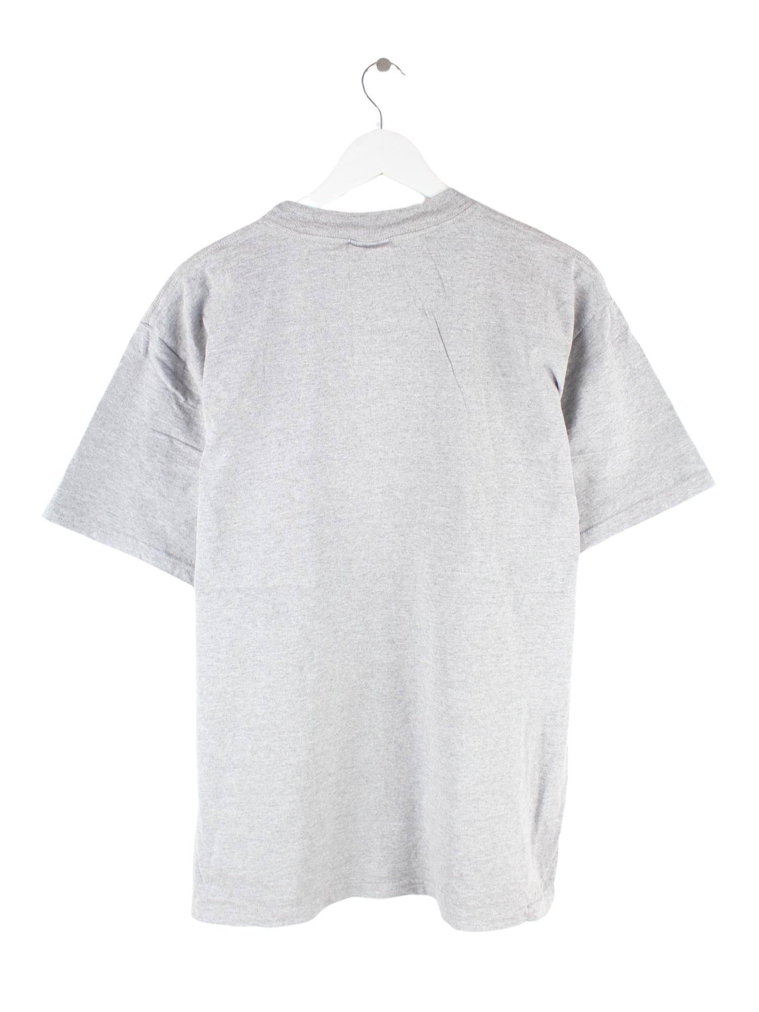 Vintage T-Shirt in Größe L. Es ist aus einer Baumwollmischung produziert und in Grau zu bekommen. Mit schickem Four Print.