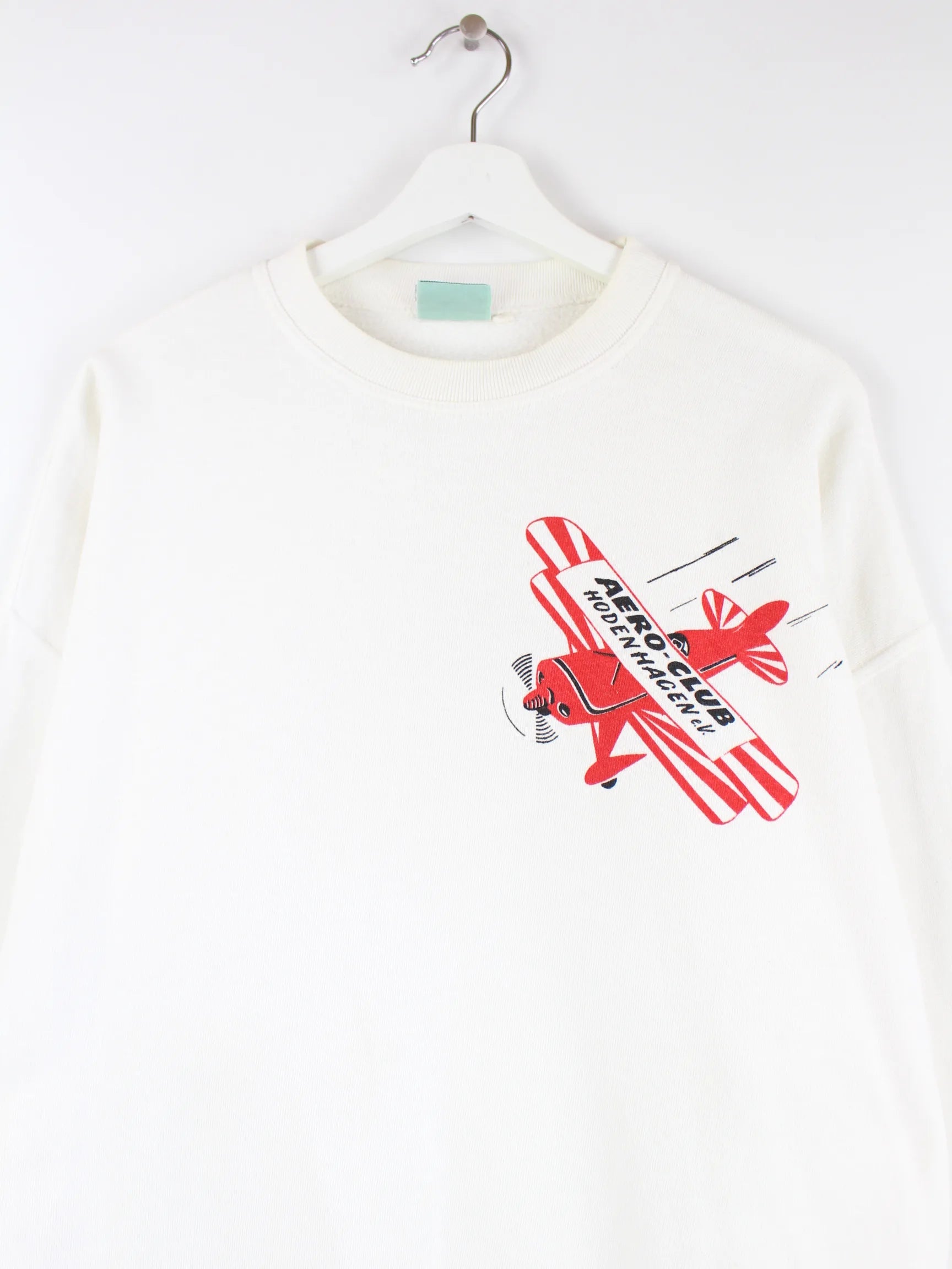 Vintage 80s Aero Club Print Sweater Weiß XL