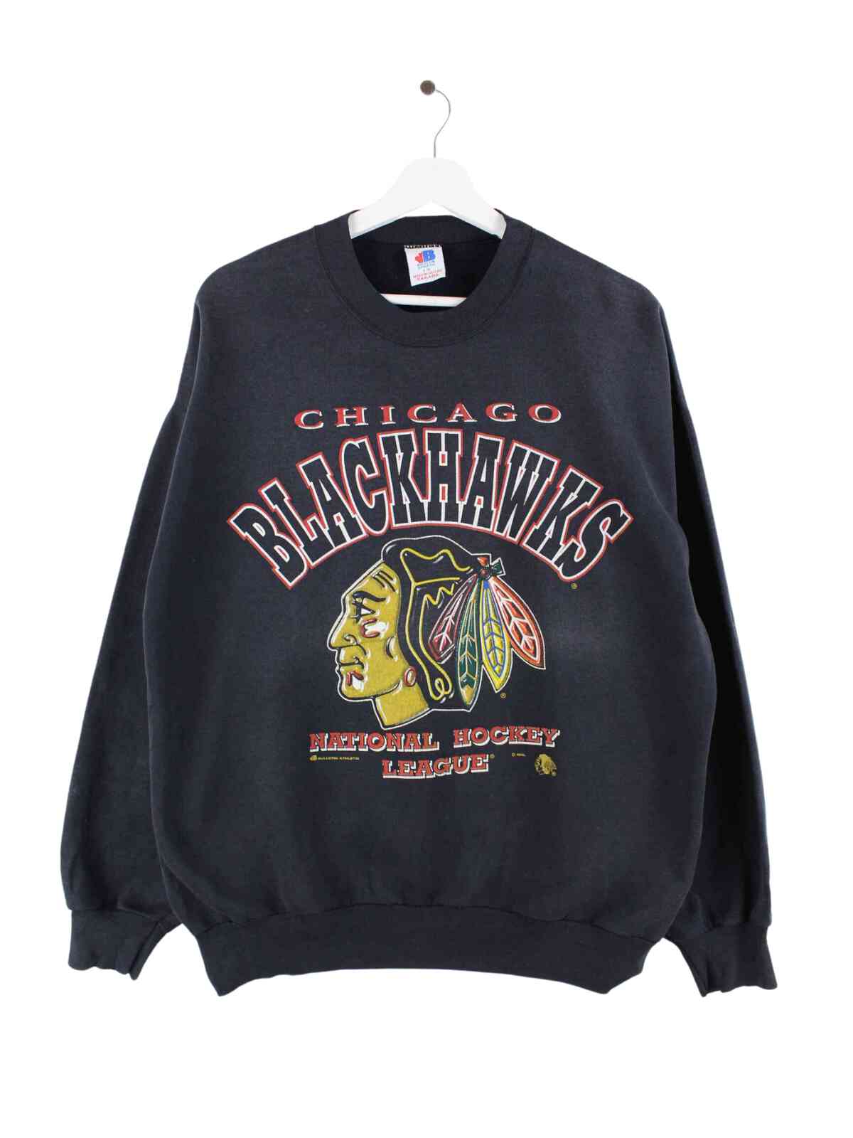 Vintage 80s Blackhawks Print Sweater Schwarz L