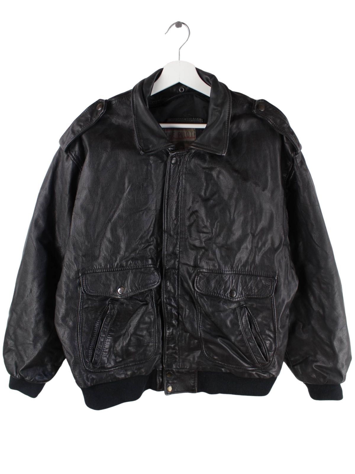Vintage 80s Bomber Leder Jacke Schwarz L