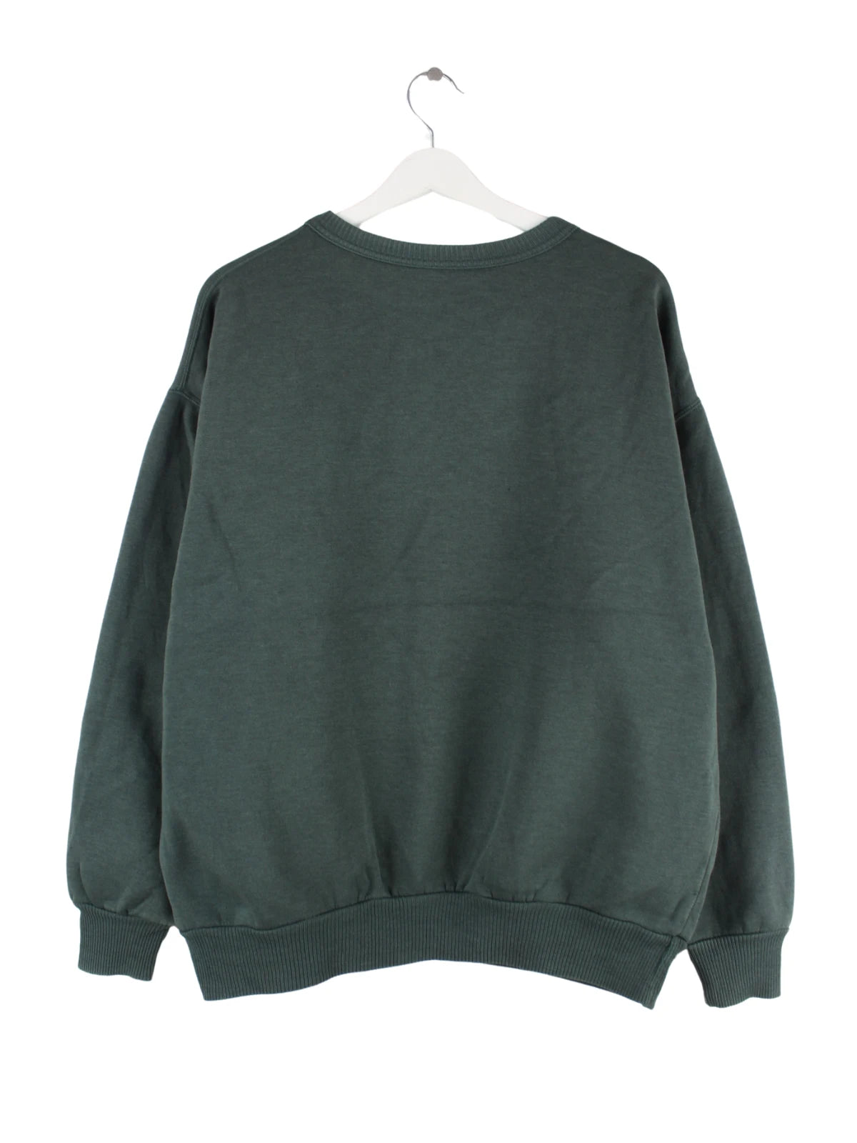 Grüner Vintage Sweater aus den 80'ern in Größe L. Er ist aus einer Baumwollmischung gemacht und in gutem Zustand zu bekommen. Mit seltenem Marshlands Print.