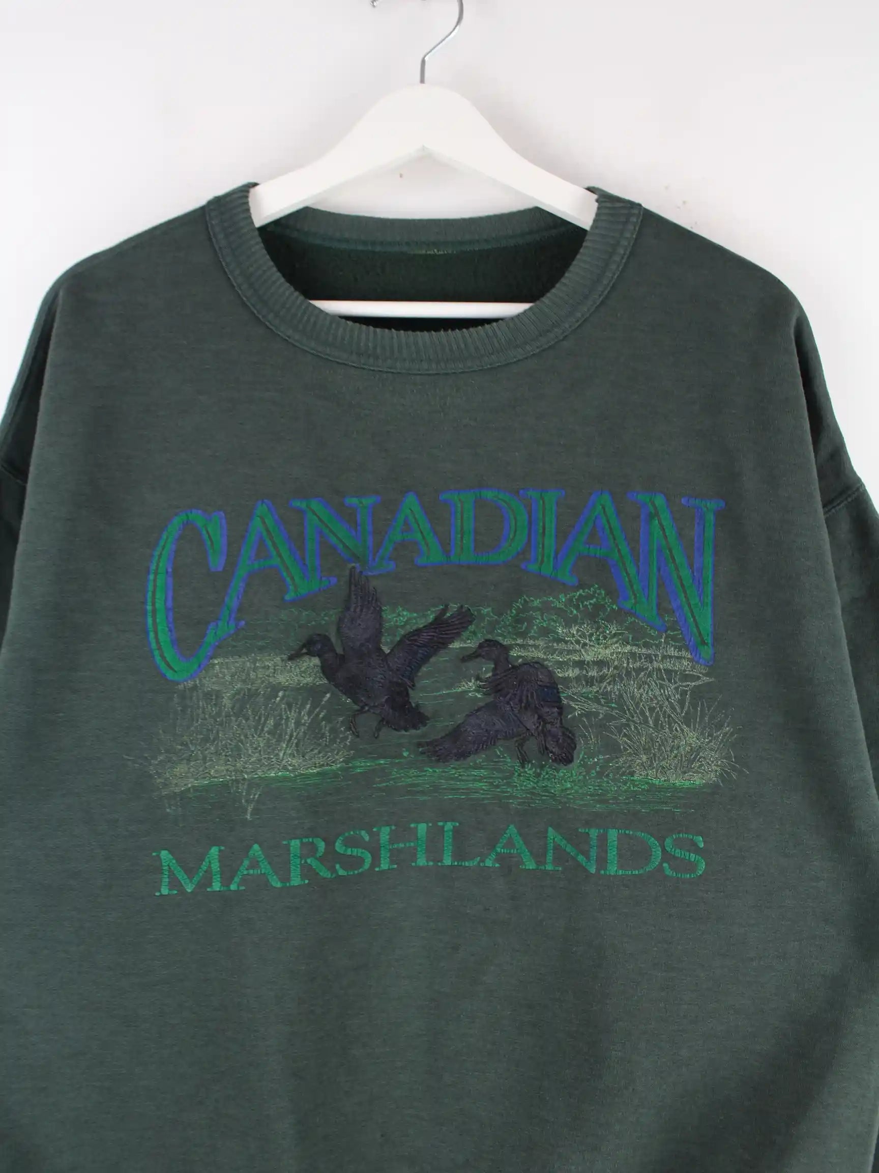 Vintage 80s Canadian Marshlands Print Sweater Grün L