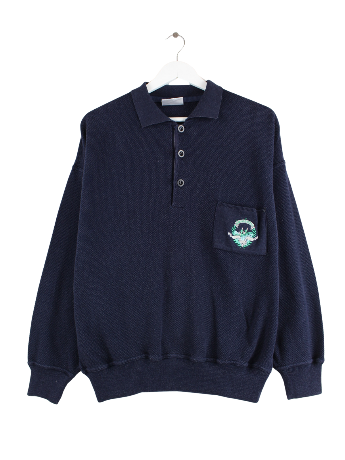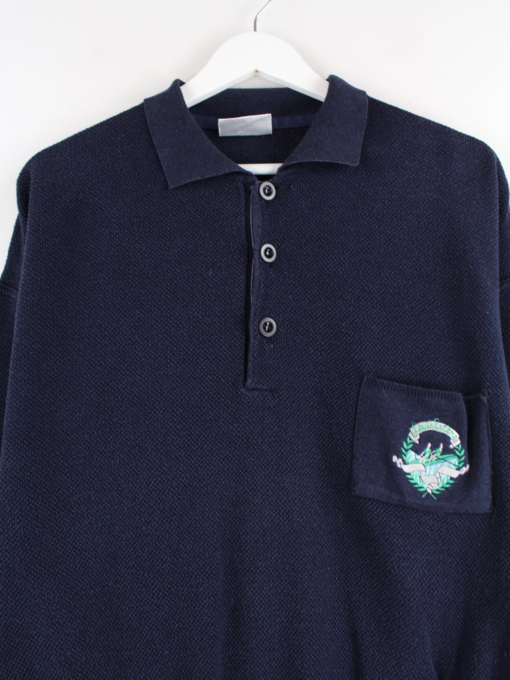Vintage 80s Louis Estere Embroidered Polo Pullover Blau M