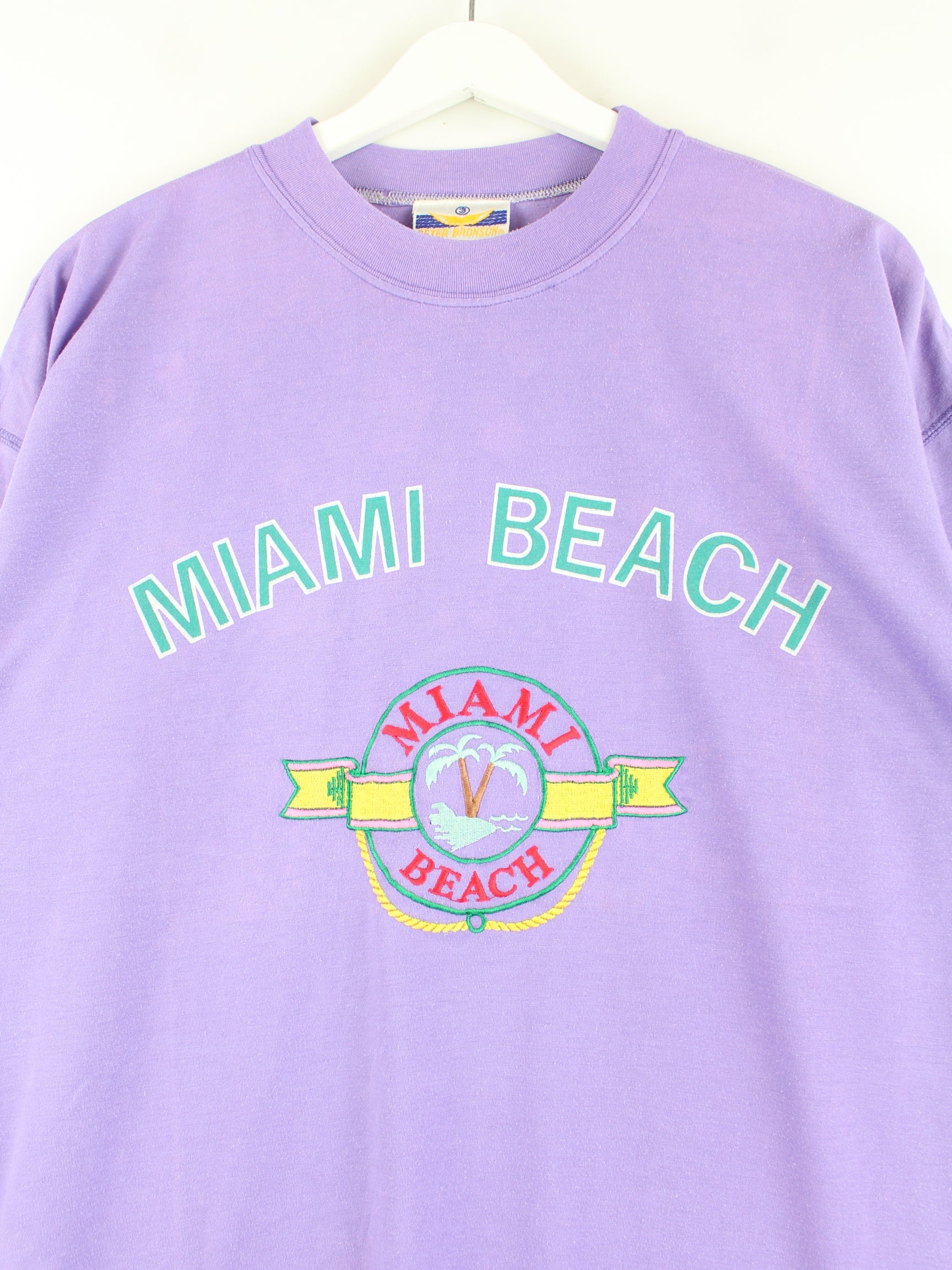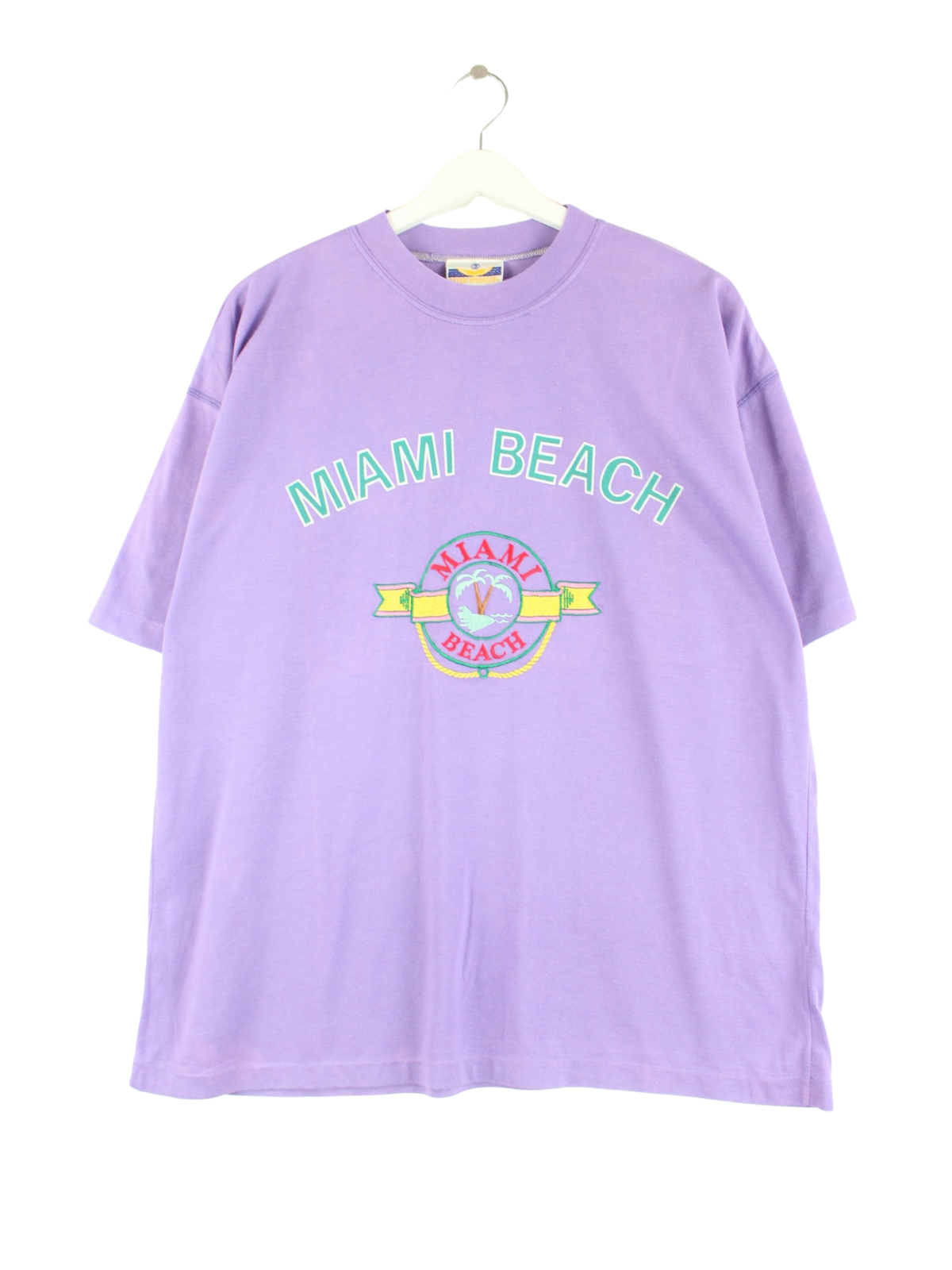 Vintage 80s Miami Beach Embroidered Single Stitch T-Shirt Lila L