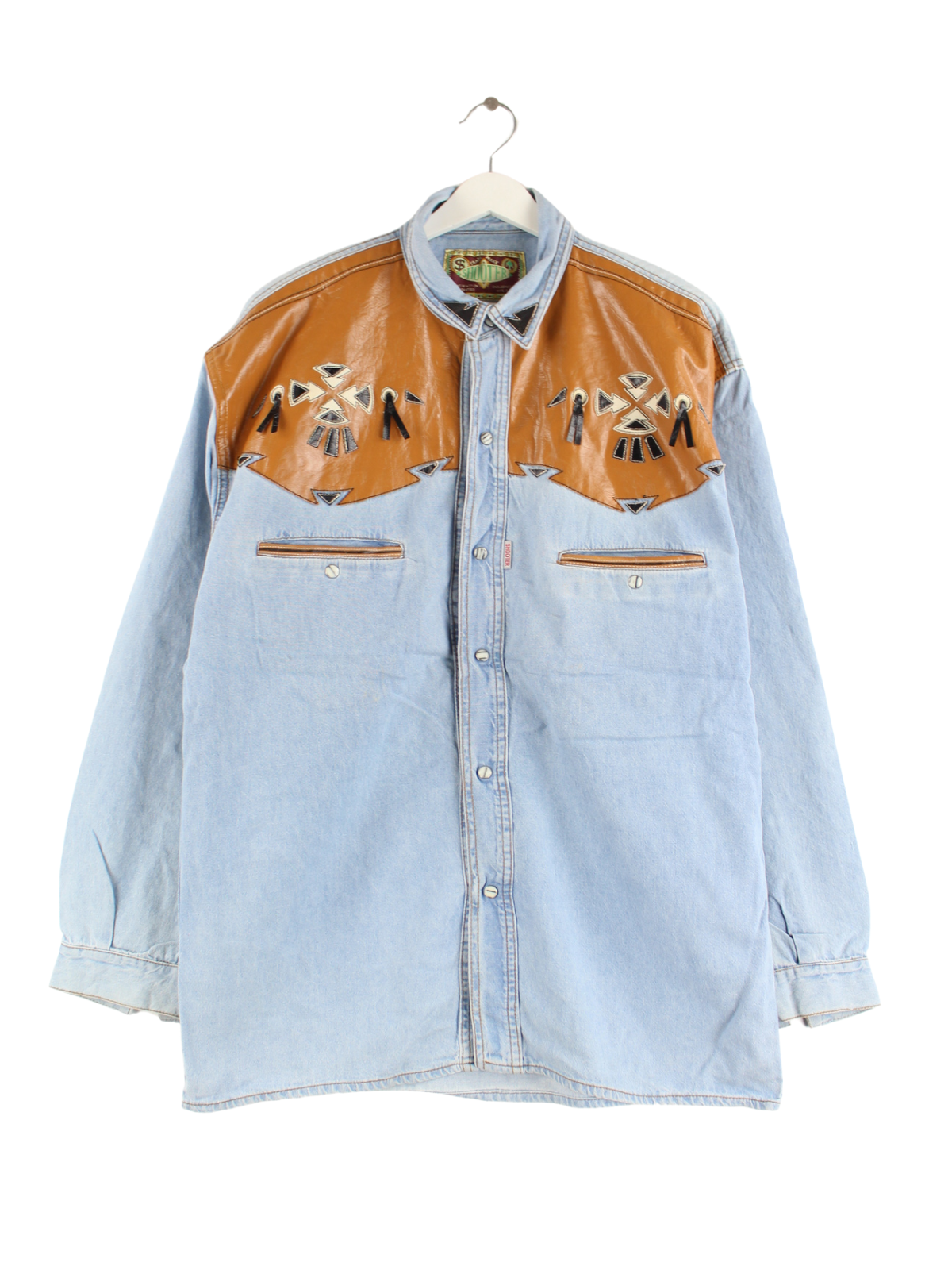Blaues Vintage Freizeit Hemd aus den 80'ern in Größe L. Es ist aus Baumwolle hergestellt und in gutem Zustand zu bekommen.