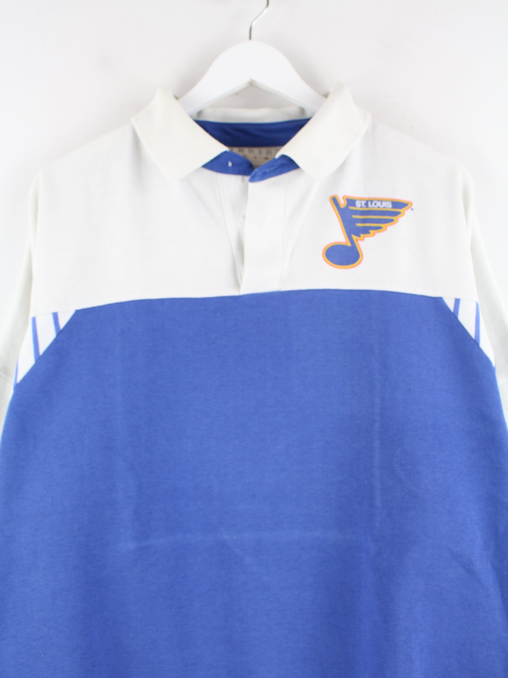 Vintage 80s St. Louis Print Sweater Blau XL