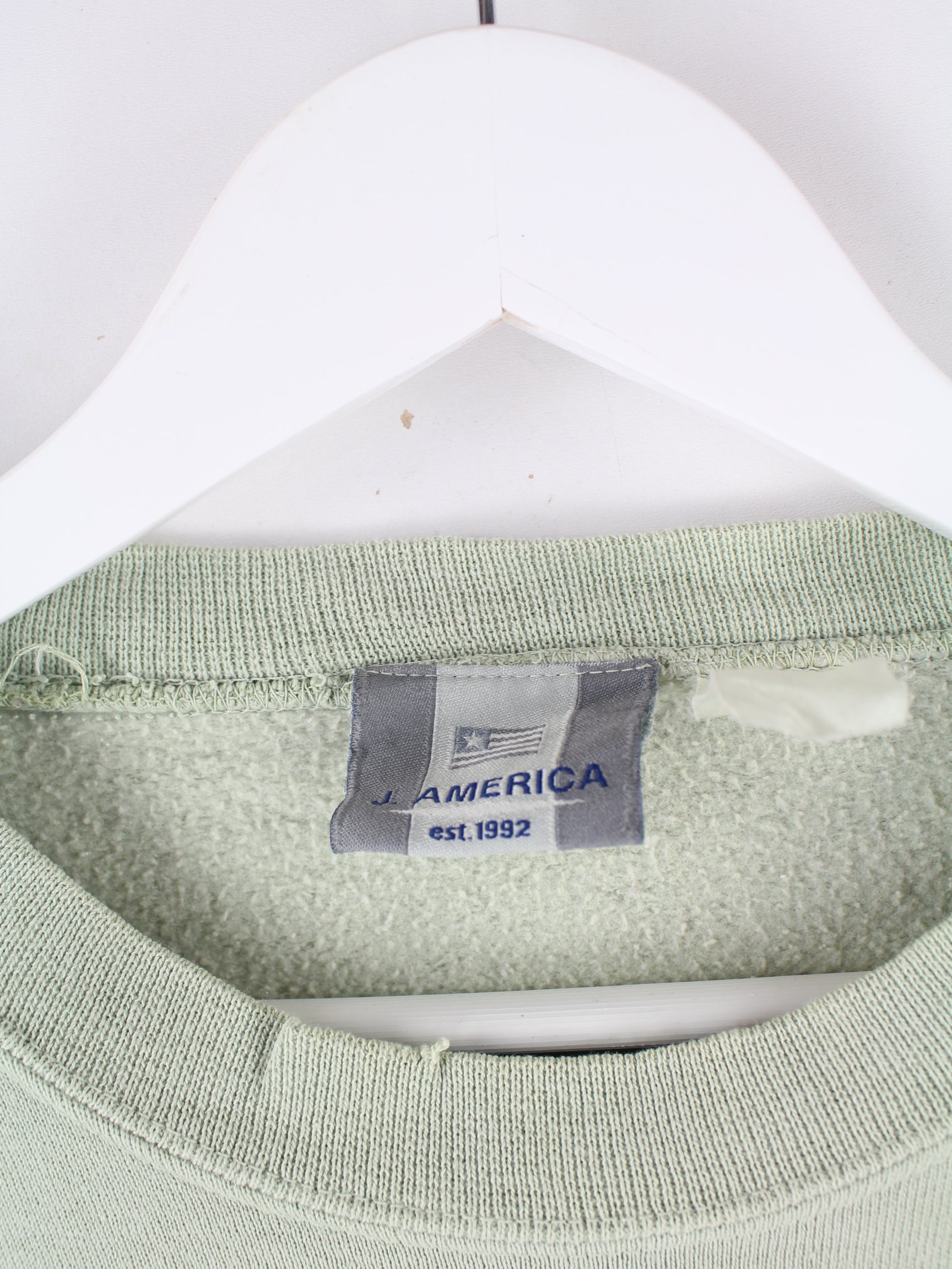Vintage Sweater mit gestickten Motiven in Größe XXL aus den 90'ern. Er ist aus einer Baumwollmischung gemacht und in Grün im Bestand.