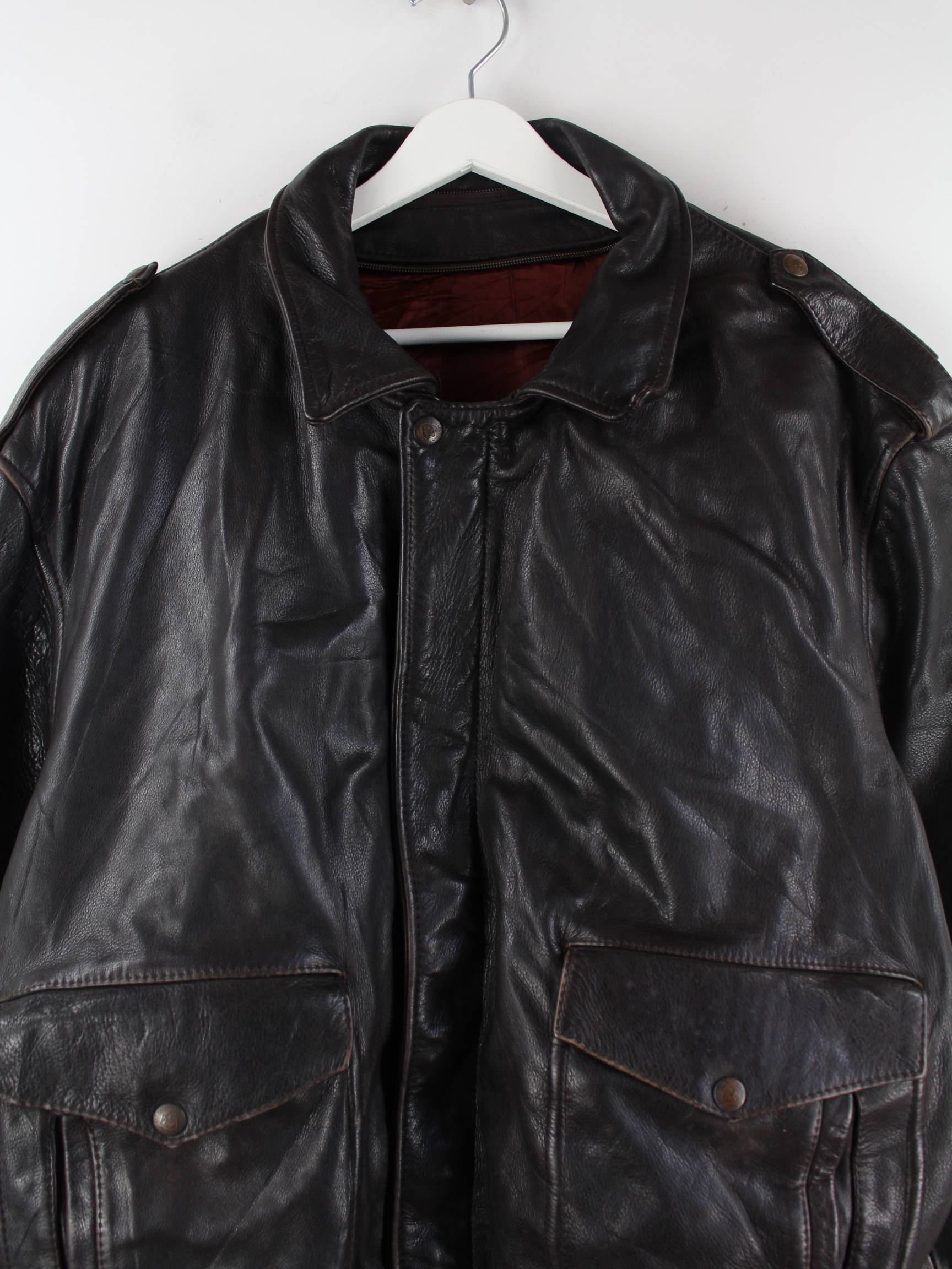 Vintage Jacke in Größe L aus den 90'ern. Sie ist aus Leder angefertigt und in Schwarz zu bekommen.