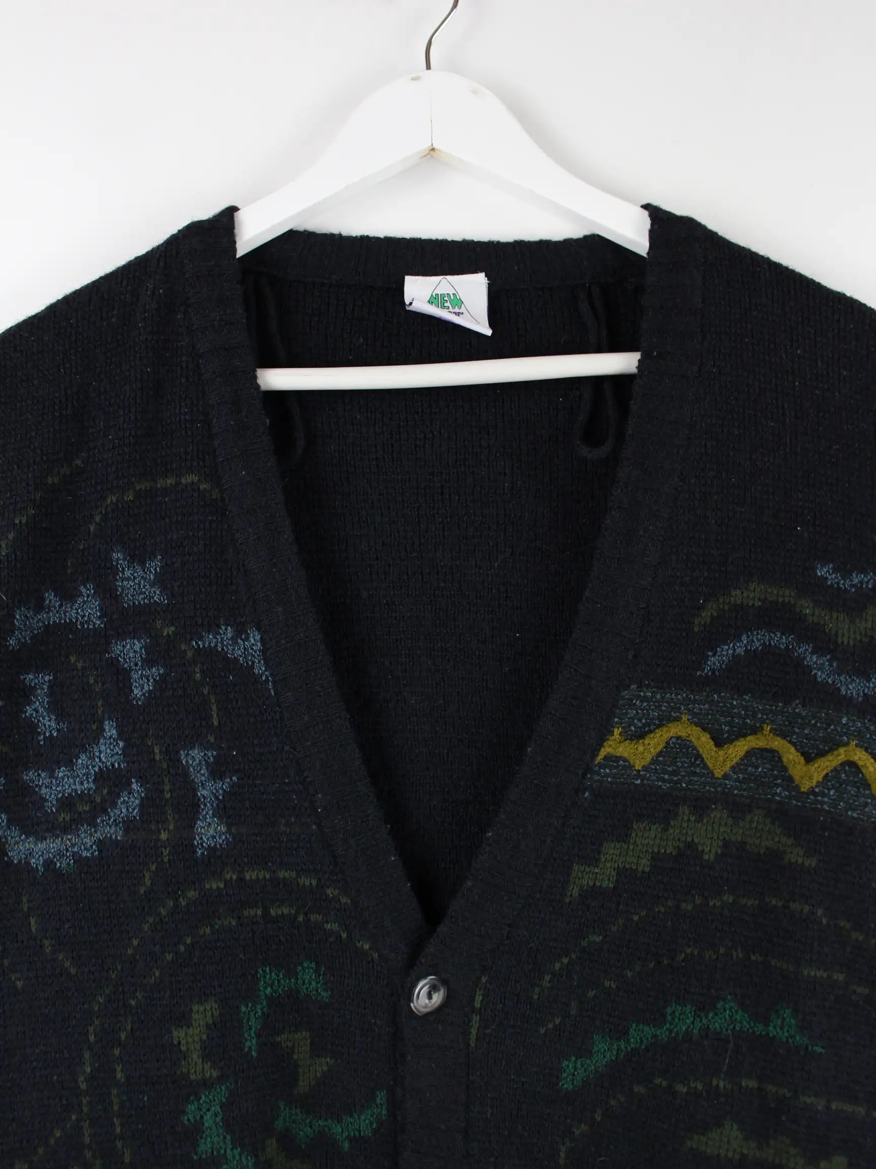 Vintage Strickjacke in Größe L aus den 90'ern. Sie ist aus Acryl gemacht und in Schwarz im Bestand.