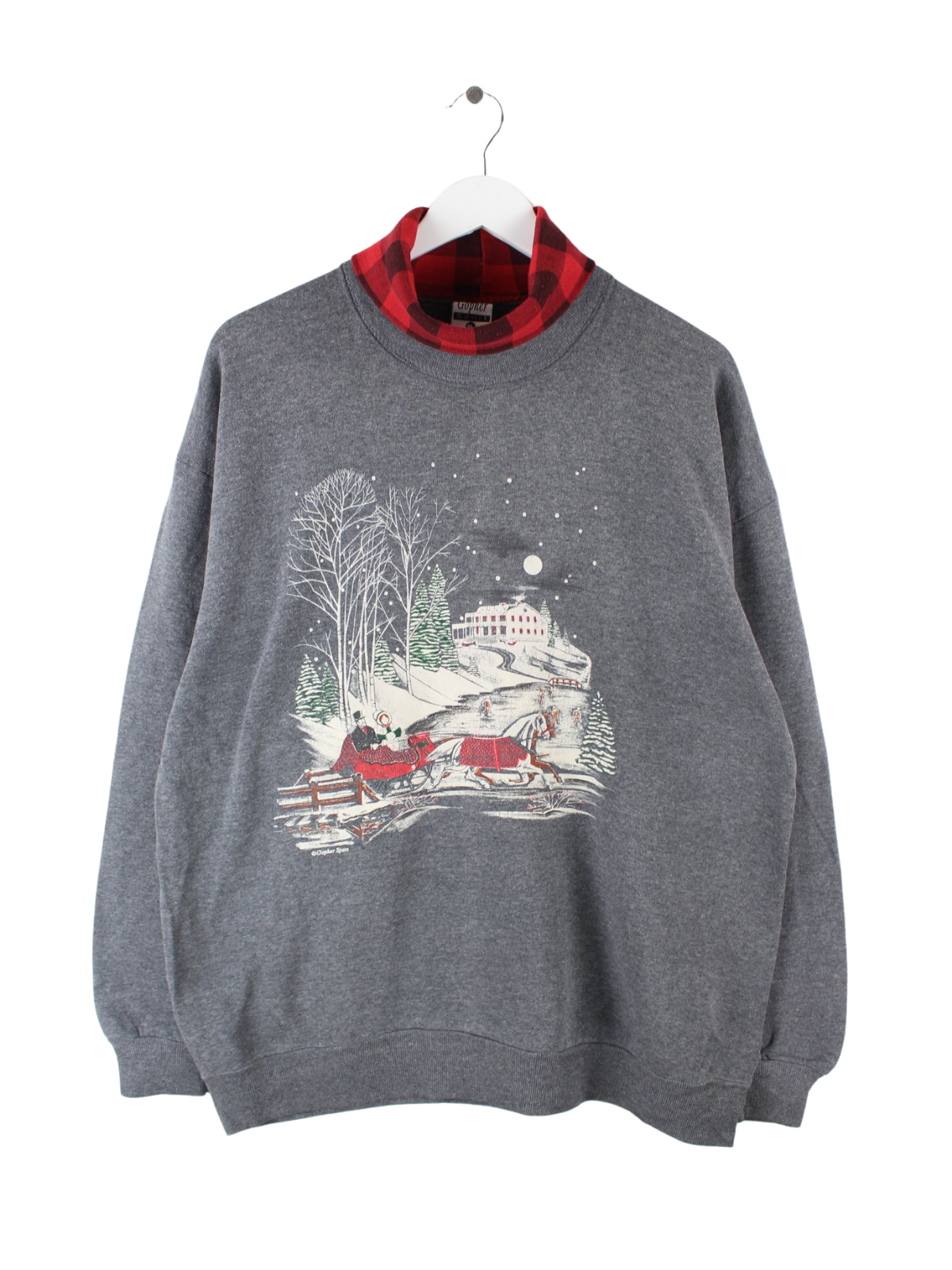 Grauer Vintage Sweater aus den 90'ern in Größe XL. Er ist aus einer Baumwollmischung gefertigt und in sehr gutem Zustand in Stock. Mit schickem Christmas Print.