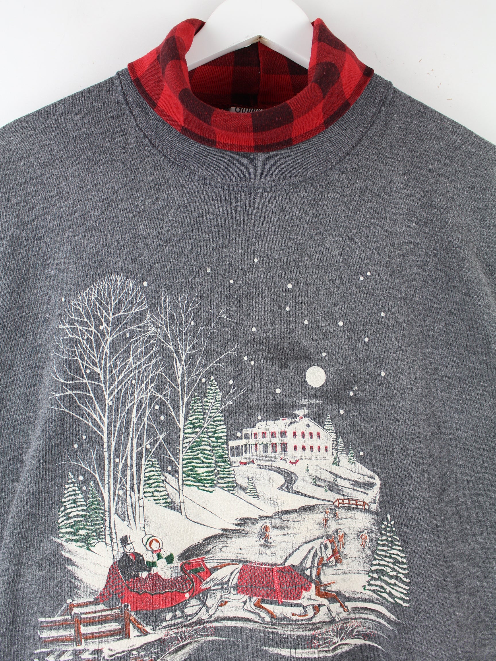 Vintage 90s Christmas Print Rollkragen Sweater Grau XL