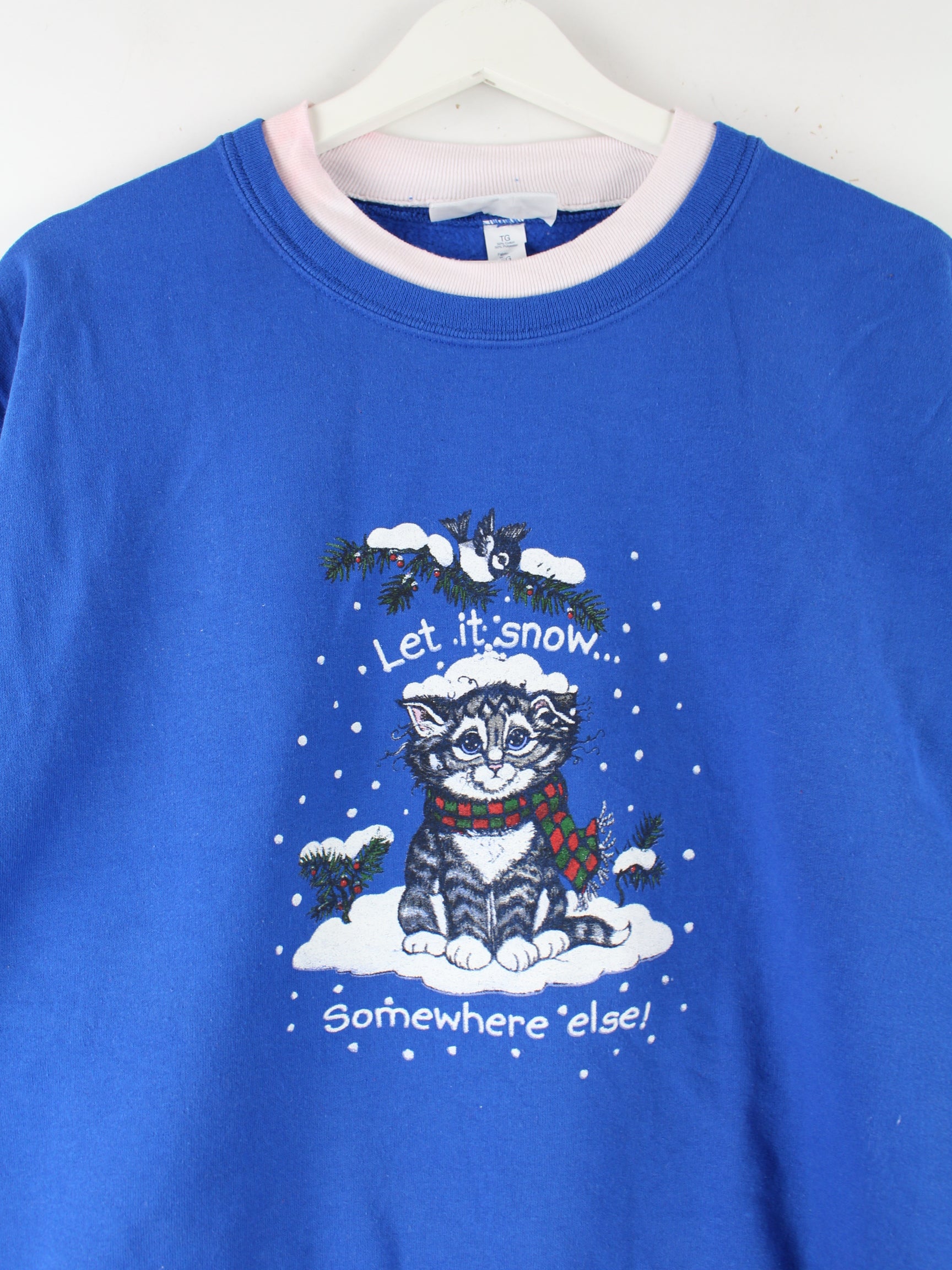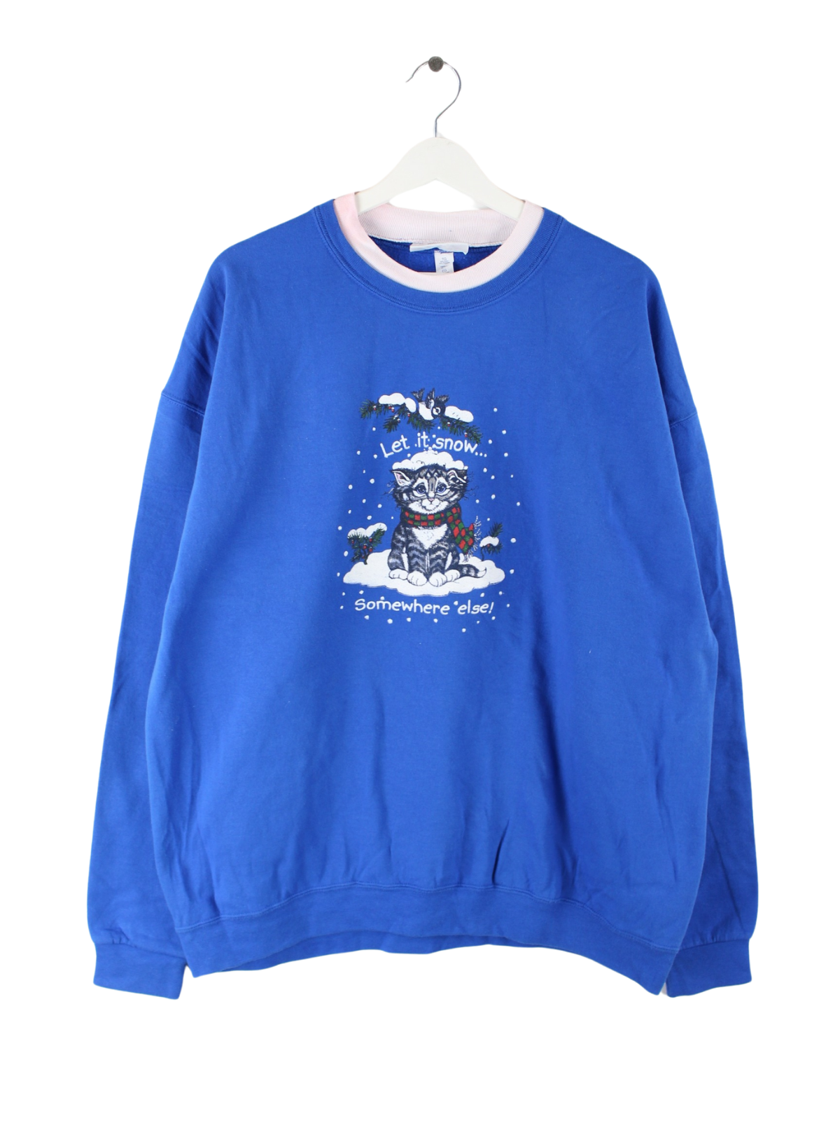 Blauer Vintage Sweater aus den 90'ern in Größe XL. Er ist aus einer Baumwollmischung angefertigt und in gutem Zustand im Bestand. Mit seltenem Christmas Print.