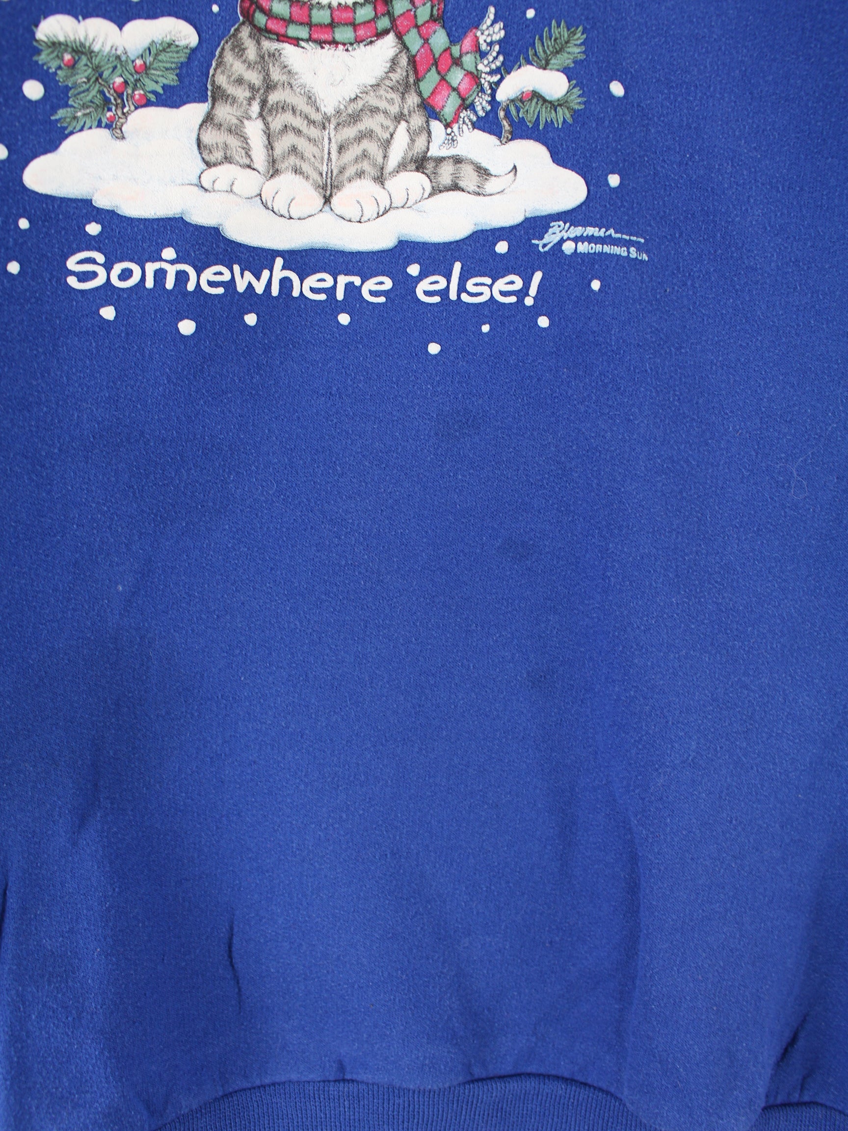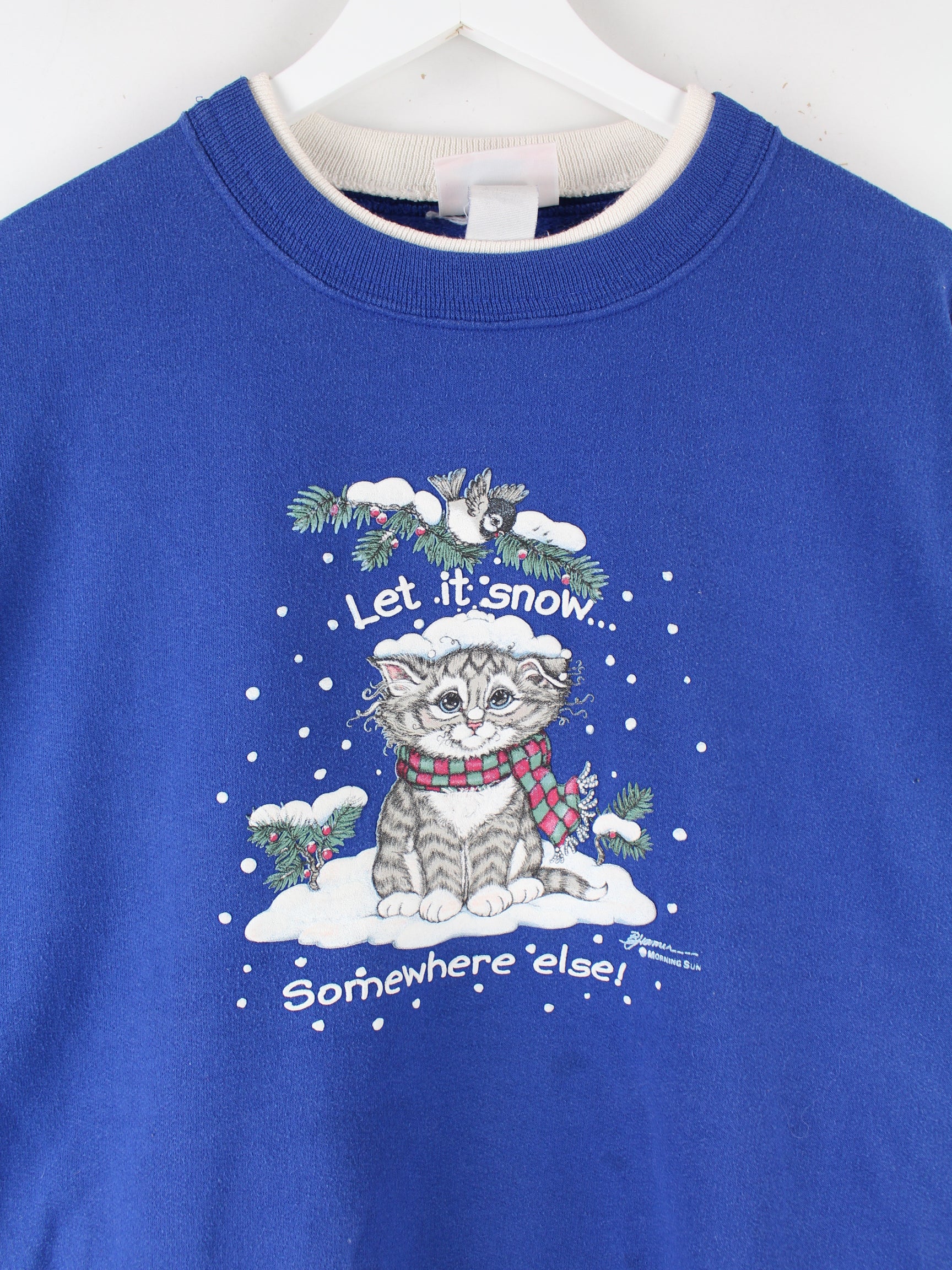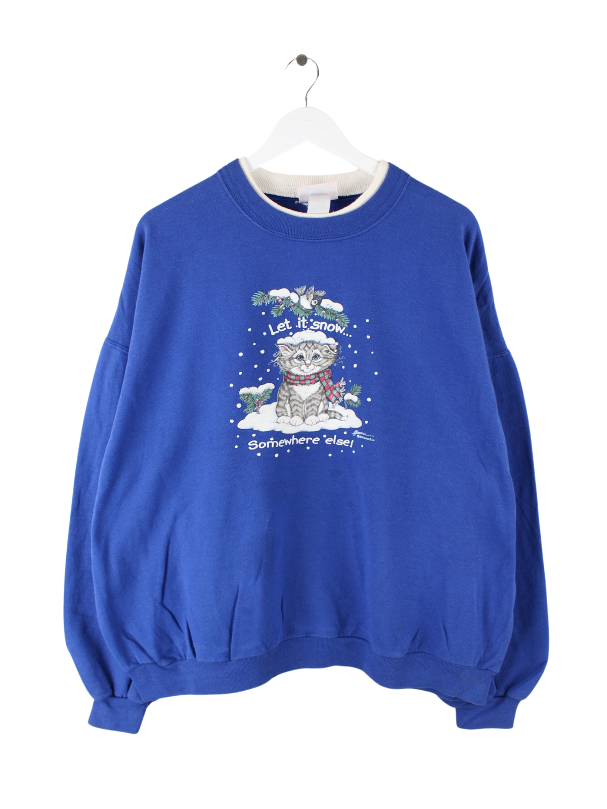 Blauer Vintage Sweater aus den 90'ern in Größe XXL. Er ist aus einer Baumwollmischung angefertigt und in gutem Zustand im Angebot. Mit schönem Christmas Print.