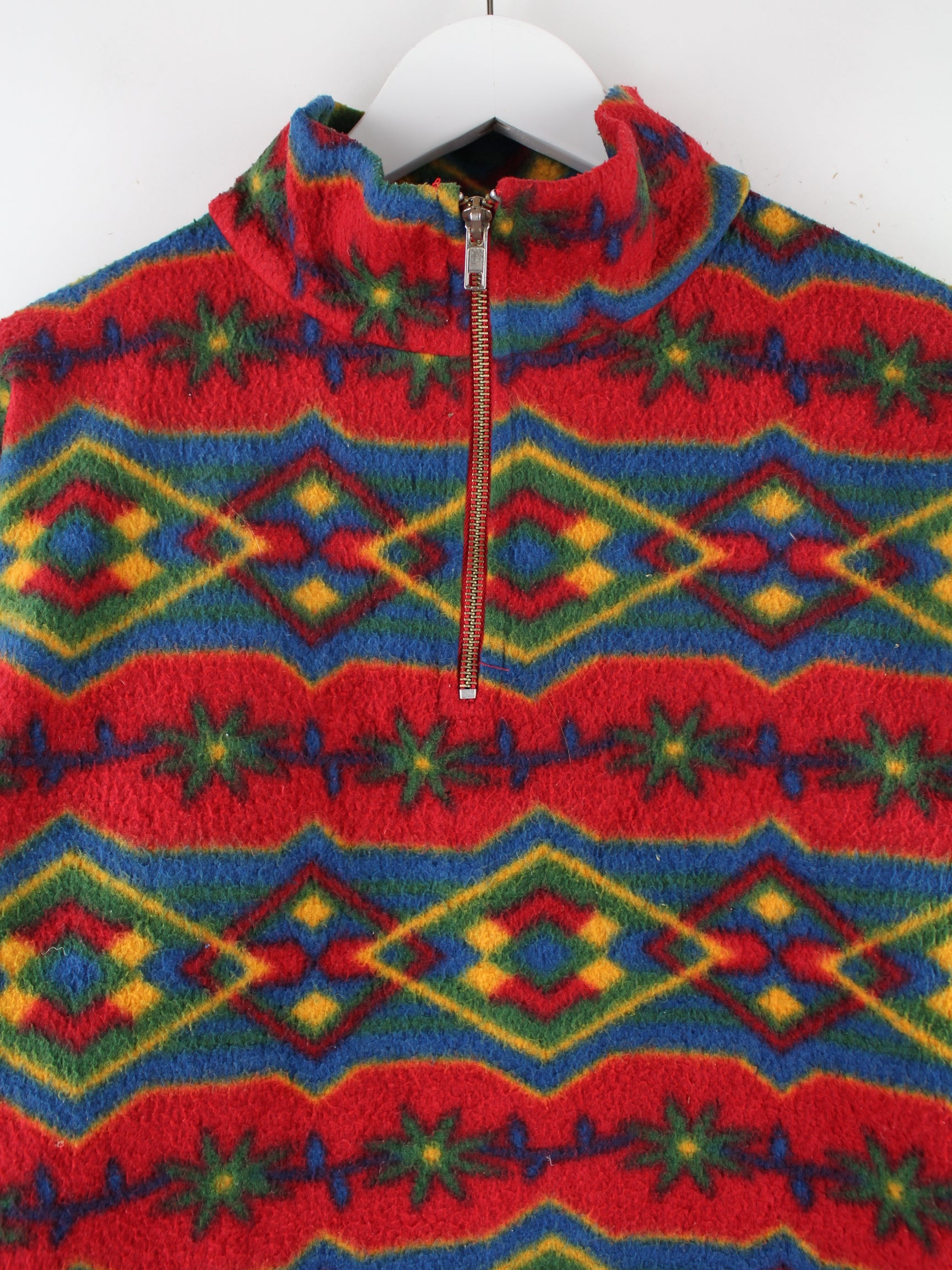 Vintage 90s Crazy Pattern Fleece Jacke Mehrfarbig XS