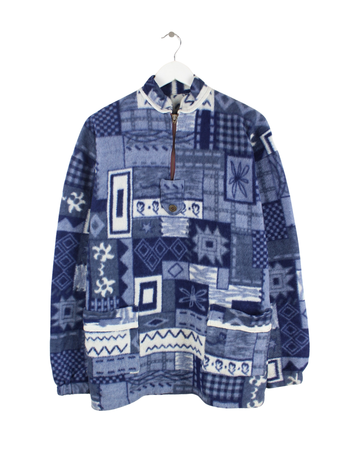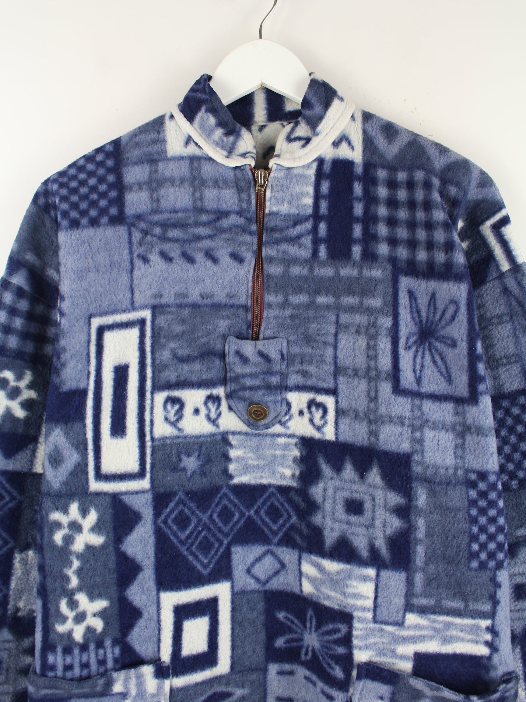 Vintage 90s Crazy Pattern Half Zip Fleece Sweater Blau L