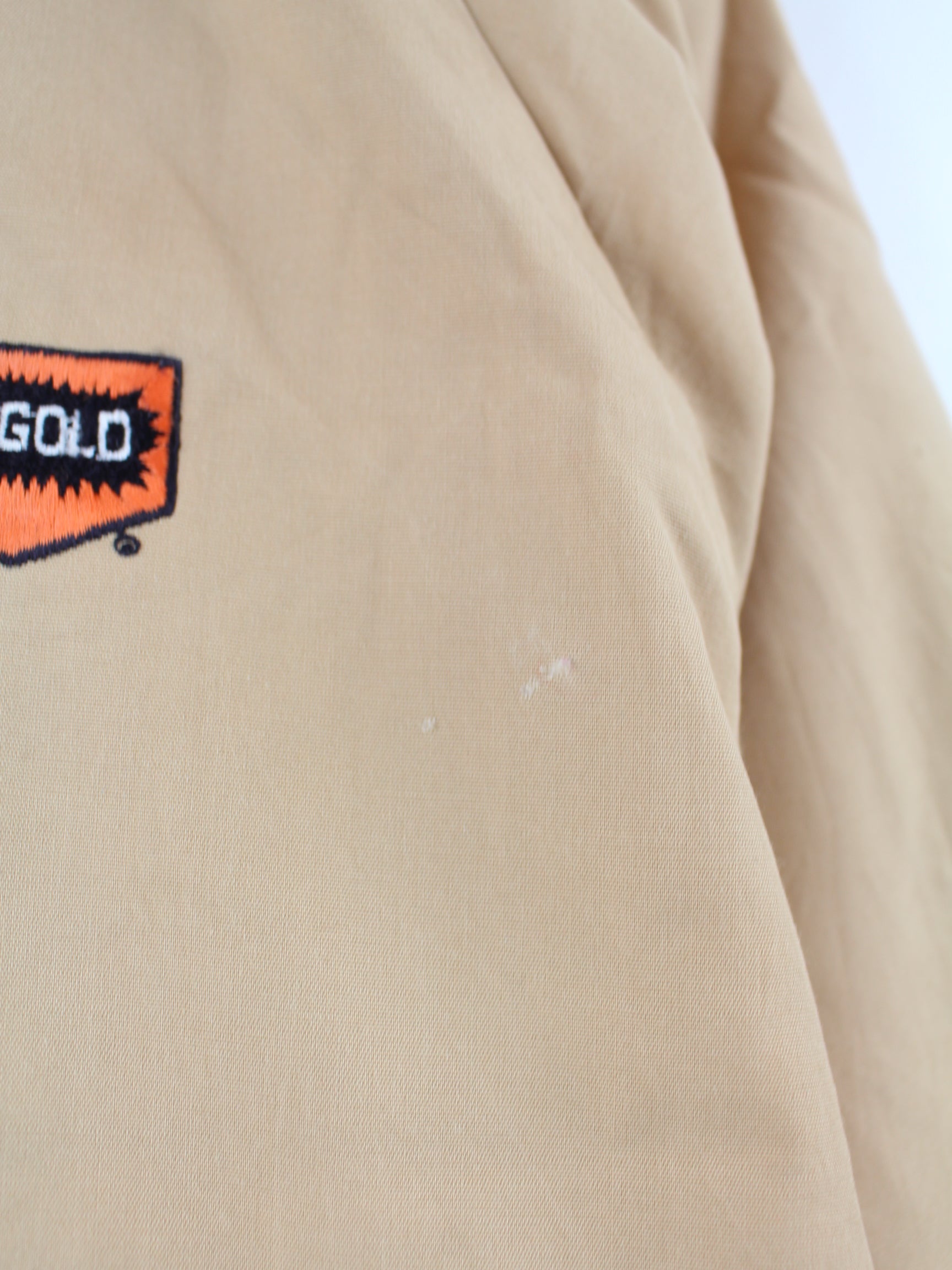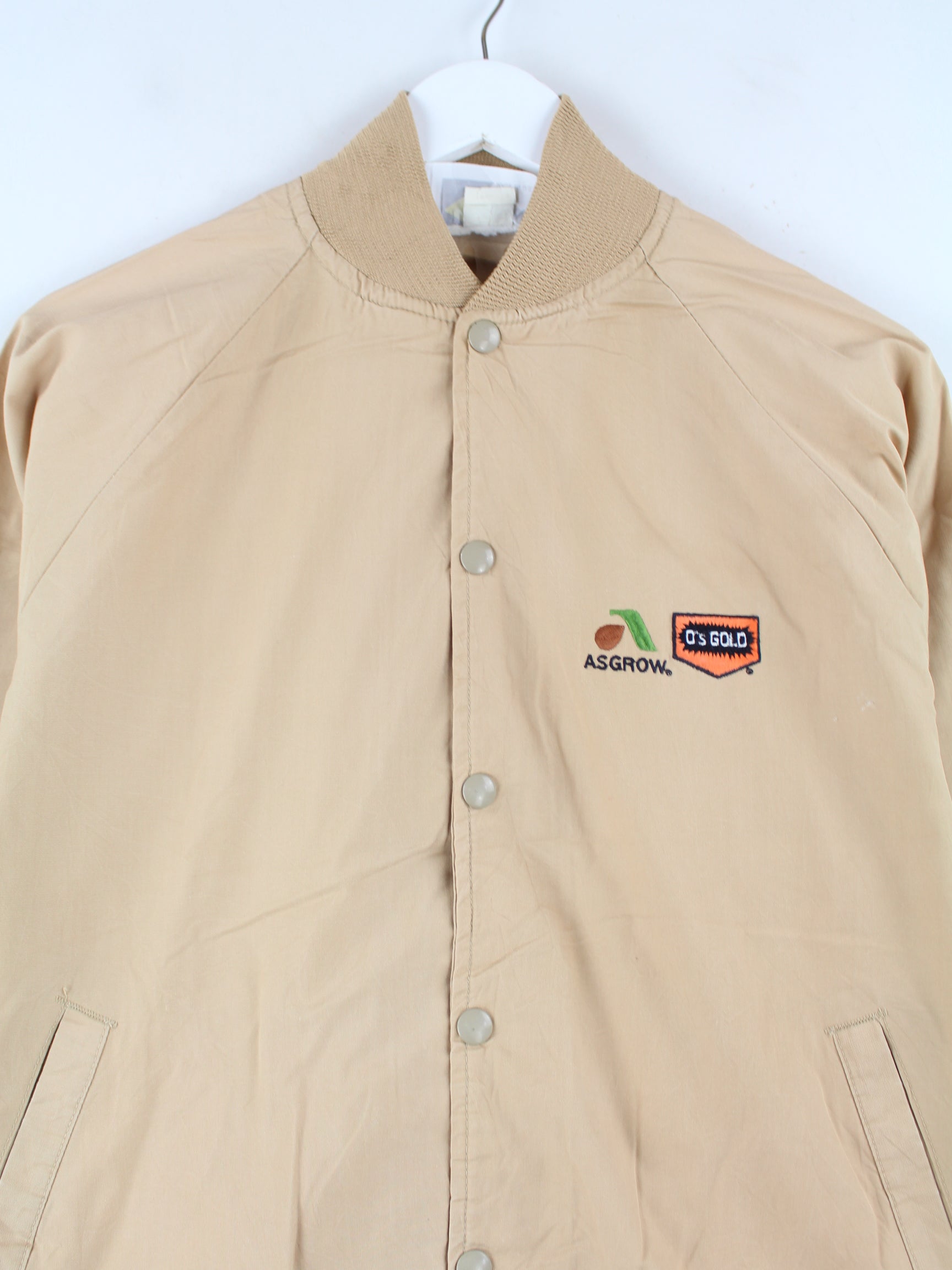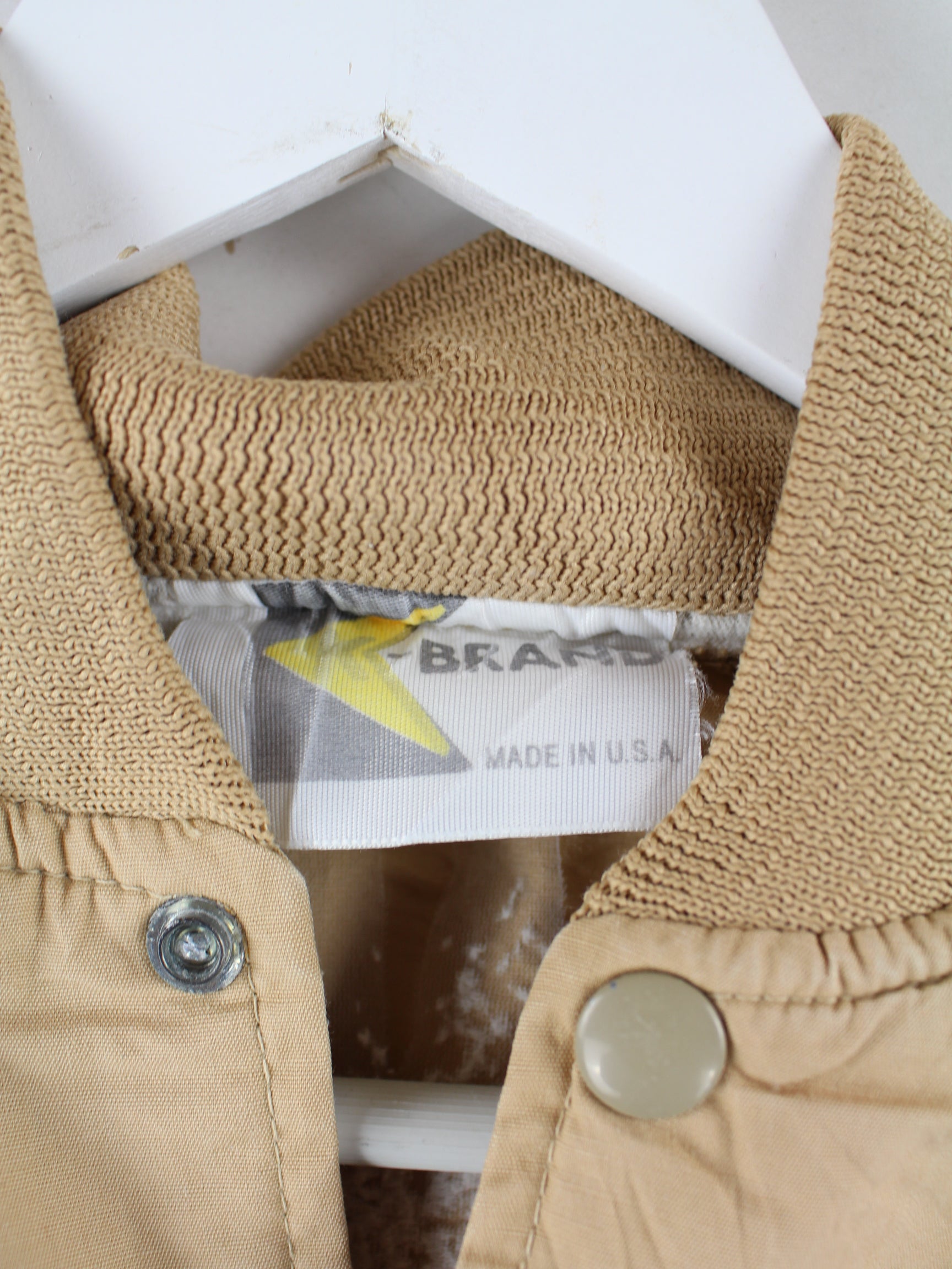 Braune Vintage Leichte Jacke mit gestickten Motiven aus den 90'ern in Größe S. Sie ist aus einer Baumwollmischung . Den Zustand würden wir als 'In Ordnung' bezeichnen (vergl. Bilder).