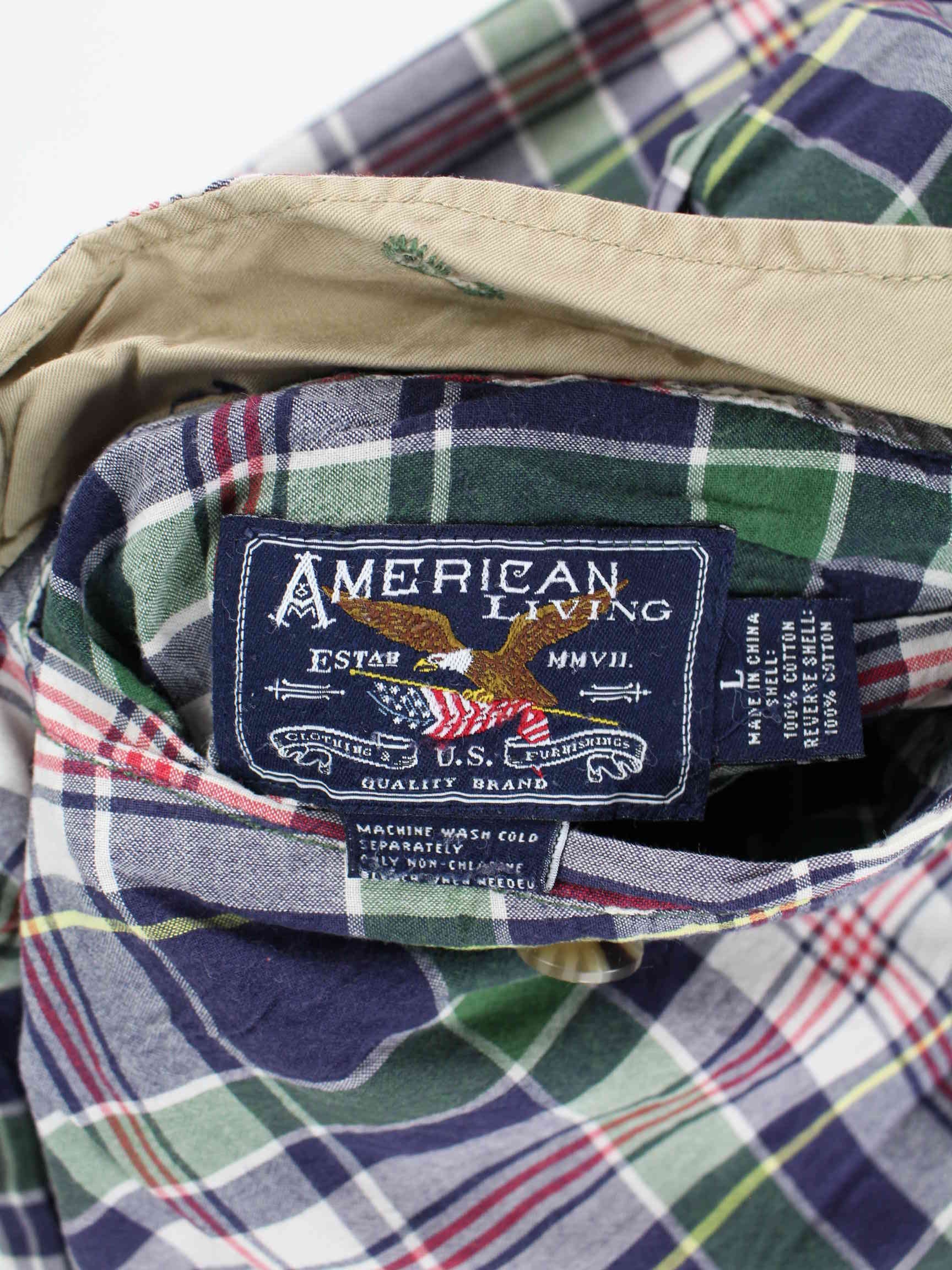 Vintage Leichte Jacke in Größe M aus den 90'ern. Sie ist aus einer Baumwollmischung gefertigt und in bunten Farben bei uns vorrätig.