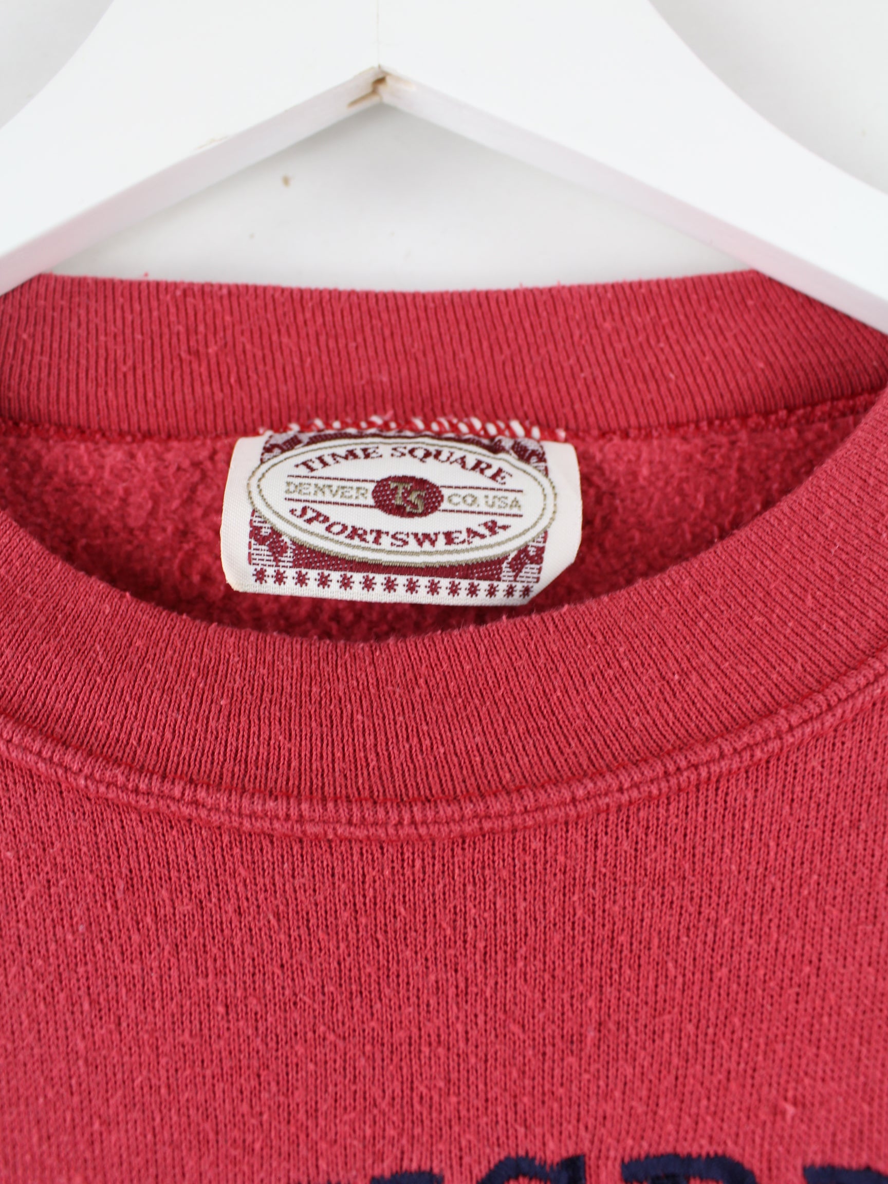 Roter Vintage Sweater mit Stickereien aus den 90'ern in Größe XL. Er ist aus einer Baumwollmischung gemacht und in sehr gutem Zustand zu haben.