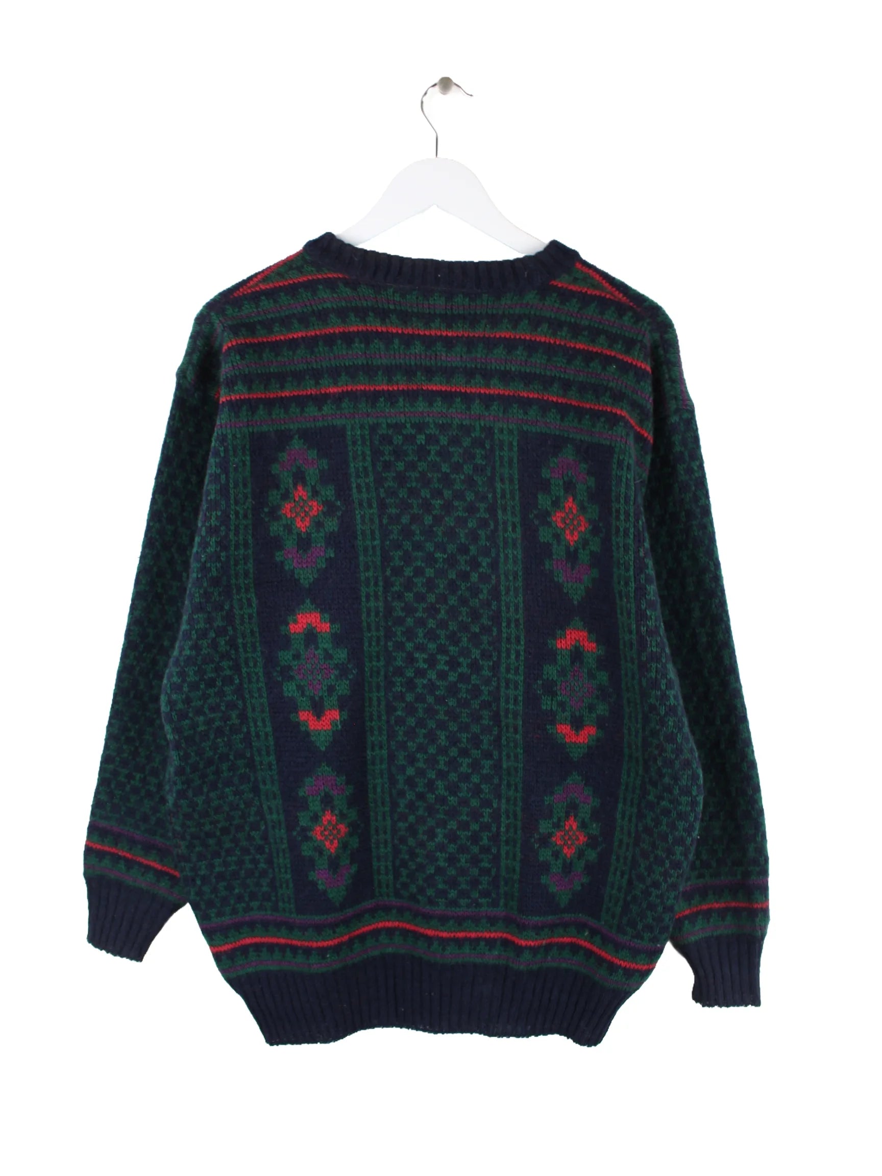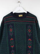 Vintage Pullover in Größe M aus den 90'ern. Er ist aus Wolle produziert und in Grün lieferbar.