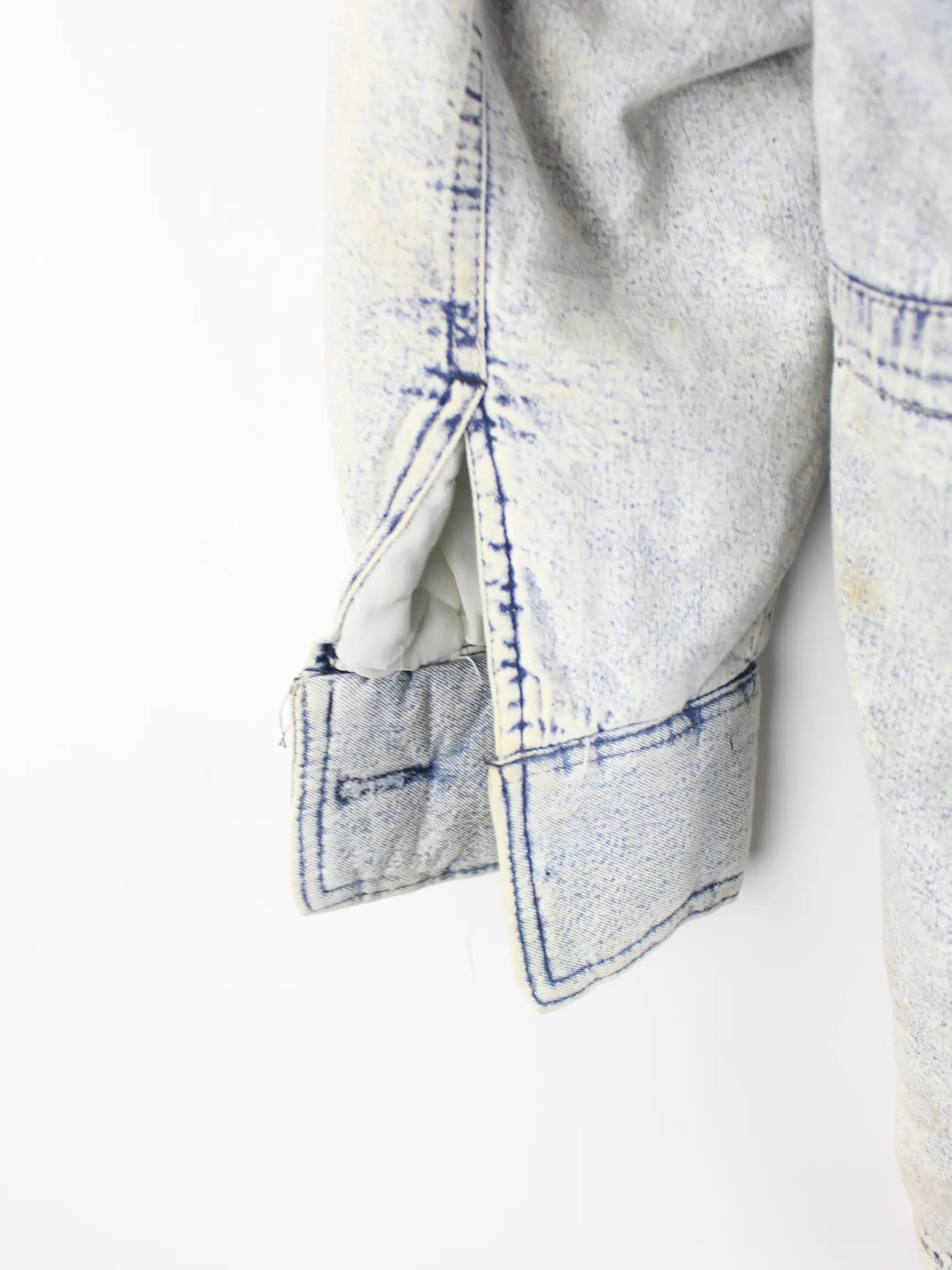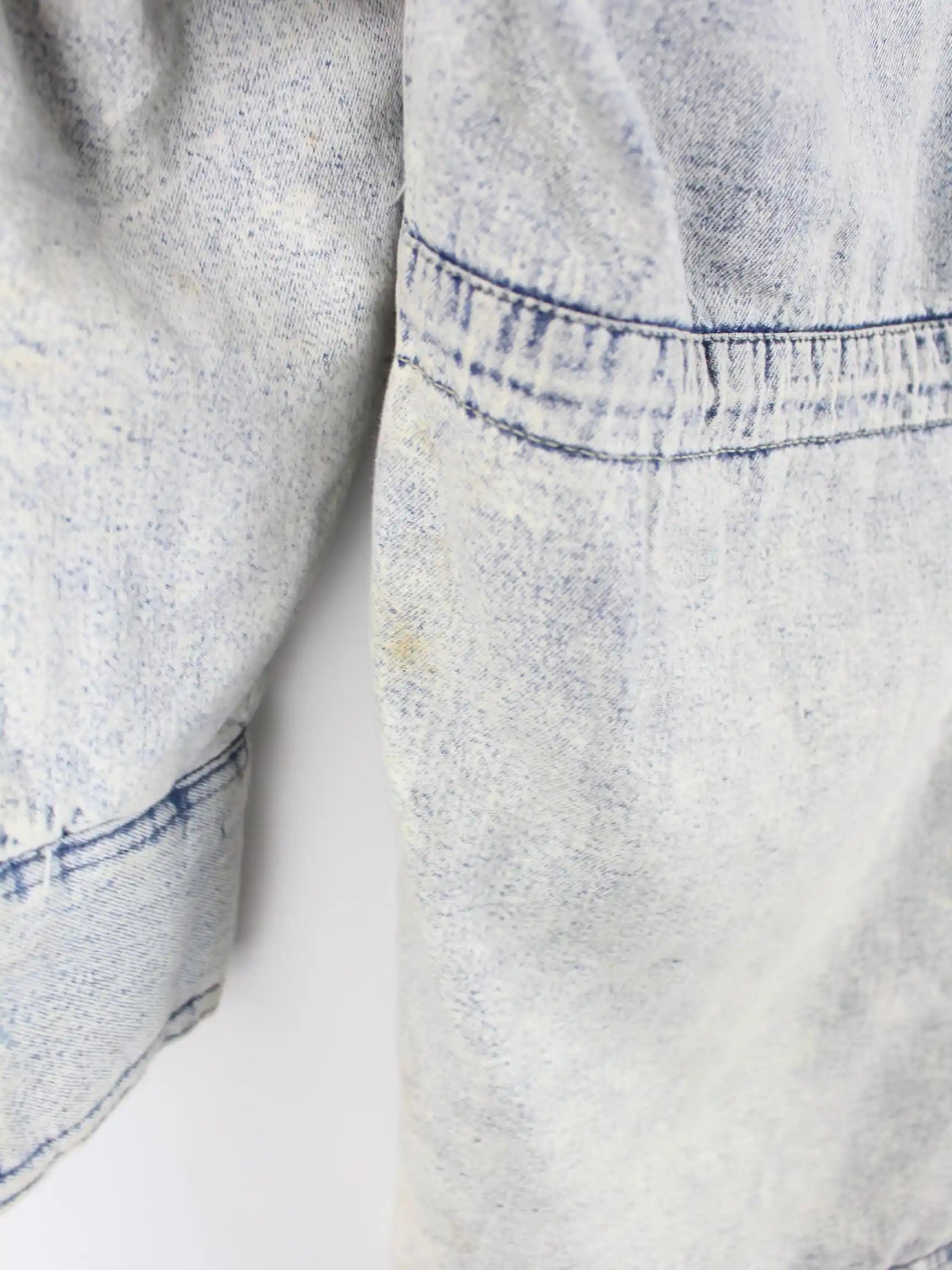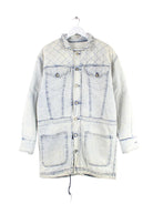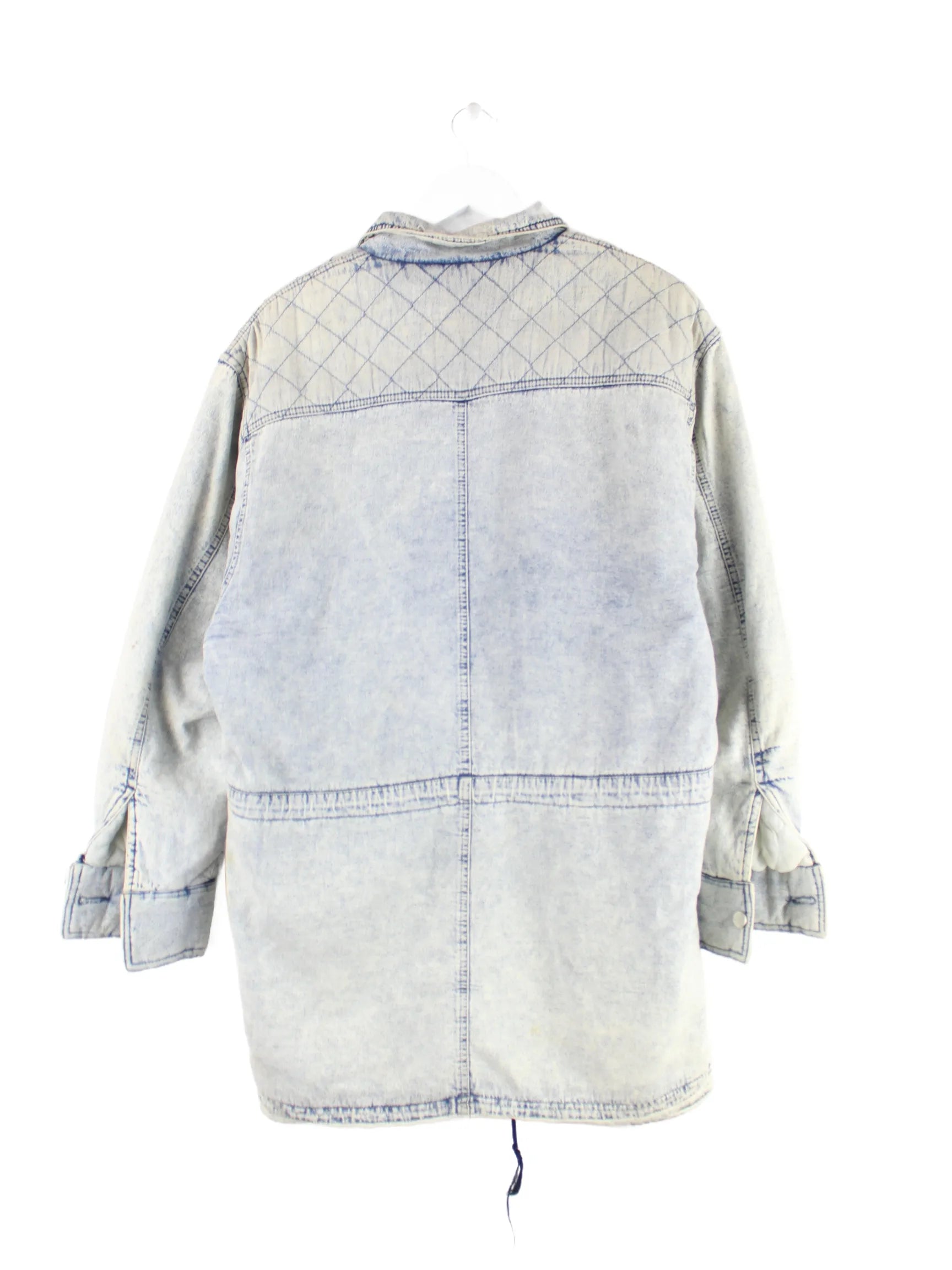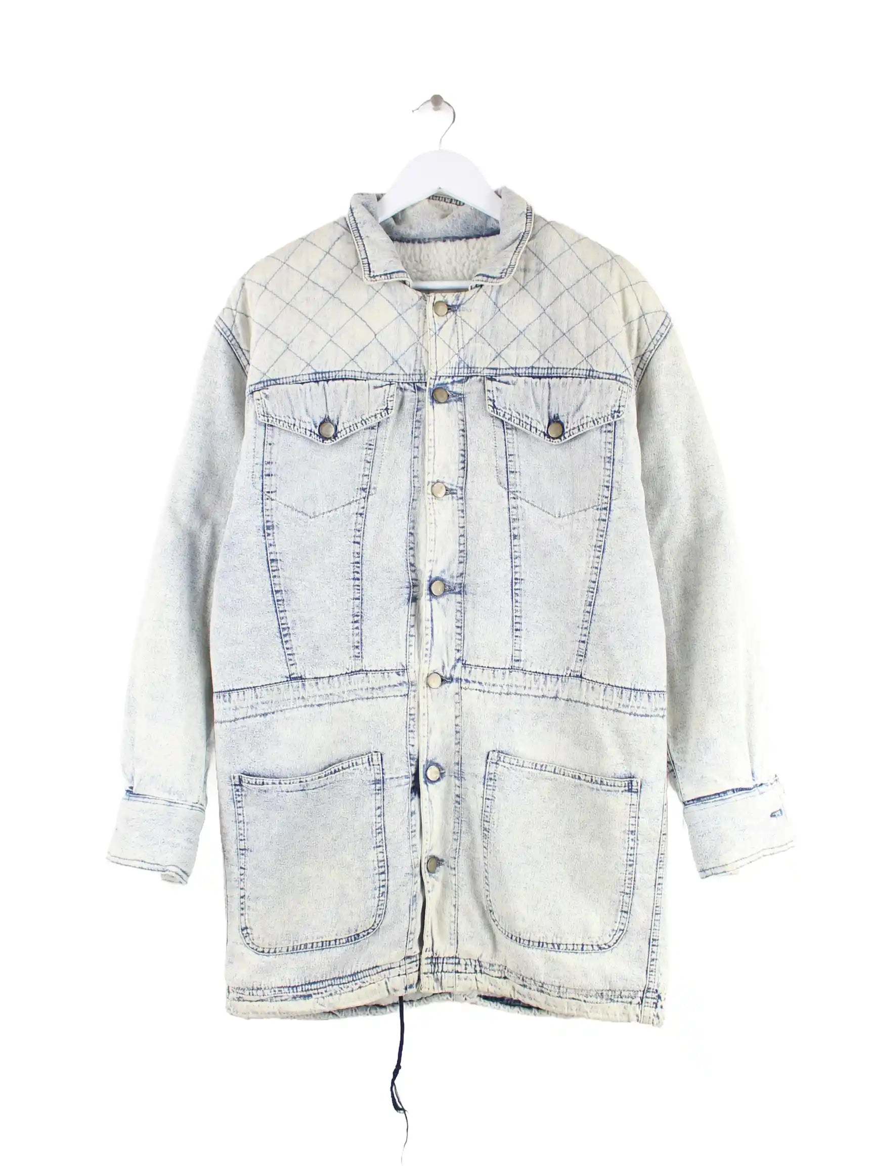 Blaue Vintage Jacke aus den 90'ern in Größe M. Sie ist aus Baumwolle . Den Zustand würden wir als 'In Ordnung' bezeichnen (vergl. Bilder).