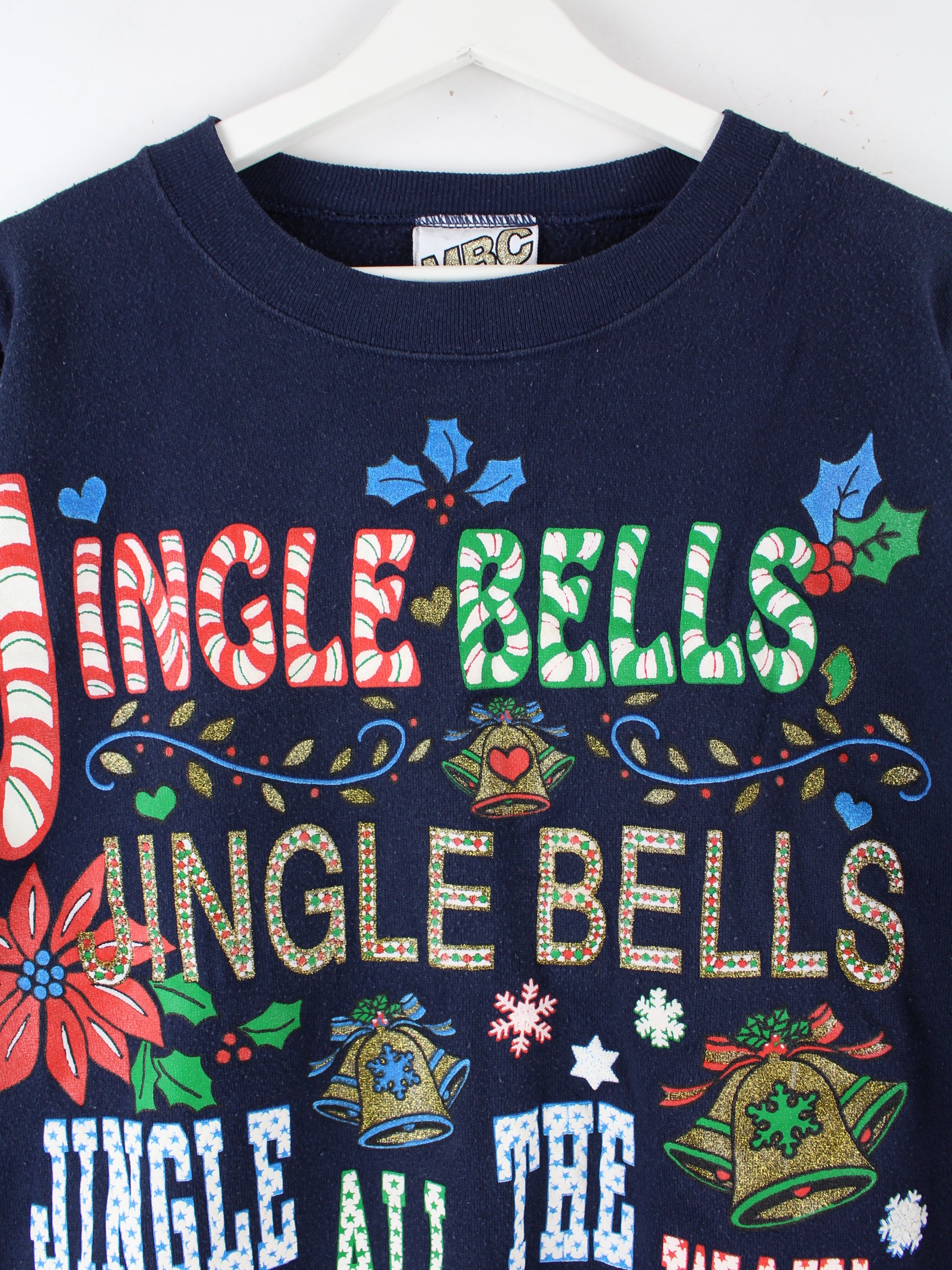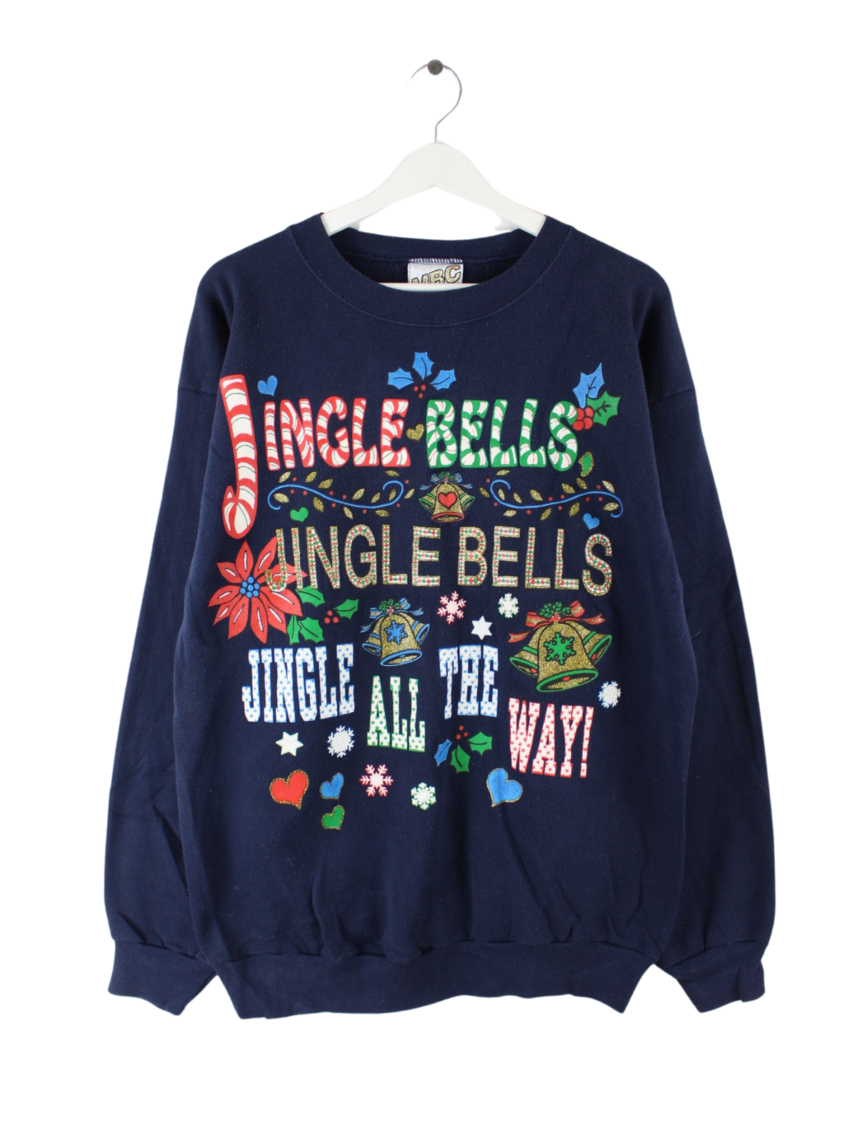 Vintage 90s Jingle Bells Christmas Print Sweater Blau XL