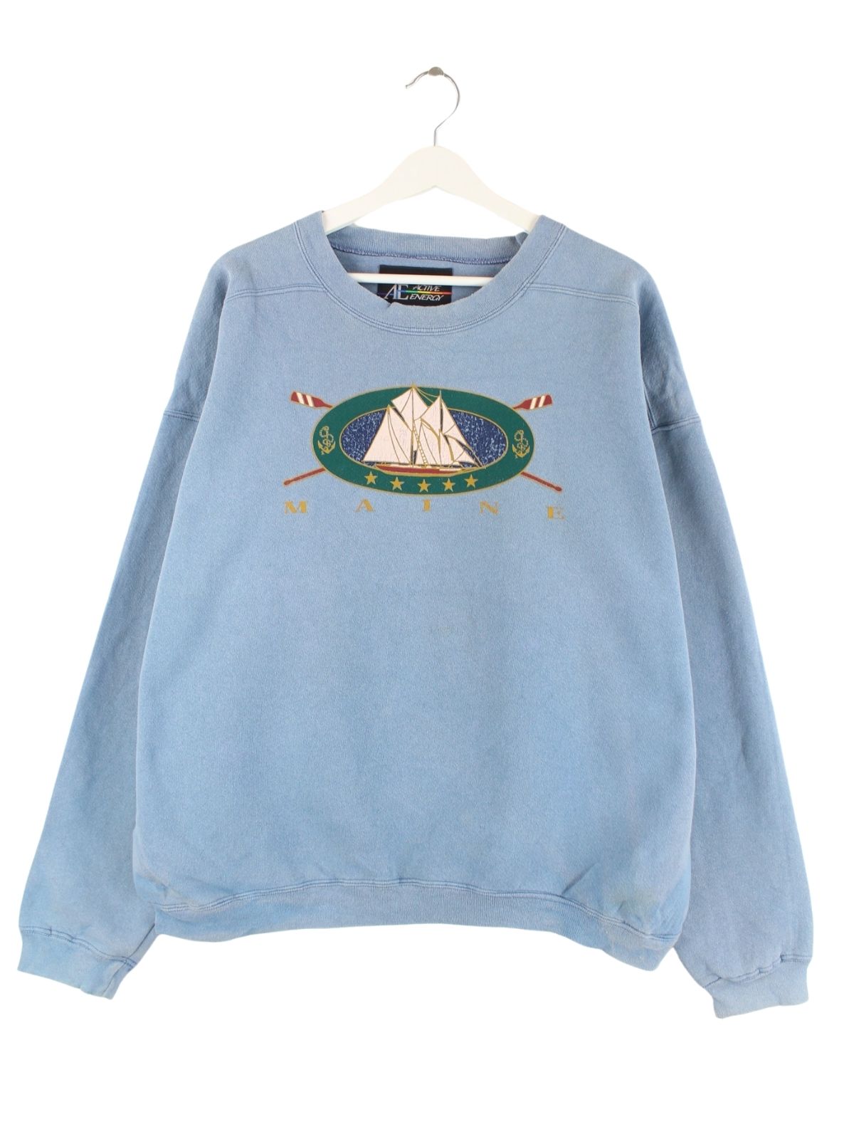 Vintage Sweater in Größe XL aus den 90'ern. Er ist aus einer Baumwollmischung angefertigt und in Blau auf Lager. Mit seltenem Christmas Print.