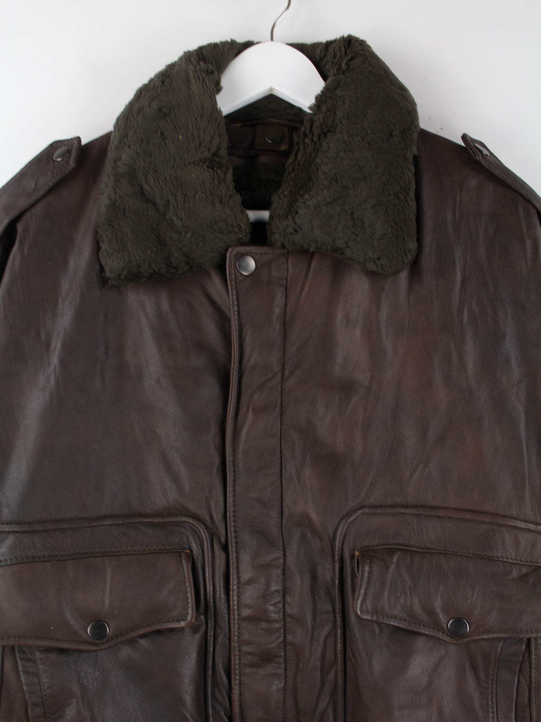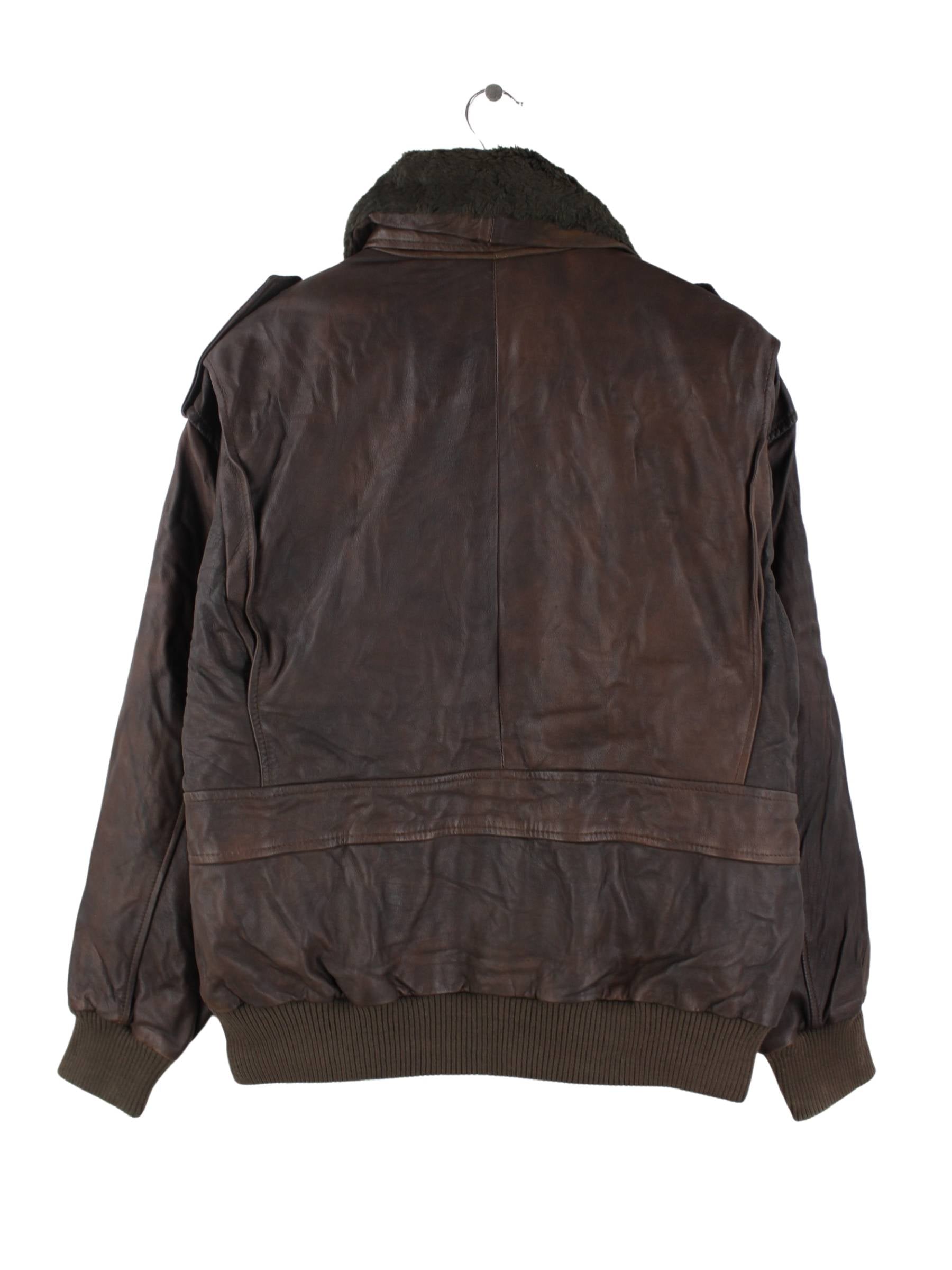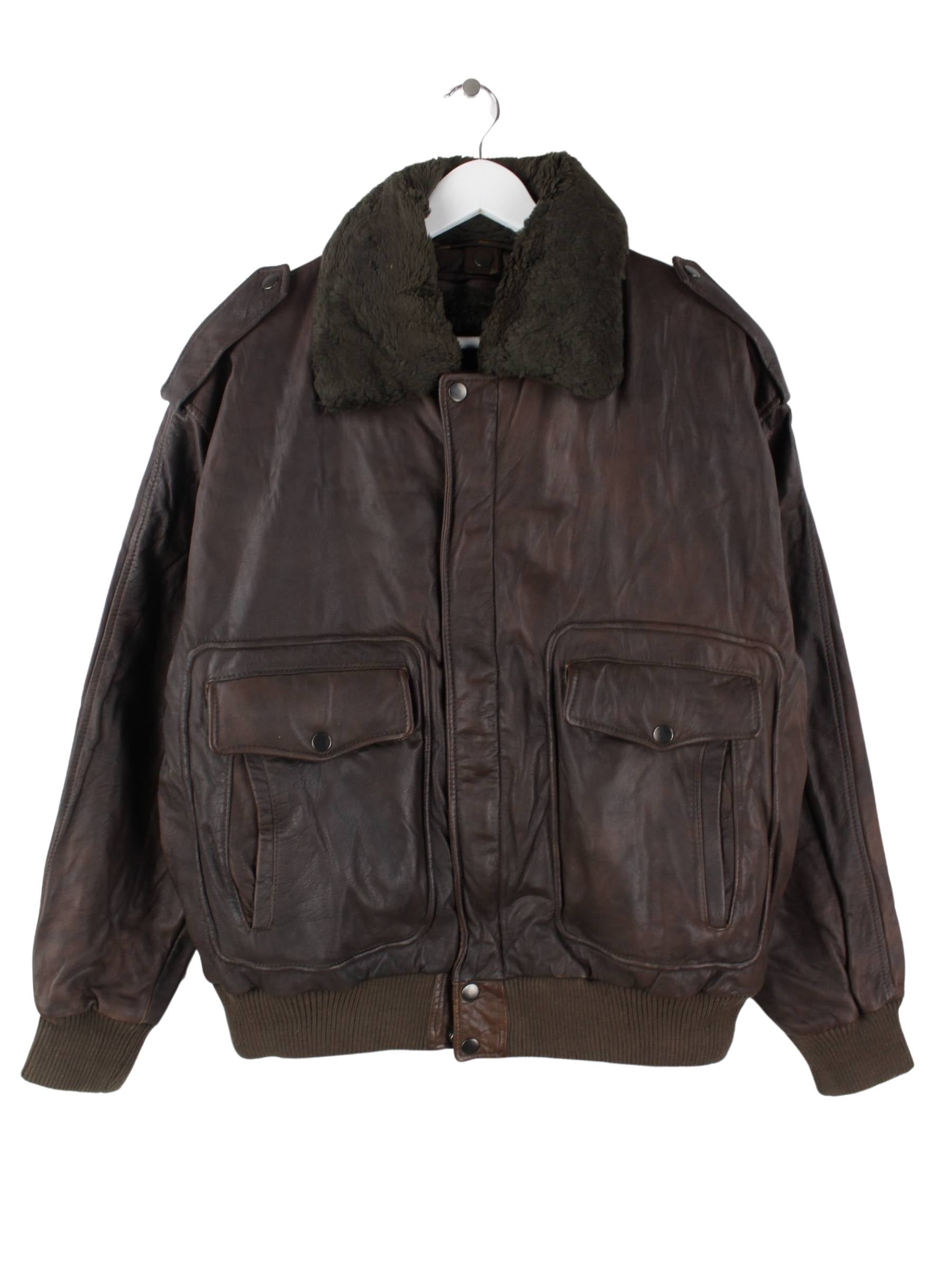 Braune Vintage Jacke aus den 90'ern in Größe L. Sie ist aus Leder gemacht und in sehr gutem Zustand zu bekommen.
