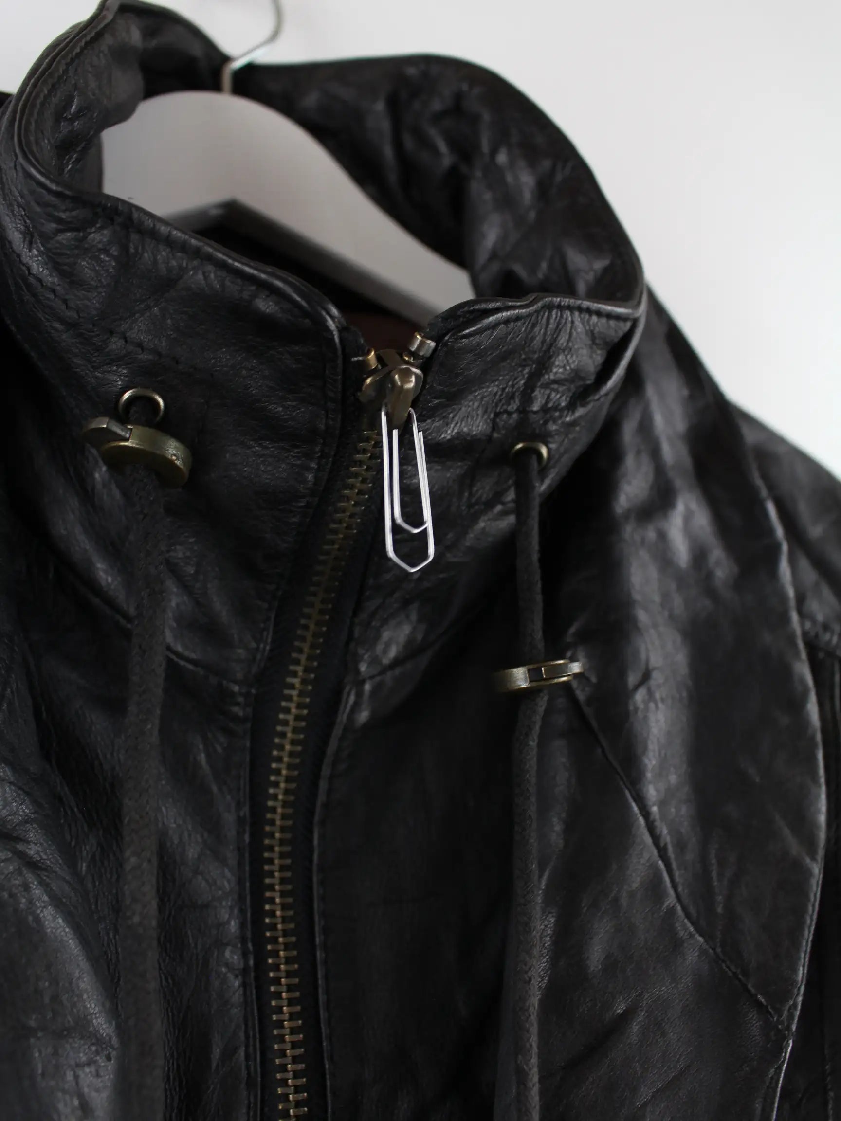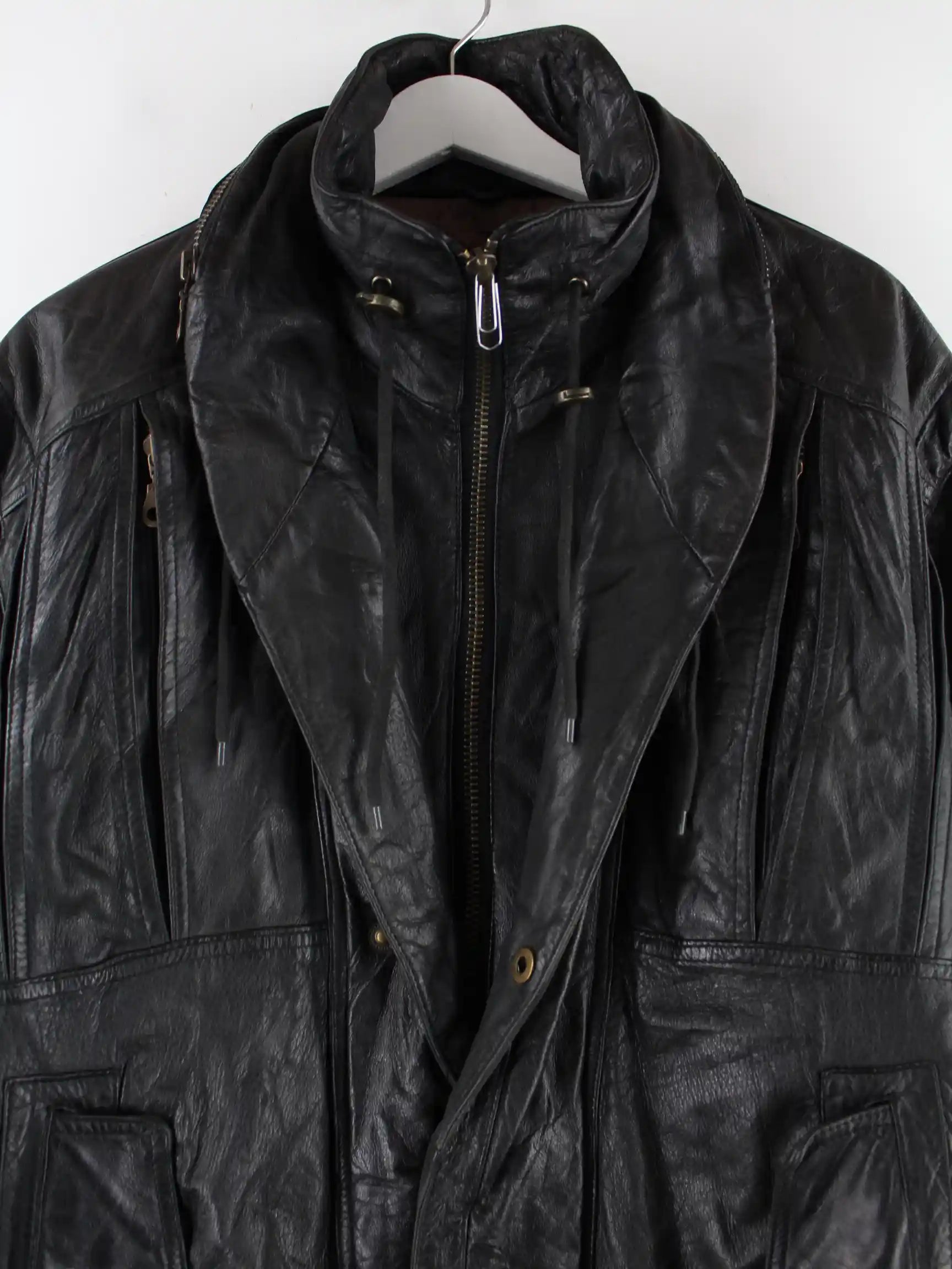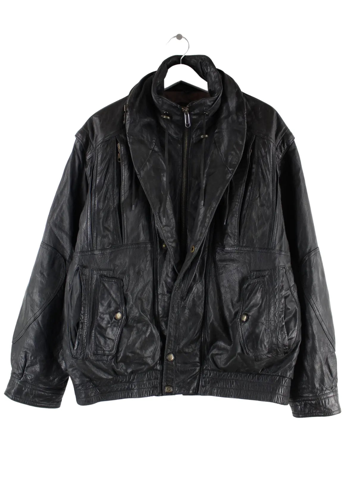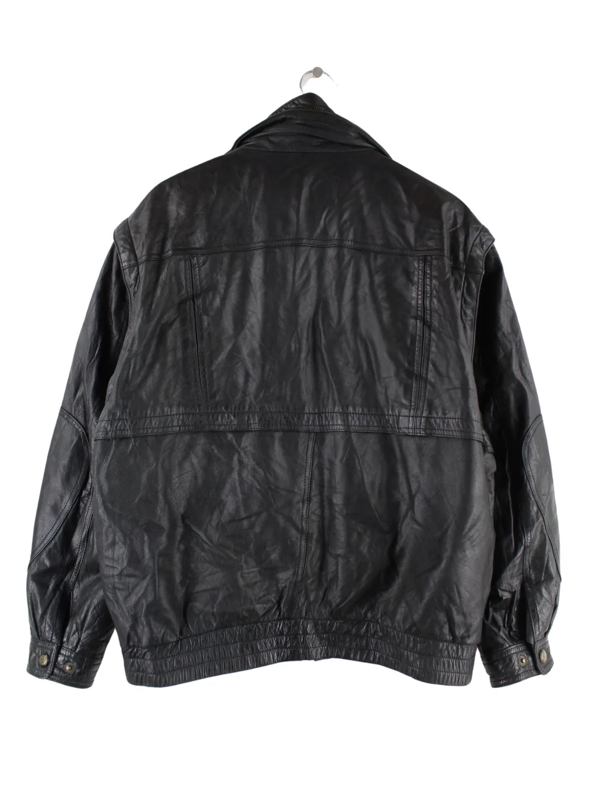 Vintage Jacke in Größe L aus den 90'ern. Sie ist aus Leder hergestellt und in Schwarz in Stock.