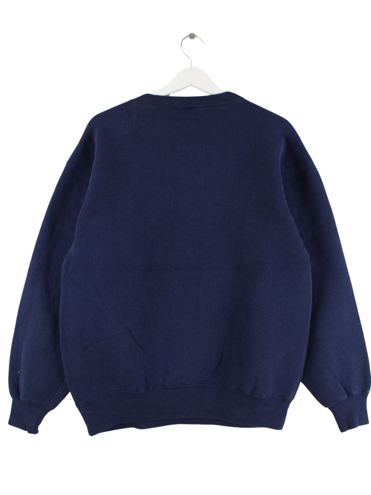 Blauer Vintage Sweater mit Stickereien aus den 90'ern in Größe M. Er ist aus einer Baumwollmischung gefertigt und in sehr gutem Zustand in Stock.