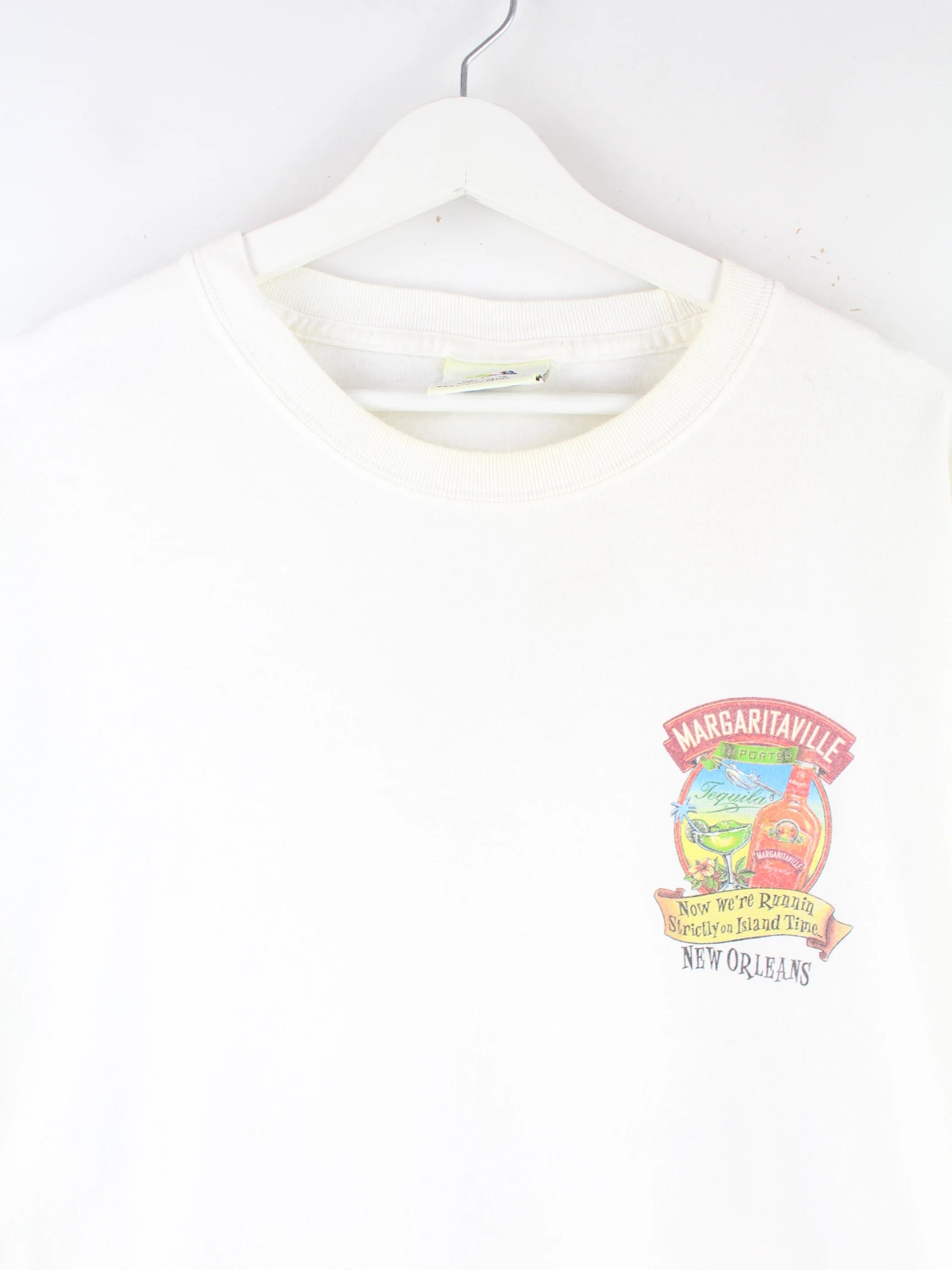 Vintage 90s Margaritaville Print Heavy T-Shirt Weiß XL