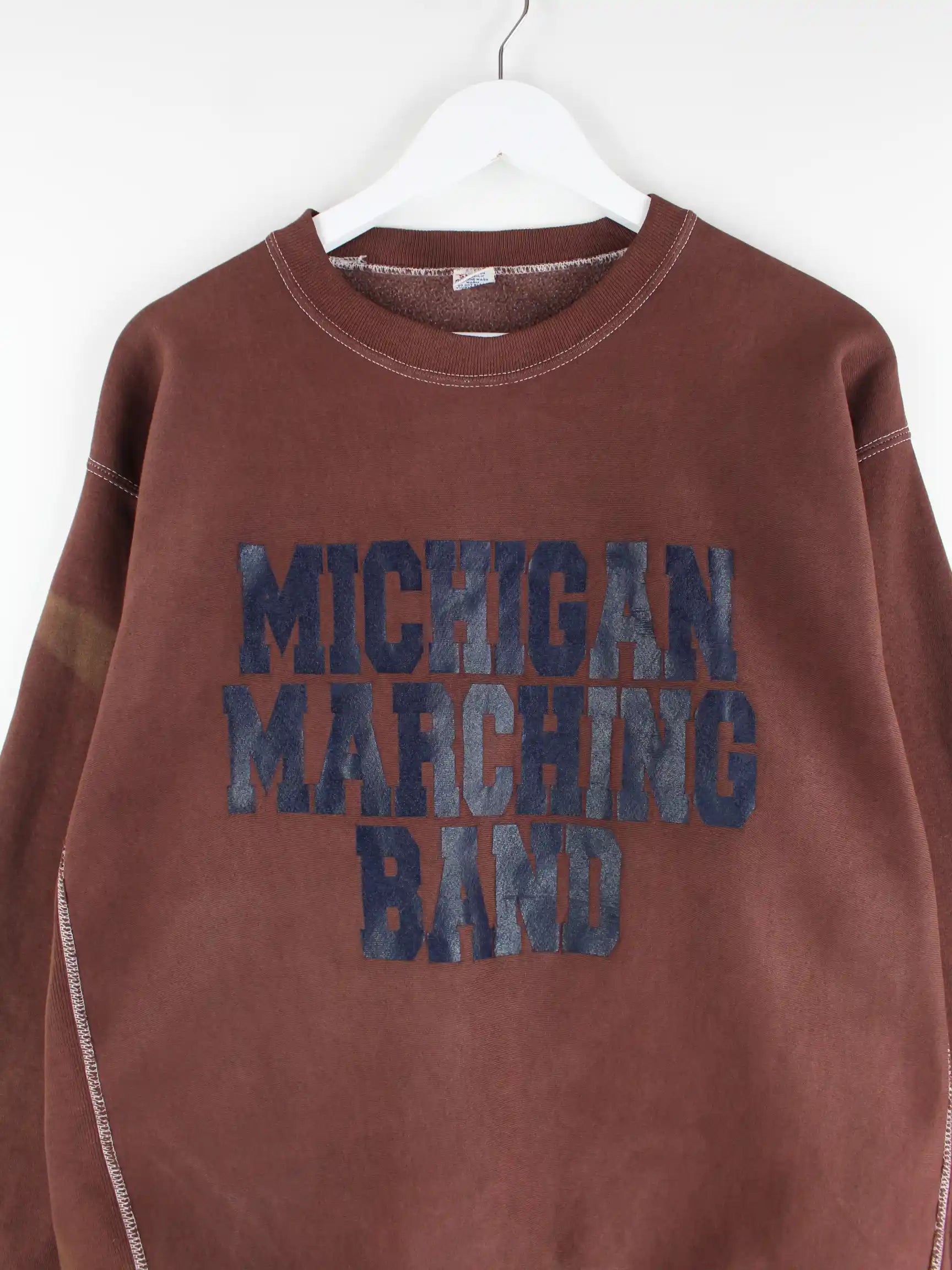 Vintage 90s Michigan March Print Heavy Sweater Braun XL