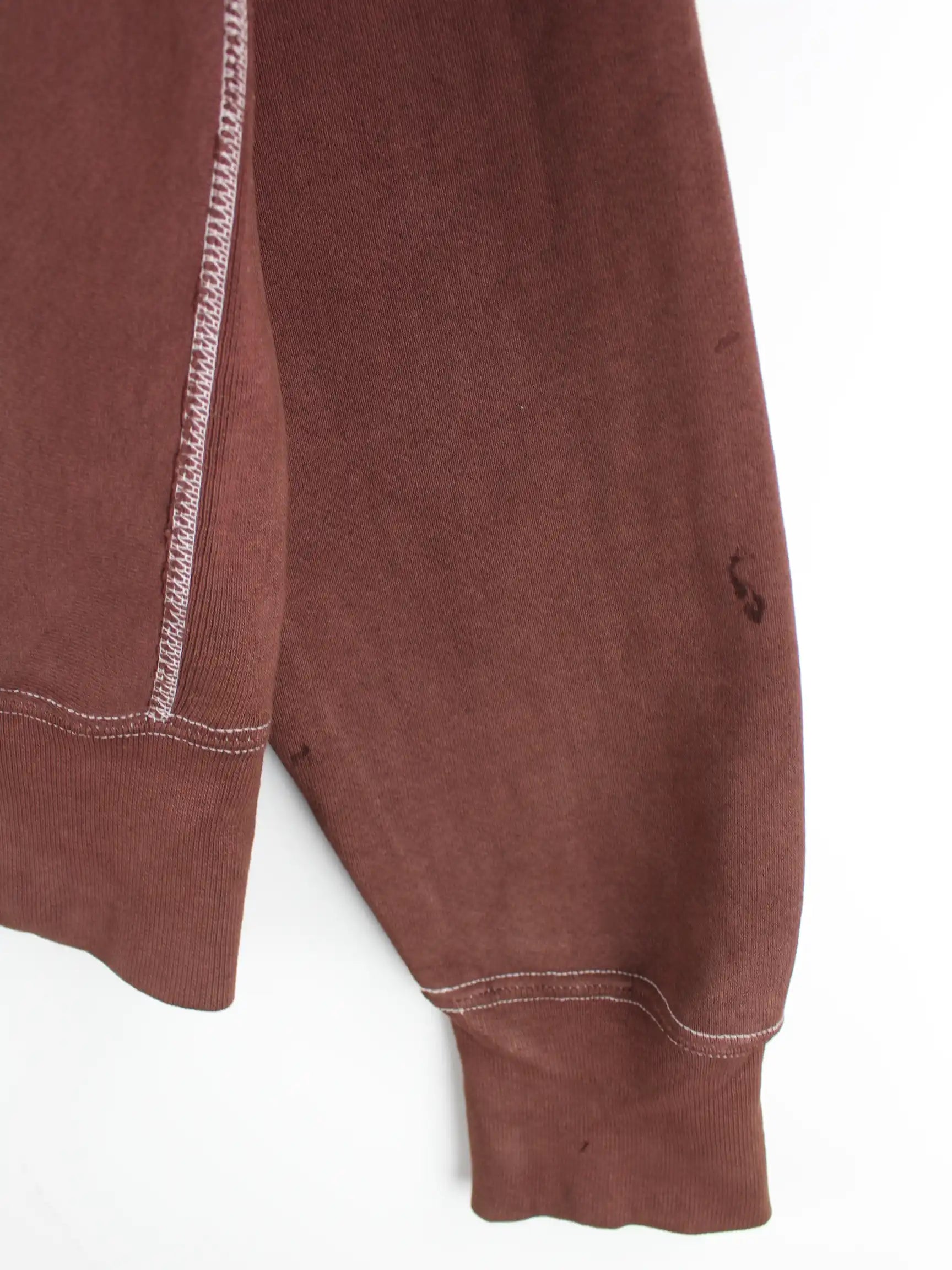 Vintage Sweater in Größe XL aus den 90'ern. Er ist aus einer Baumwollmischung und in Braun auf Lager. Mit schönem March Print.