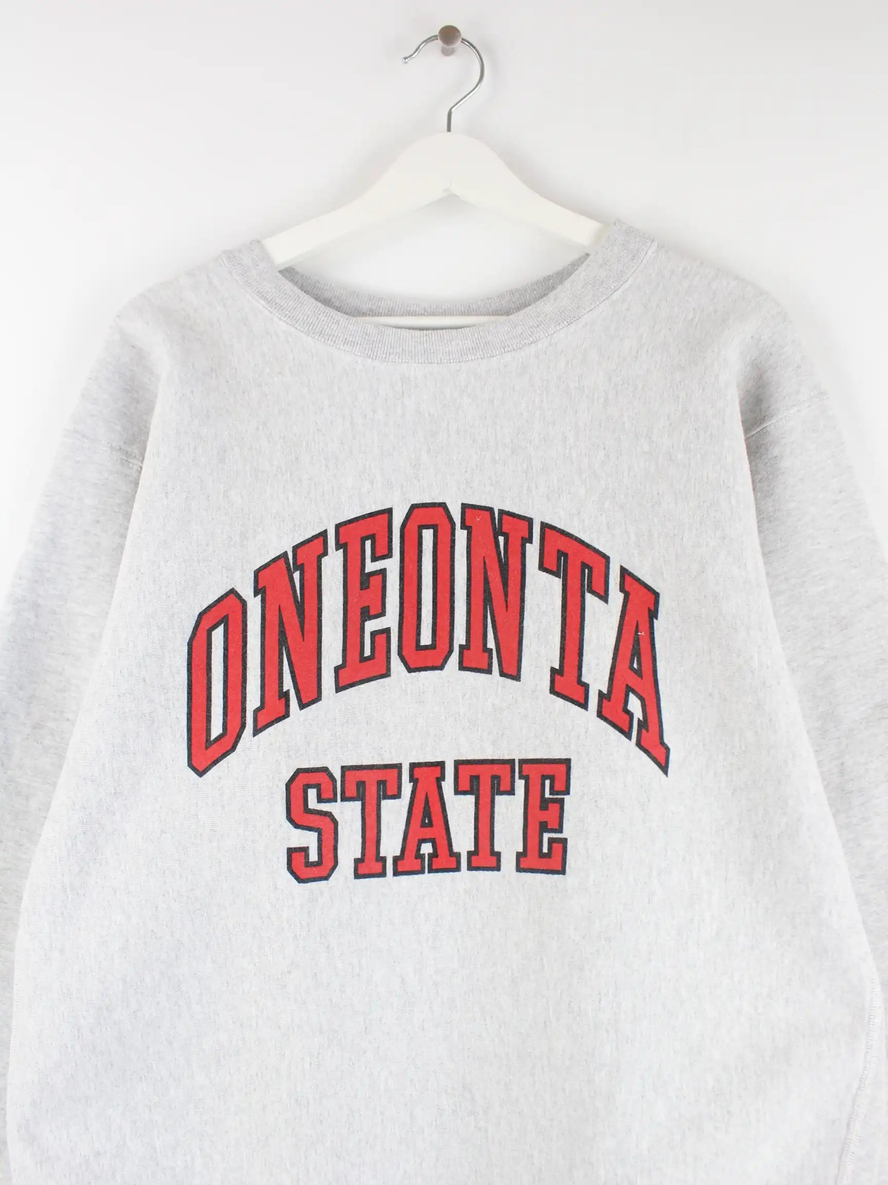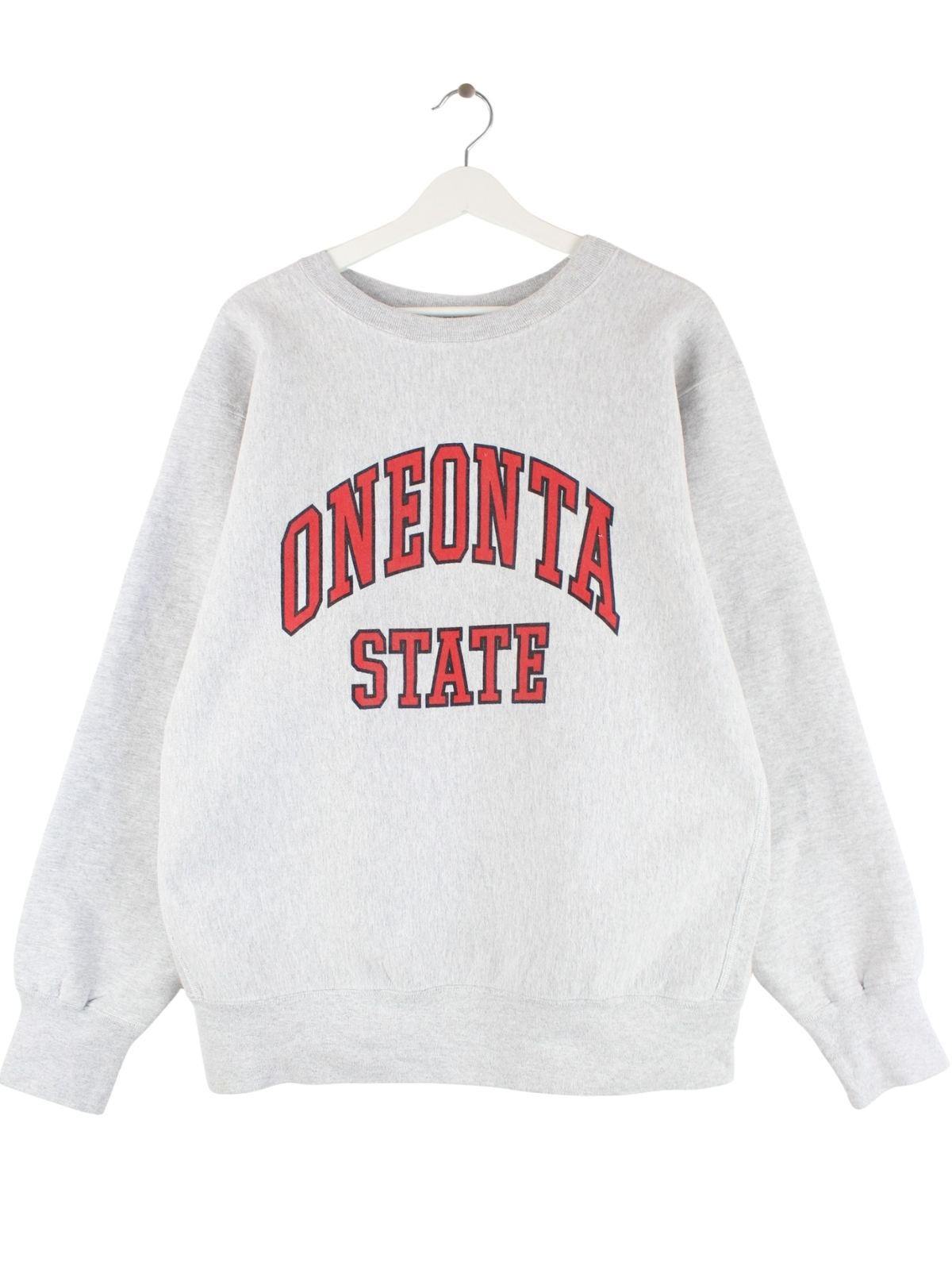 Vintage 90s Oneonta State Print Heavy Sweater Grau L