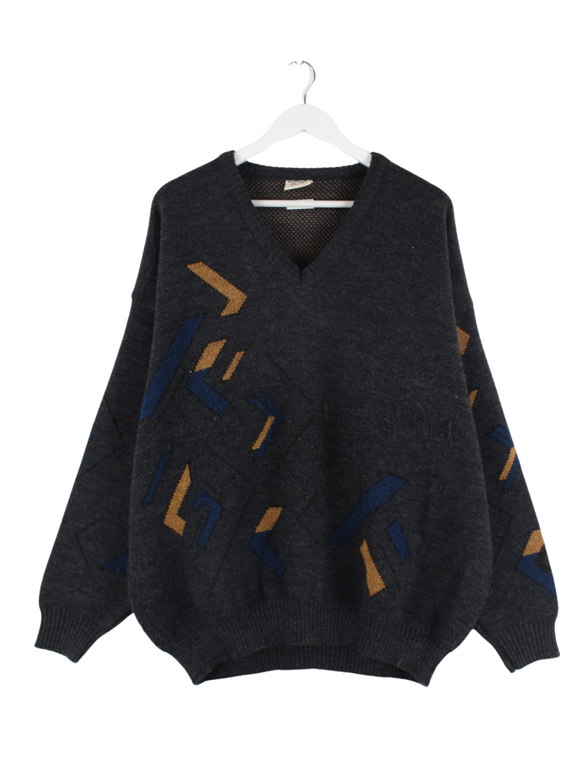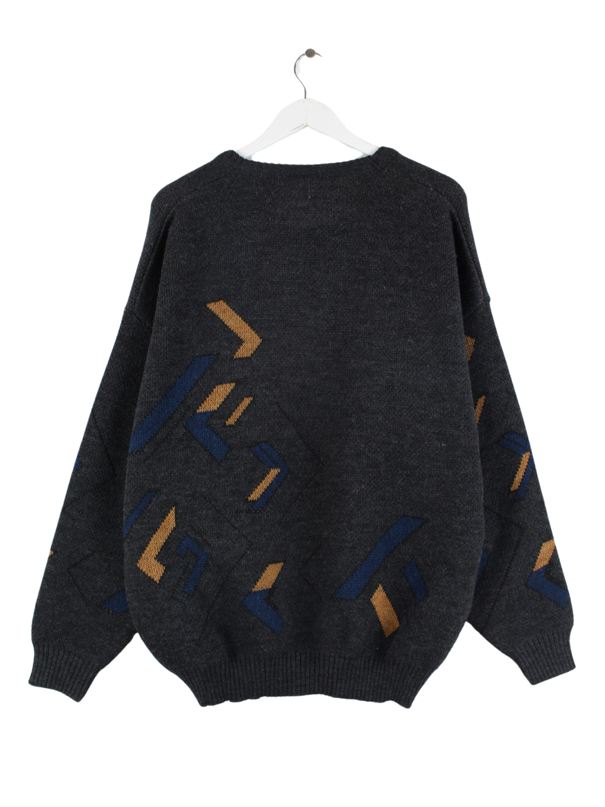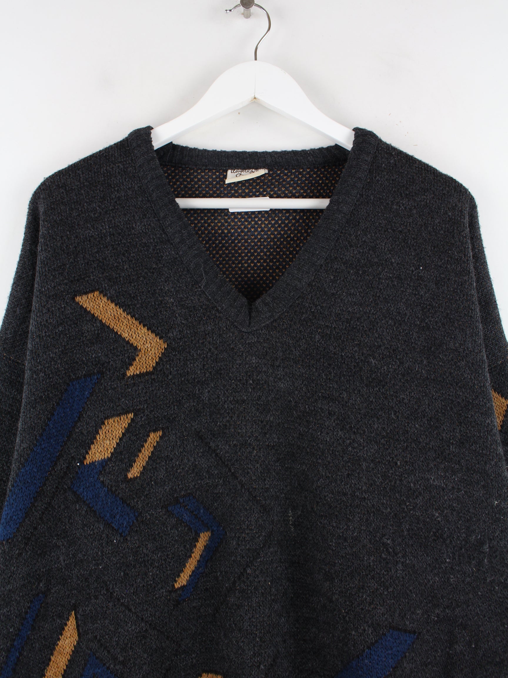 Vintage 90s Pattern V-Neck Pullover Schwarz XL