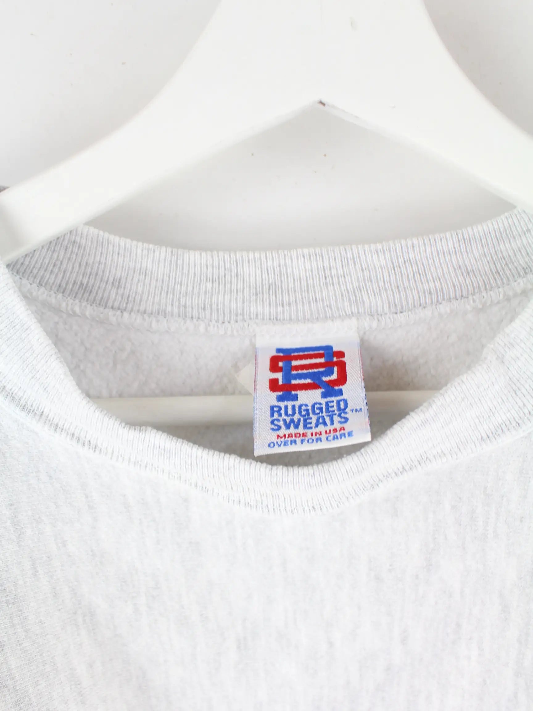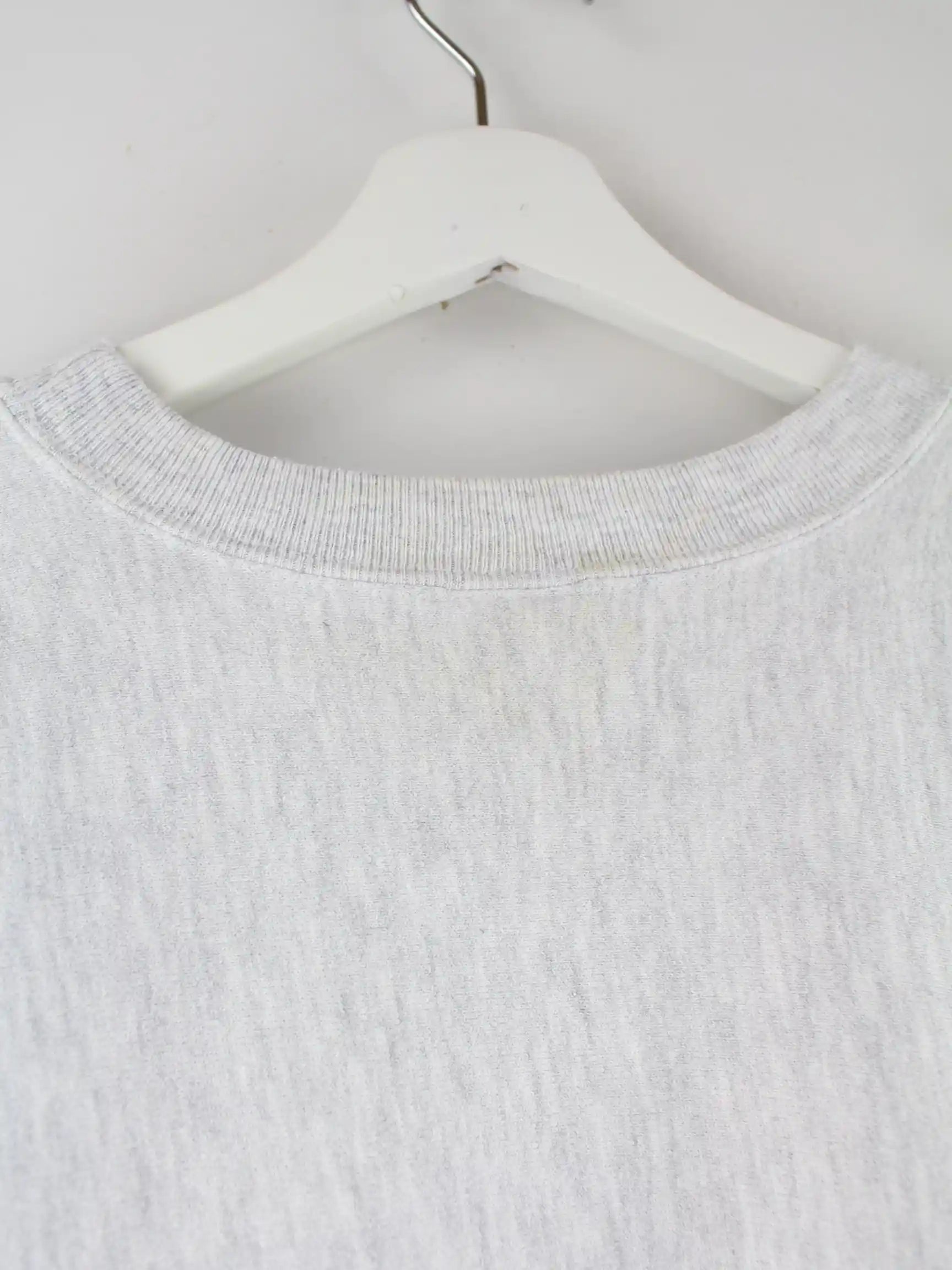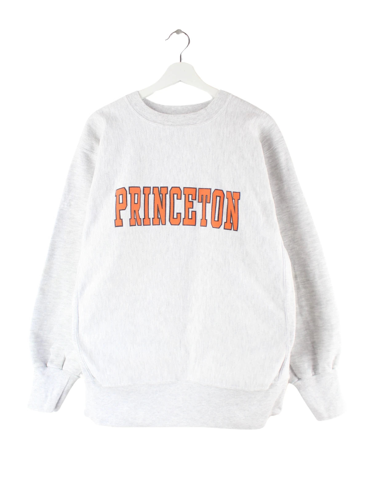 Grauer Vintage Sweater aus den 90'ern in Größe XL. Er ist aus einer Baumwollmischung gemacht und in gutem Zustand bei uns vorrätig. Mit schönem Princeton Print.