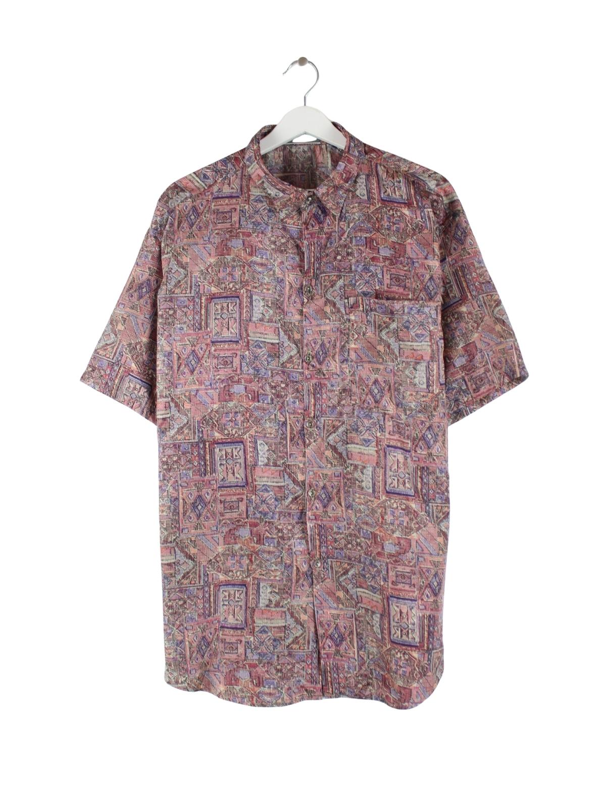 Vintage 90s Shiny Pattern Kurzarm Hemd Mehrfarbig XL