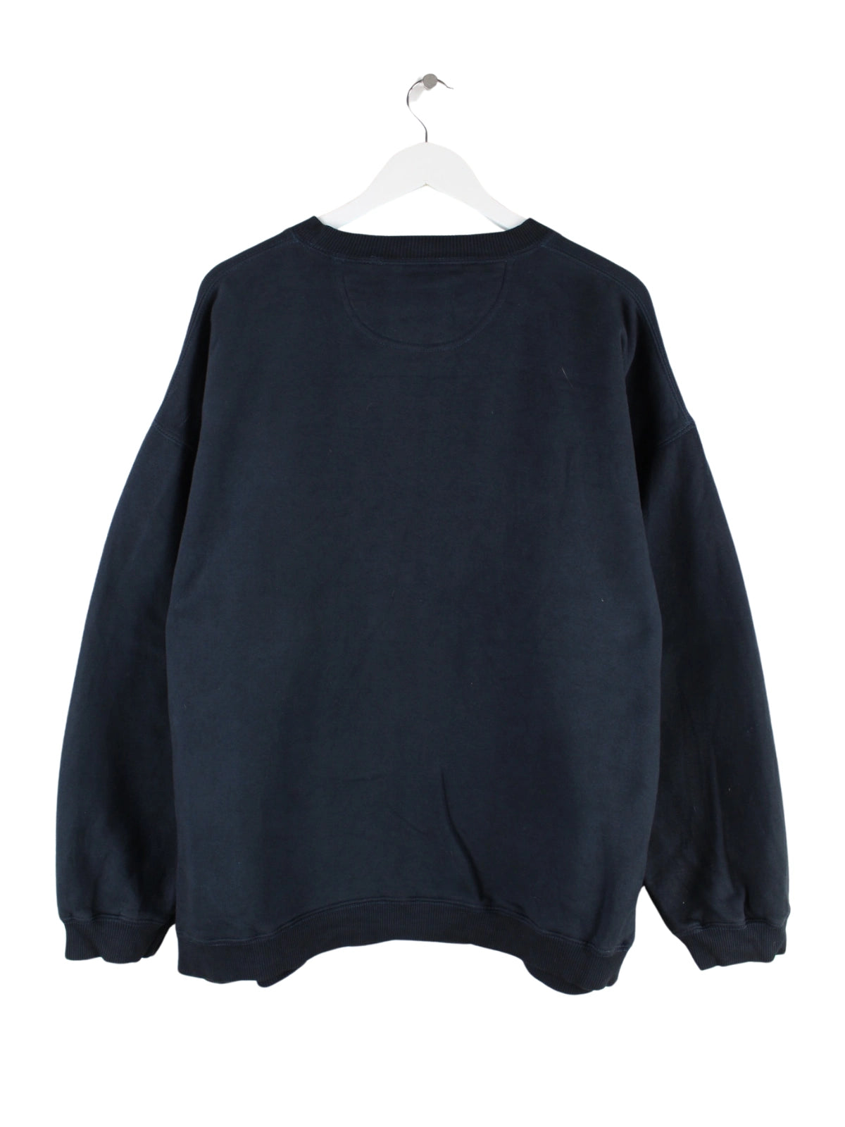 Schwarzer Vintage Sweater mit Stickereien aus den 90'ern in Größe XL. Er ist aus einer Baumwollmischung angefertigt und in sehr gutem Zustand zu haben.