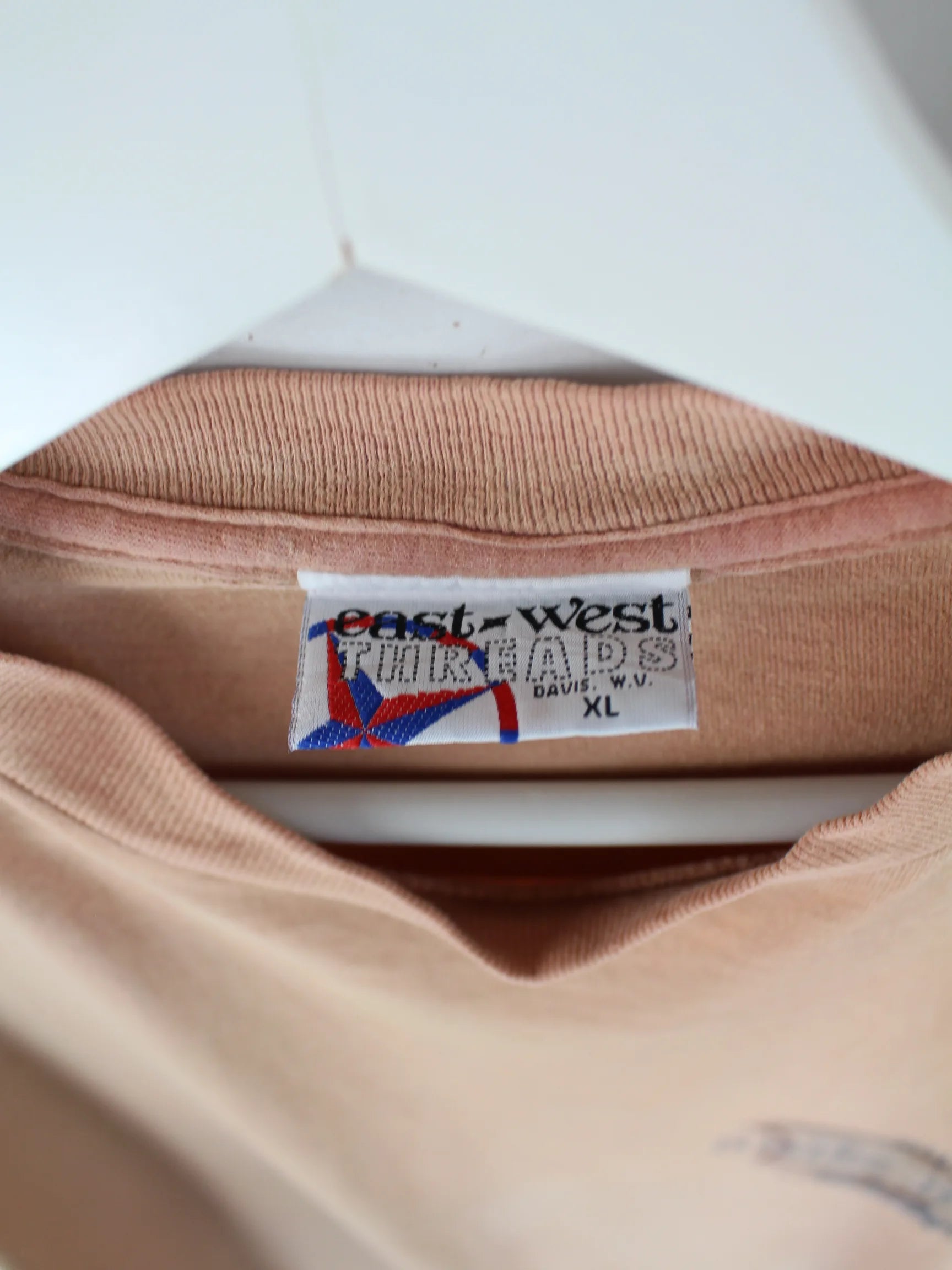 Vintage T-Shirt in Größe XL aus den 90'ern. Es ist aus Baumwolle angefertigt und in Braun im Bestand. Mit tollem River Print.