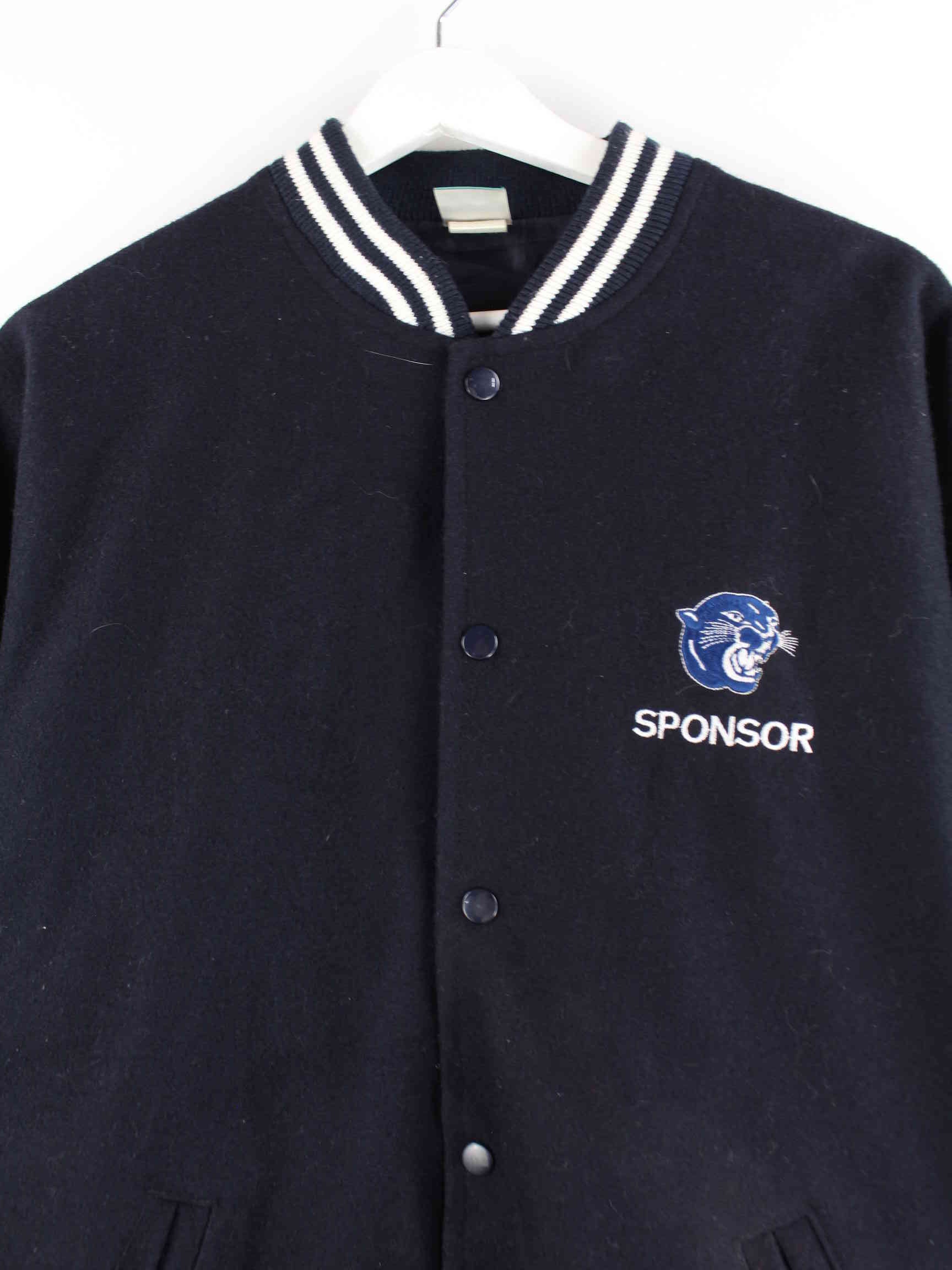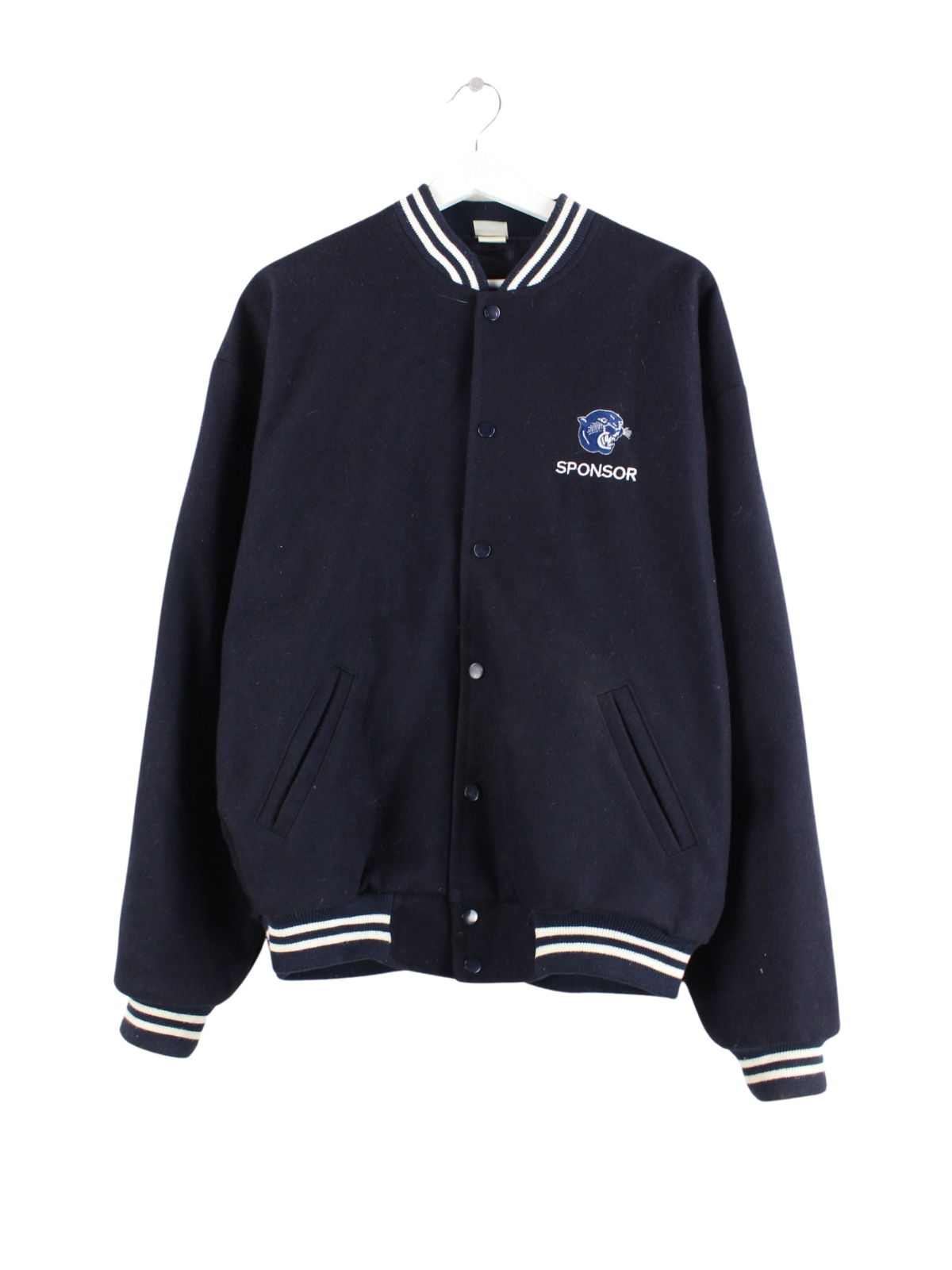 Schwarze Vintage Jacke mit gesticktem Logo aus den 90'ern in Größe M. Sie ist aus einer Baumwollmischung hergestellt und in gutem Zustand in Stock.