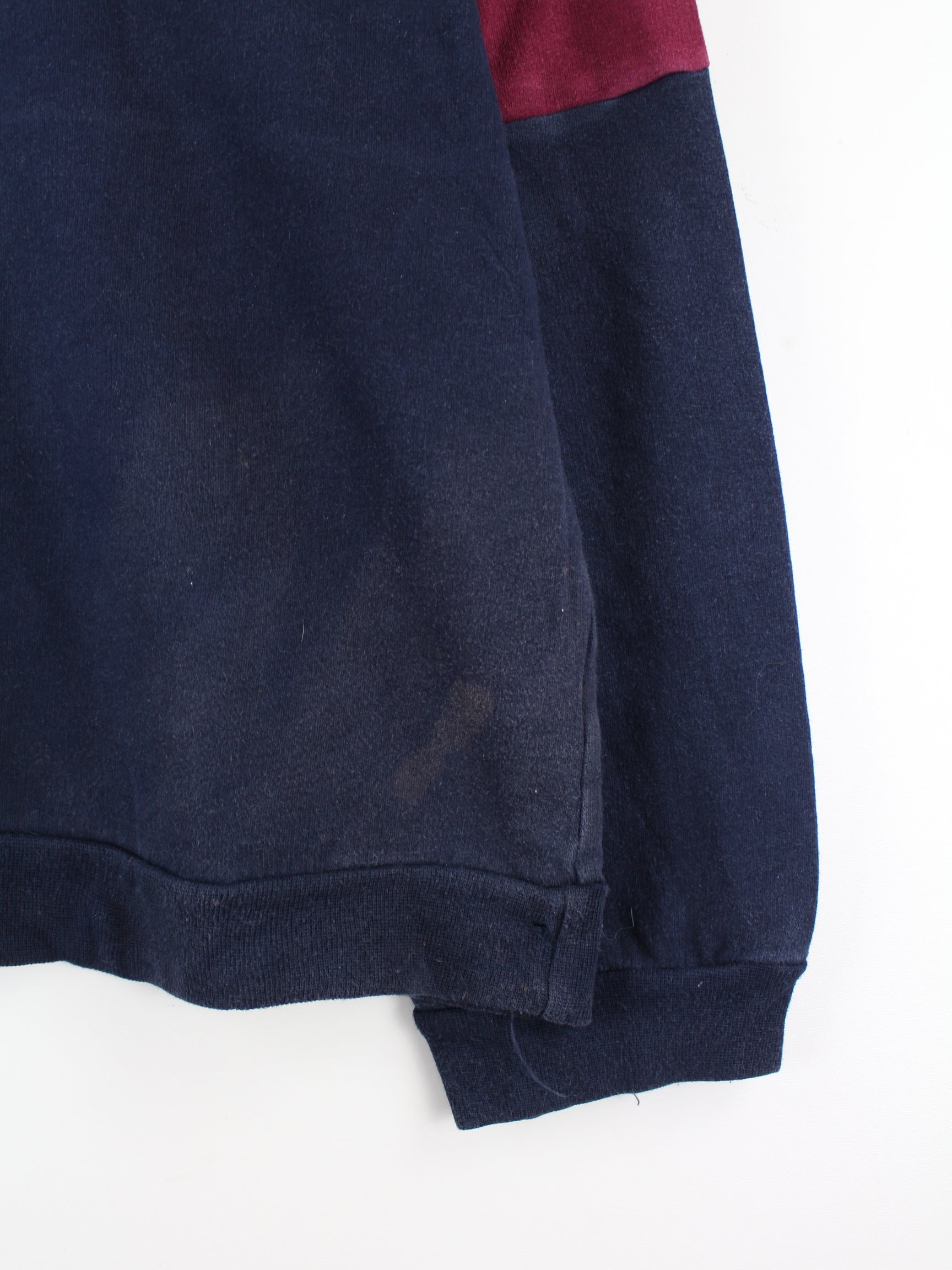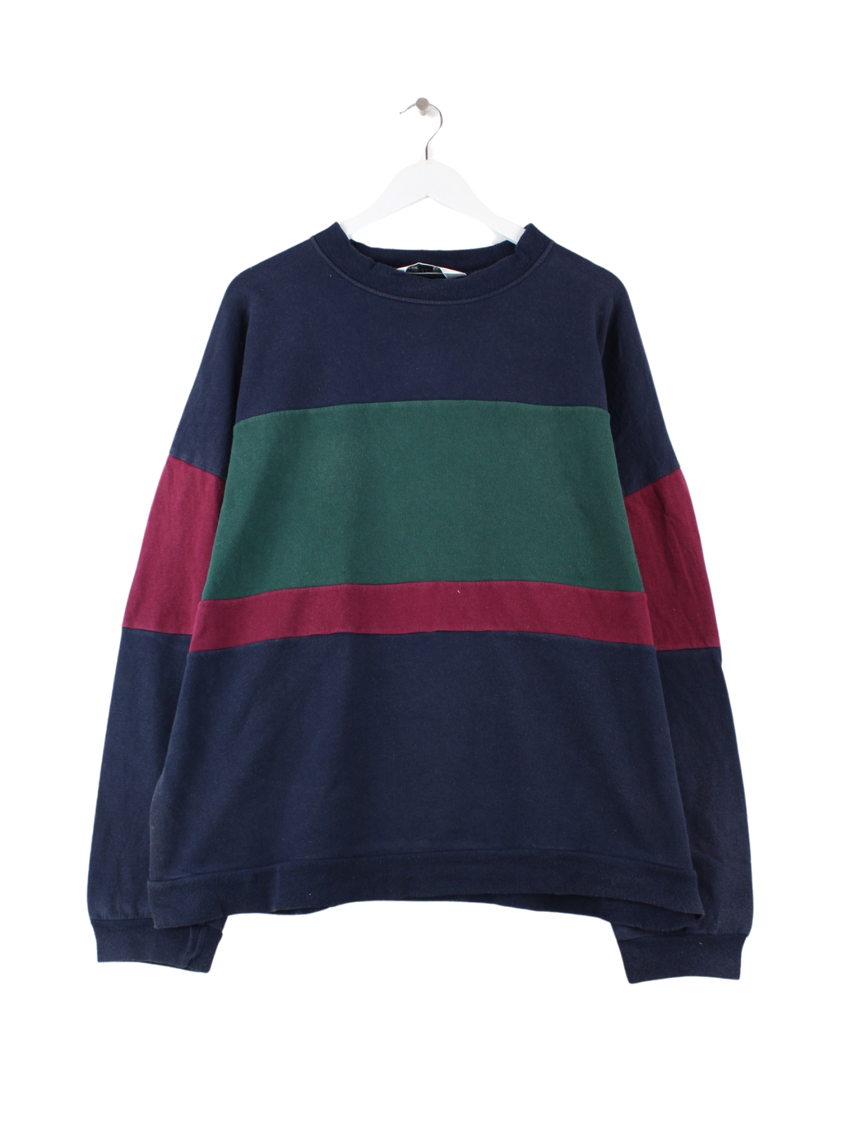 Vintage Sweater in Größe XL aus den 90'ern. Er ist aus einer Baumwollmischung hergestellt und in Blau lieferbar.