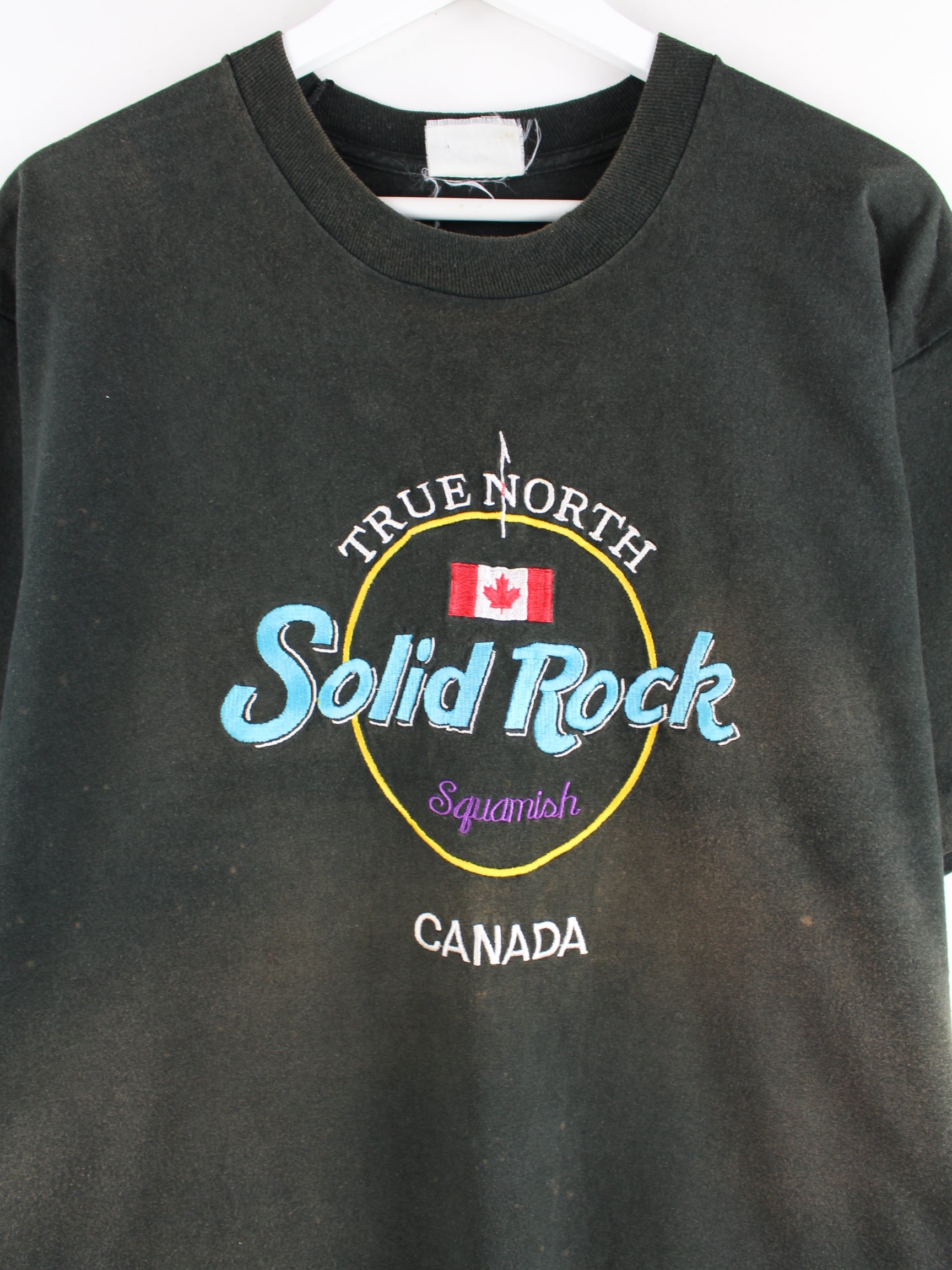 Vintage 90s Vintage Embroidered Single Stitch T-Shirt Schwarz XL