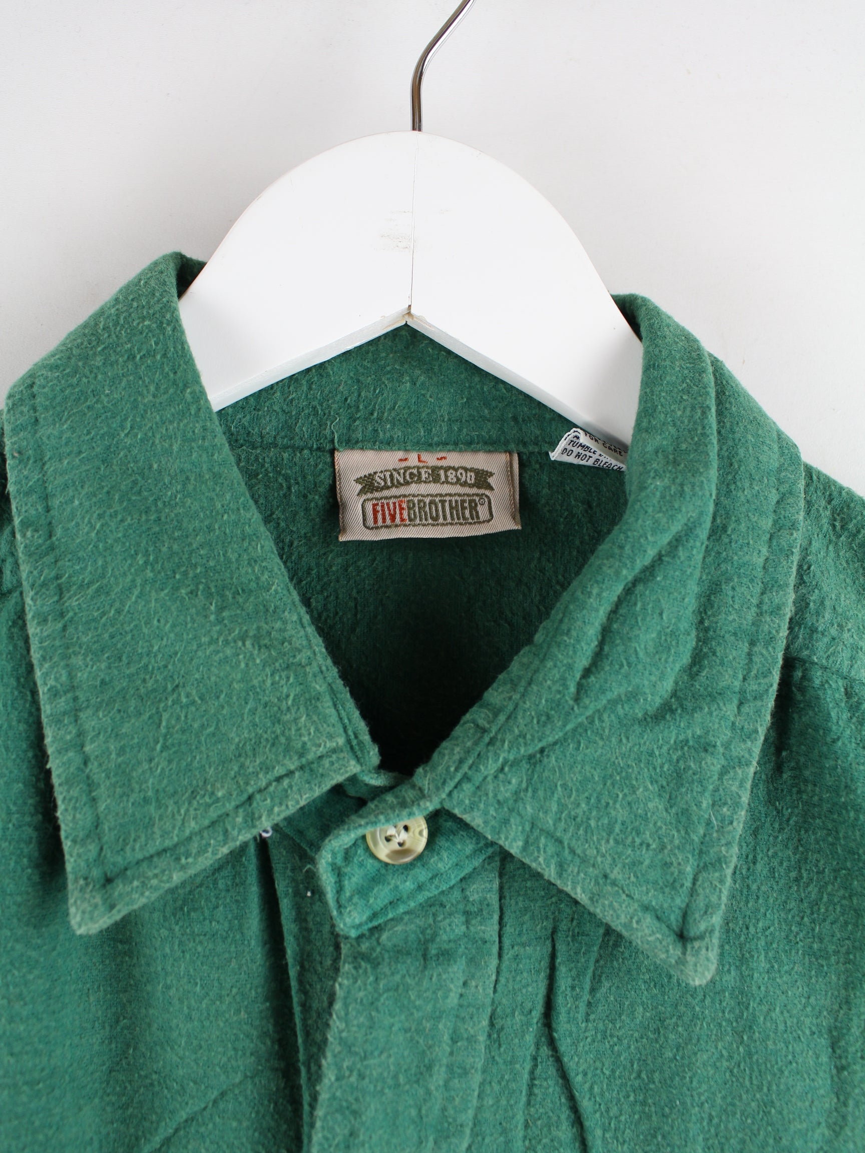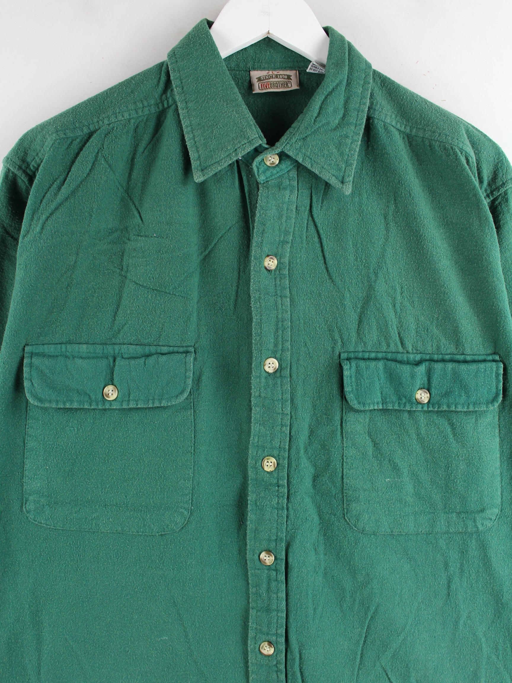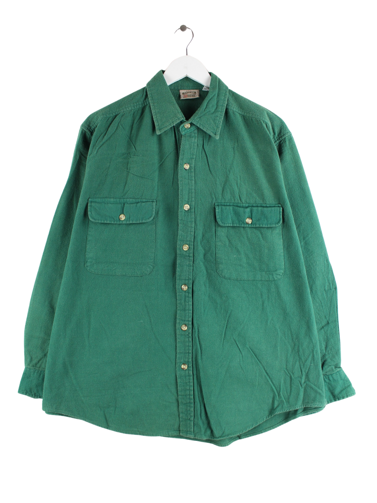 Vintage Freizeit Hemd in Größe L aus den 90'ern. Es ist aus Baumwolle gefertigt und in Grün lieferbar.