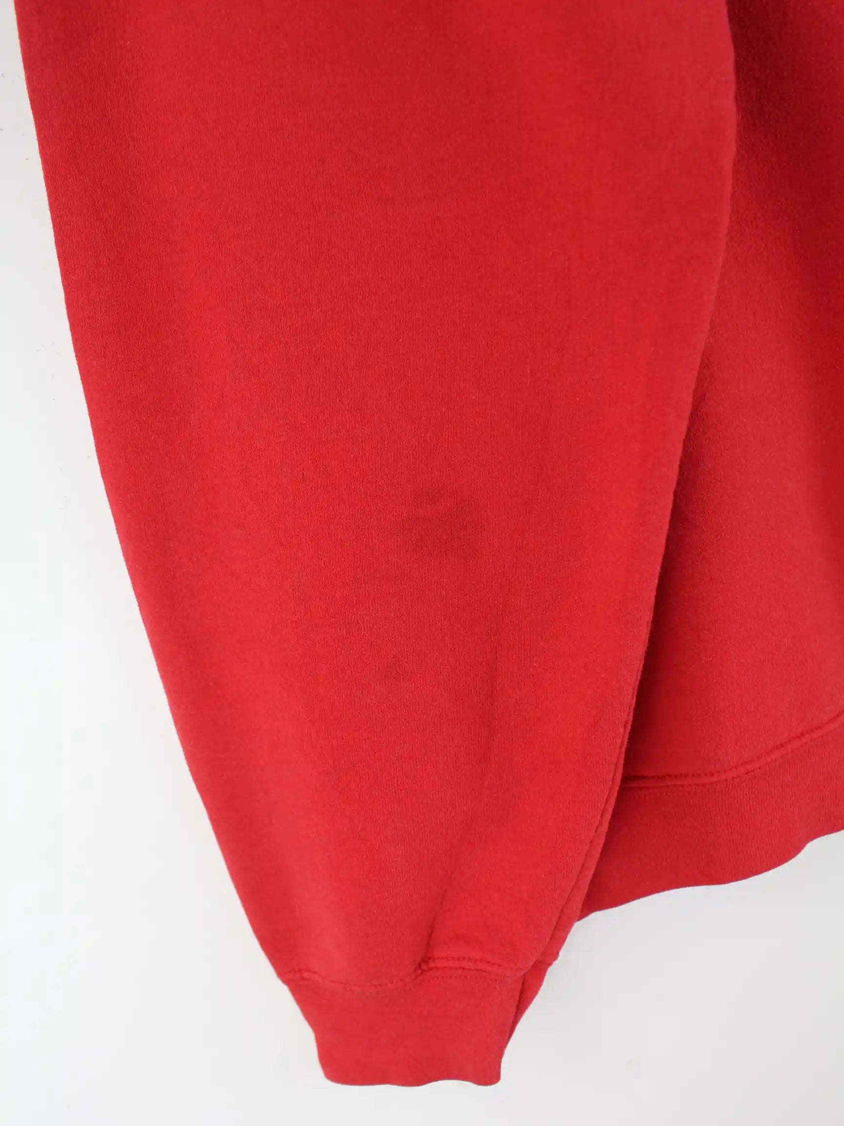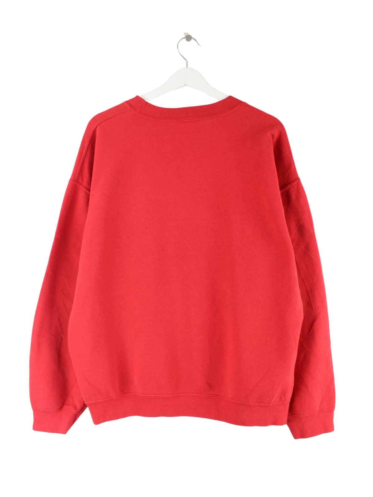 Roter Vintage Sweater mit Stick aus den 90'ern in Größe L. Er ist aus einer Baumwollmischung angefertigt. Den Zustand würden wir als 'In Ordnung' bezeichnen (vergl. Bilder).