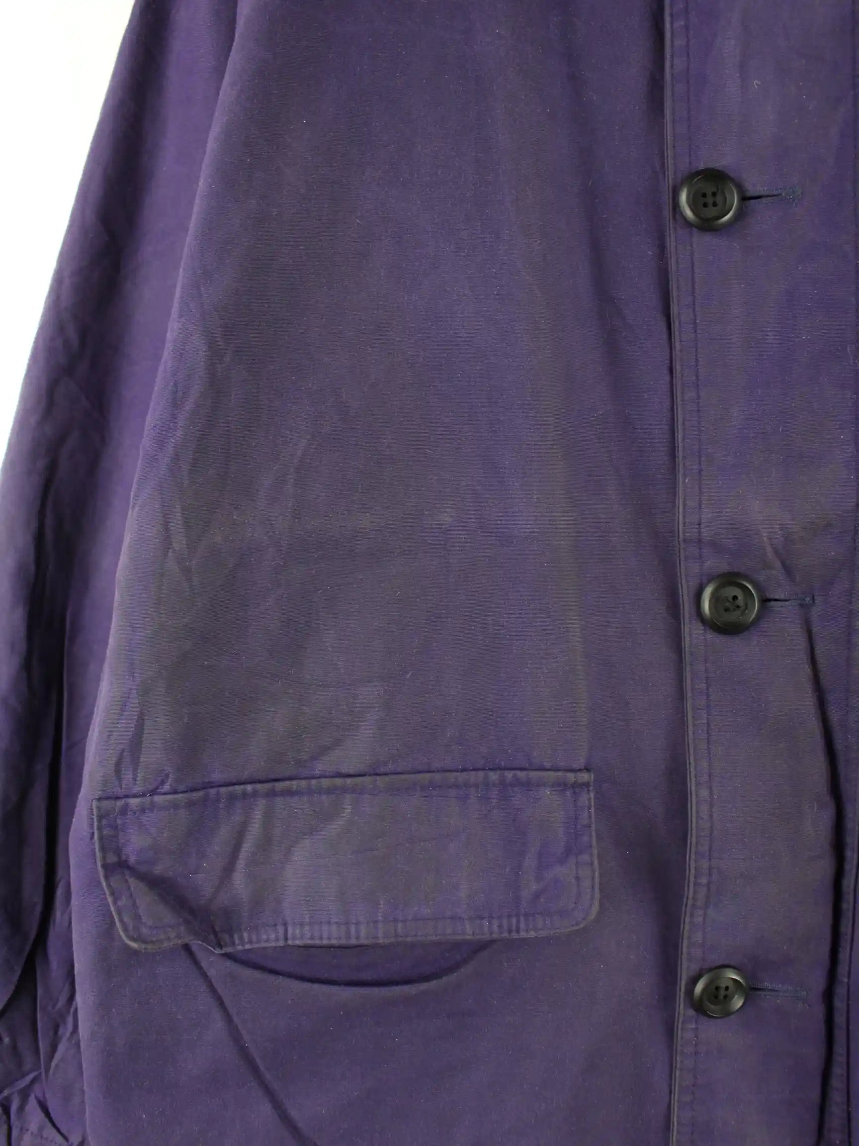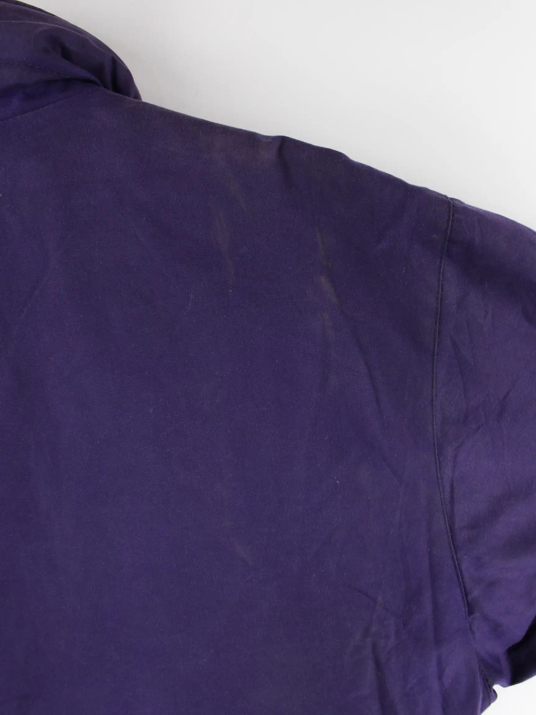 Vintage Jacke in Größe L aus den 90'ern. Sie ist aus Baumwolle gefertigt und in Lila bei uns zu bekommen.