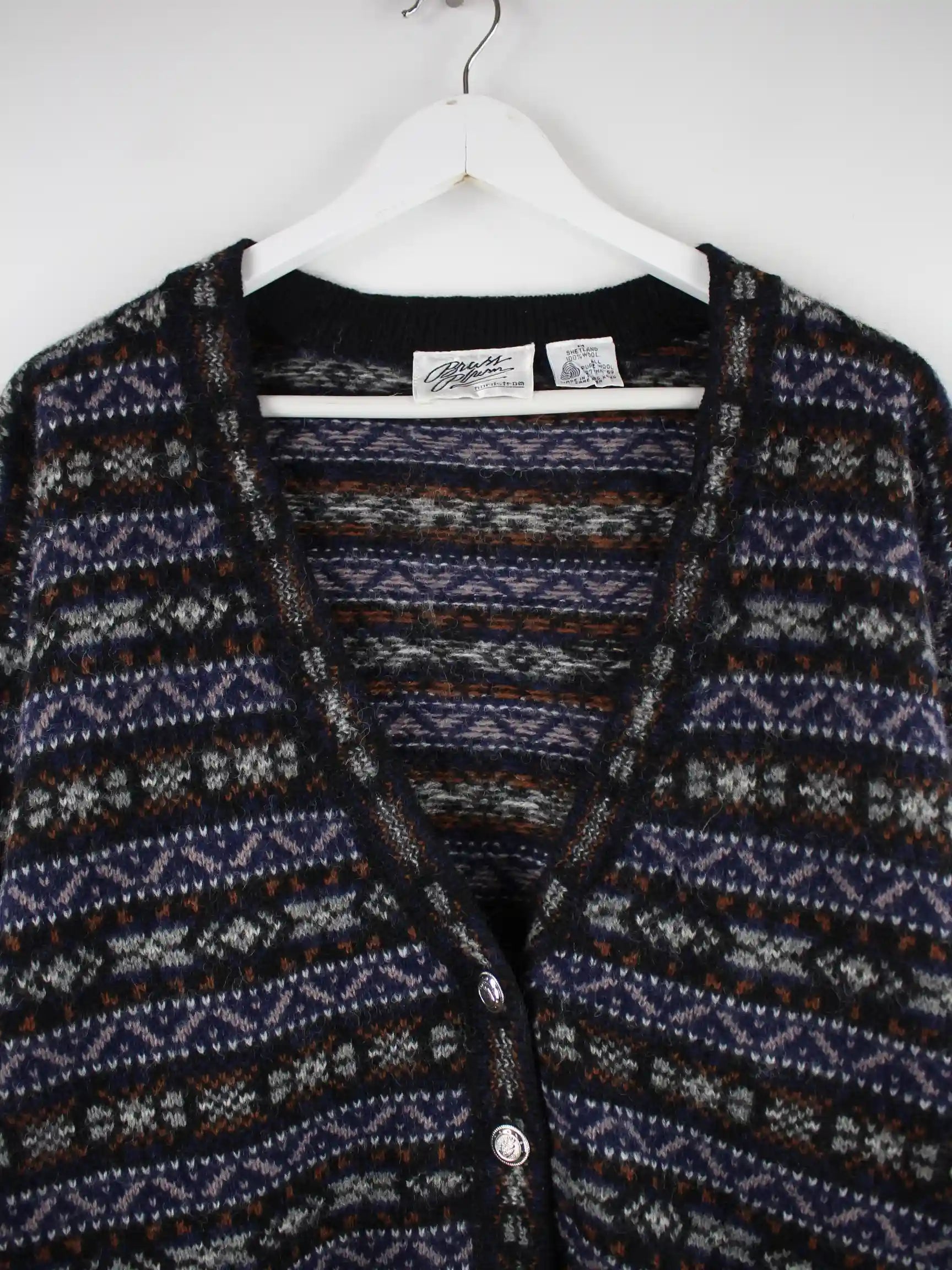 Vintage Strickjacke in Größe M aus den 90'ern. Sie ist aus Wolle hergestellt und in Blau vorrätig.