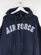 Vintage Hoodie in Größe XL. Er ist aus einer Baumwollmischung hergestellt und in Blau zu haben.