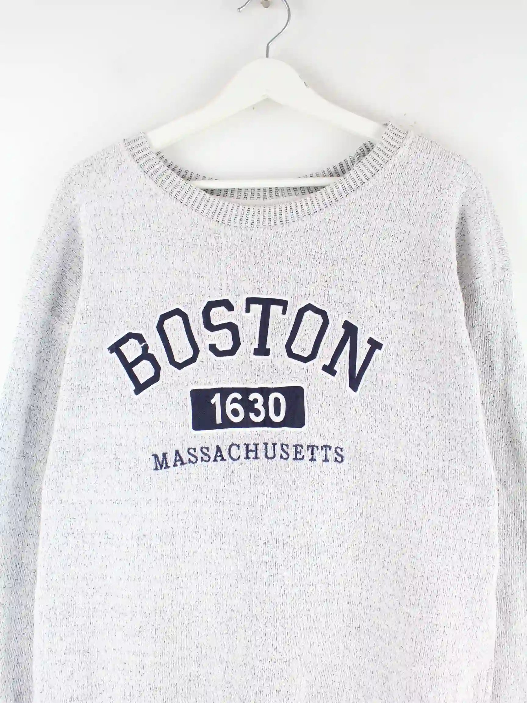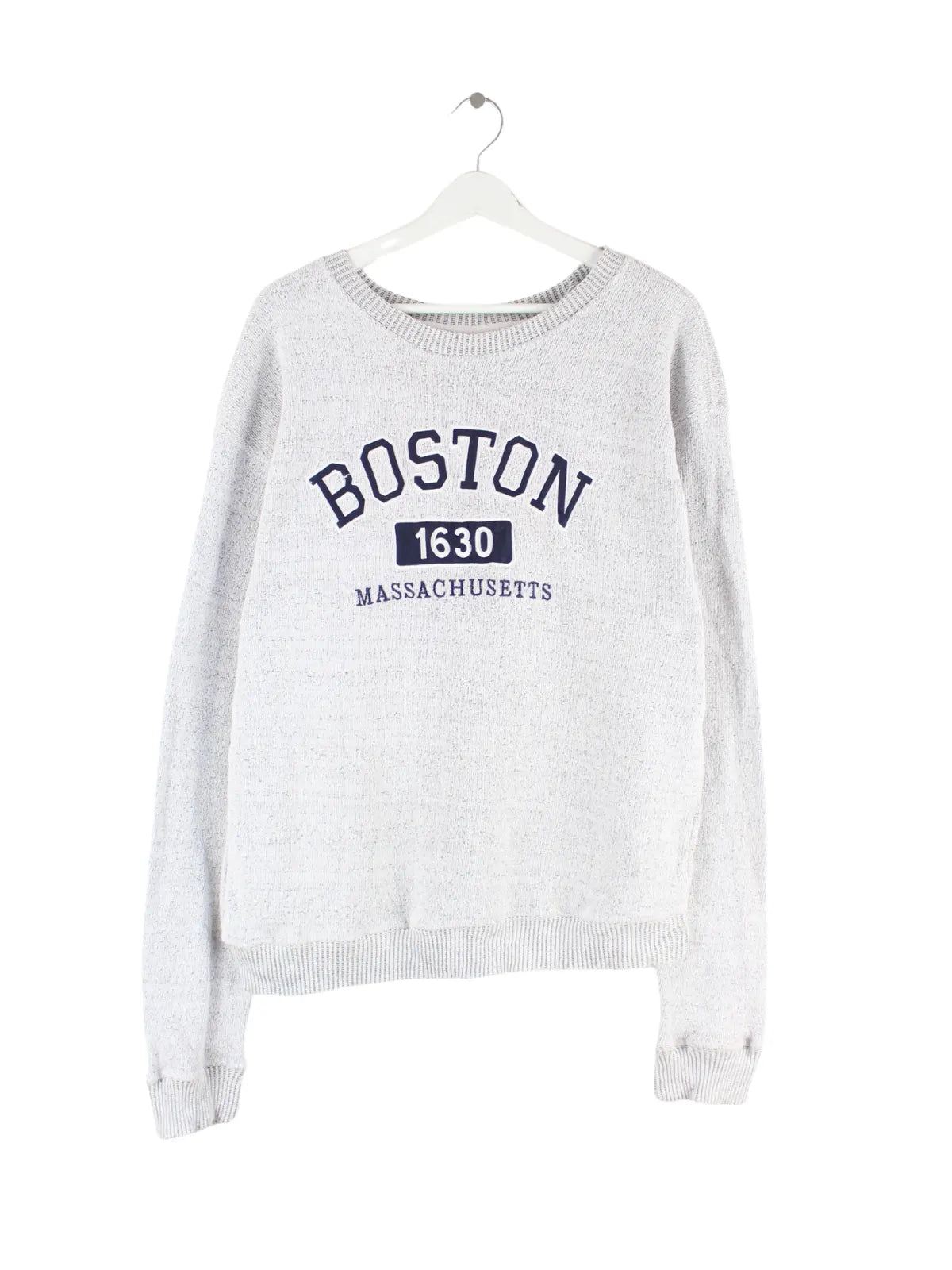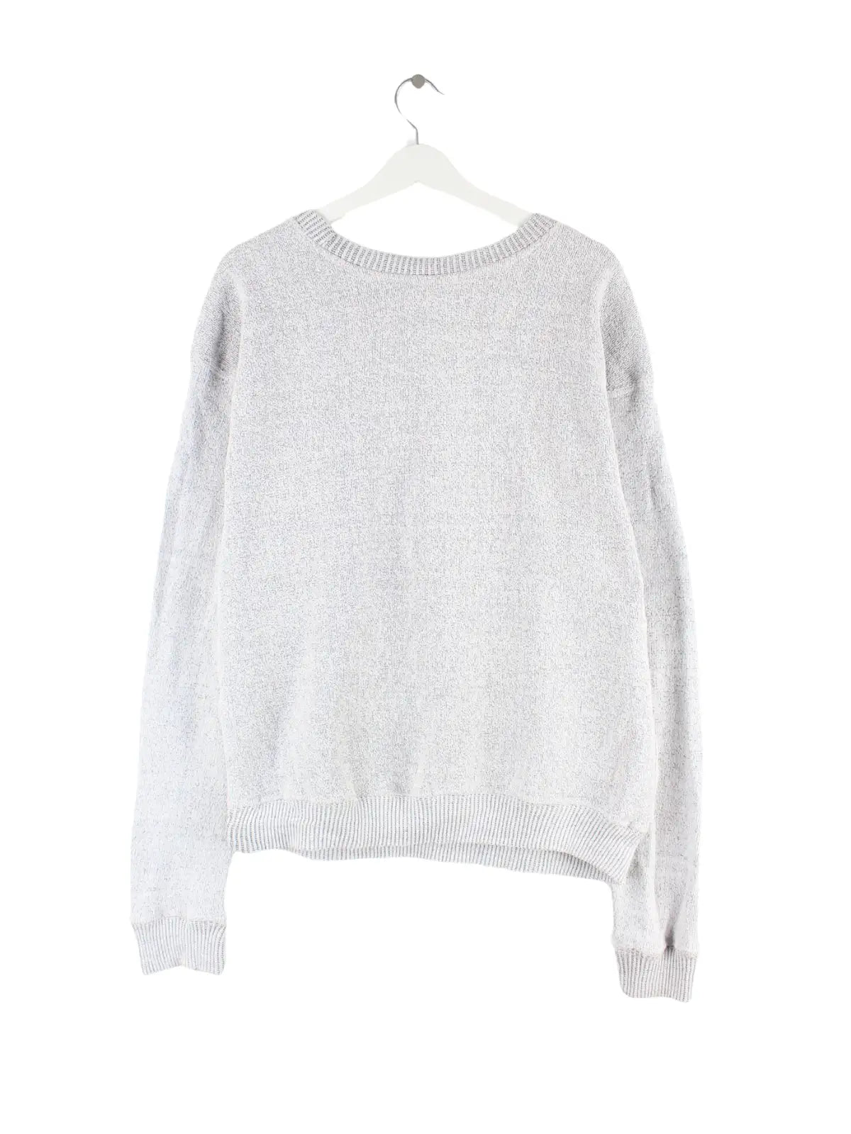 Grauer Vintage Sweater mit Stickereien in Größe L. Er ist aus einer Baumwollmischung angefertigt und in sehr gutem Zustand zu haben.